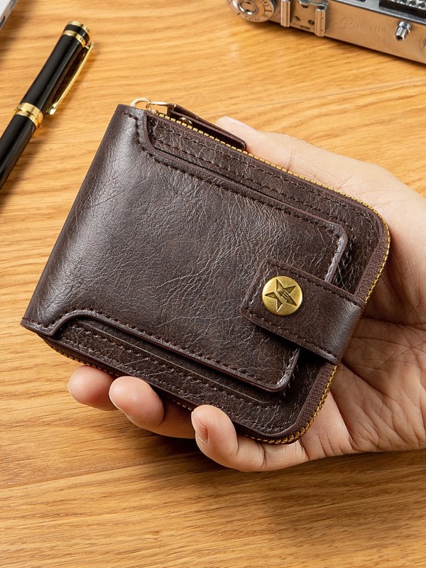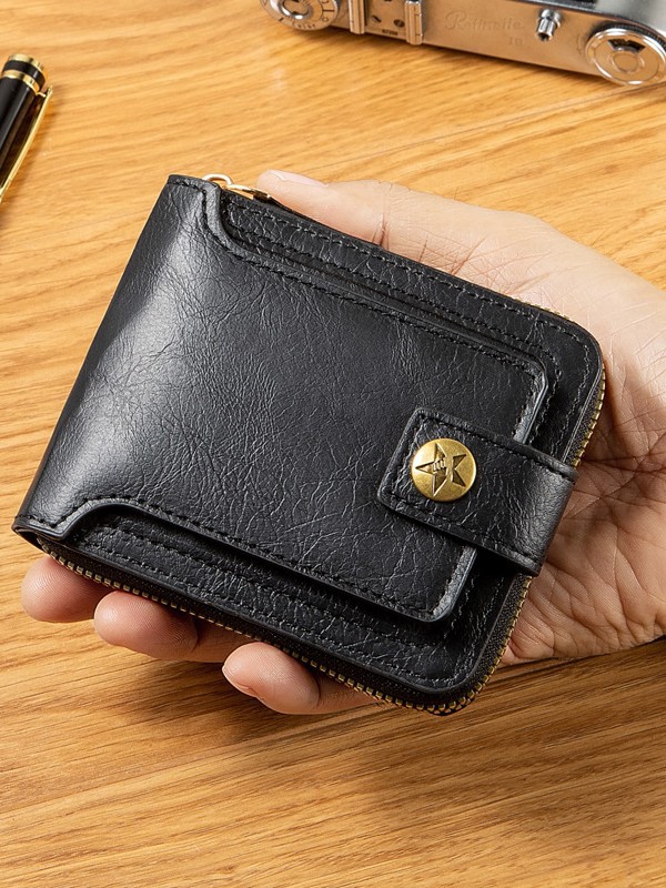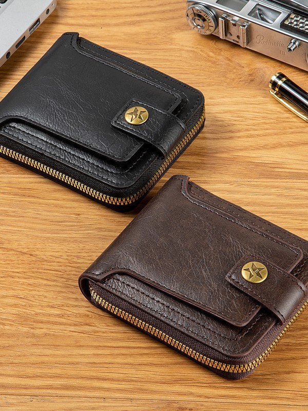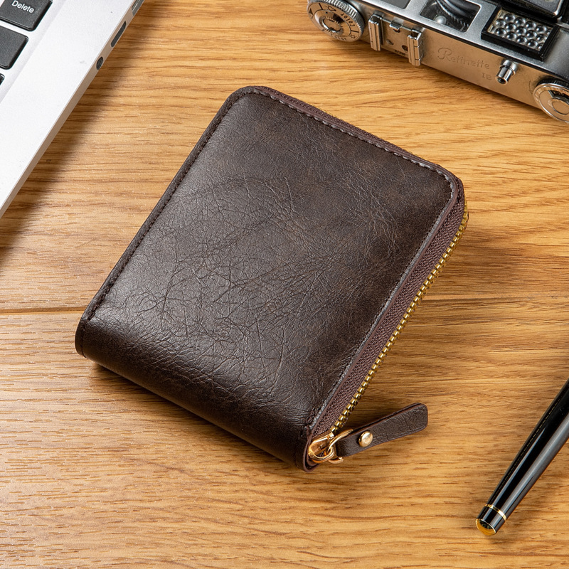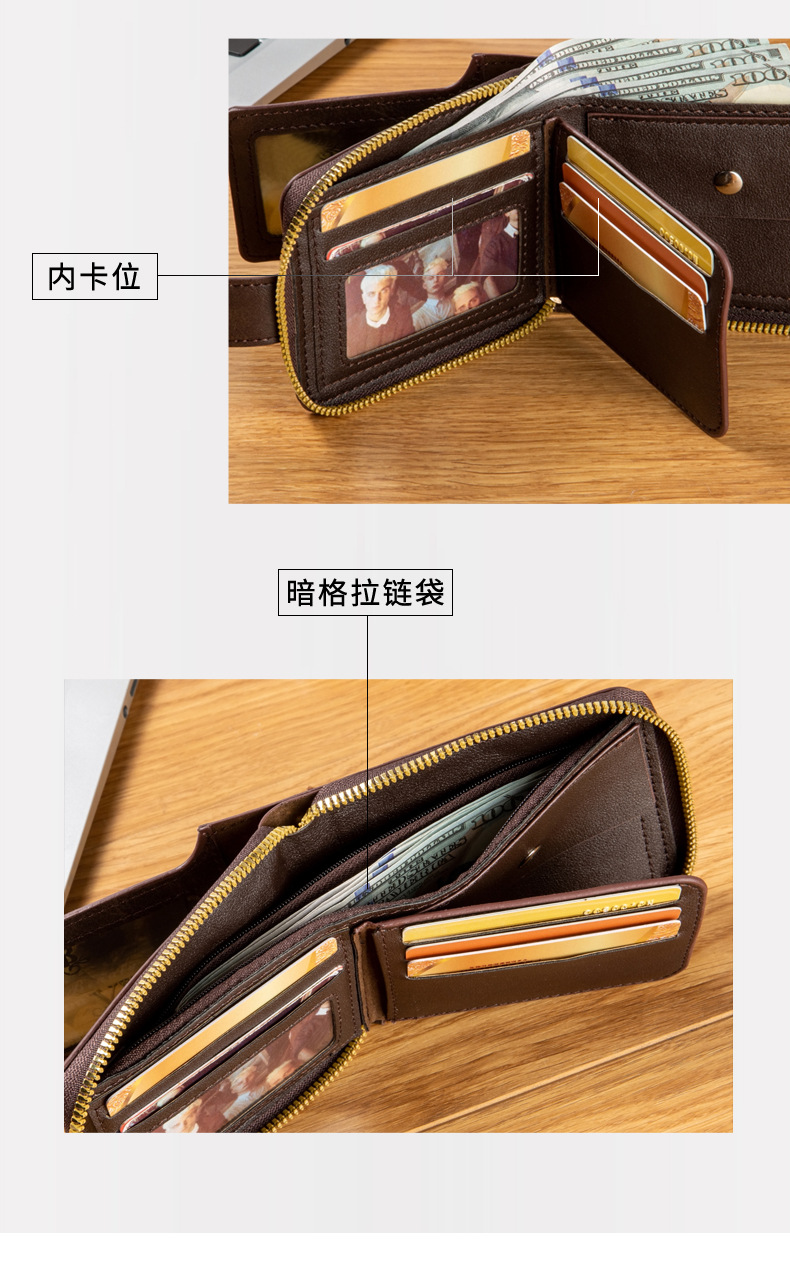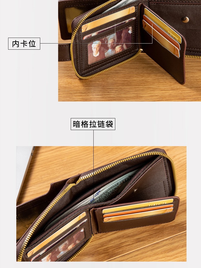 국경 간 유럽과 미국 새로운 2024 레트로 남자의 짧은 숨겨진 수평 지퍼 다기능 카드 가방 버클 동전 지갑