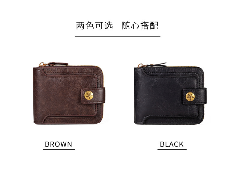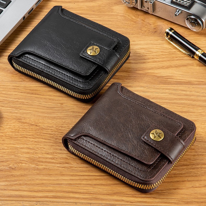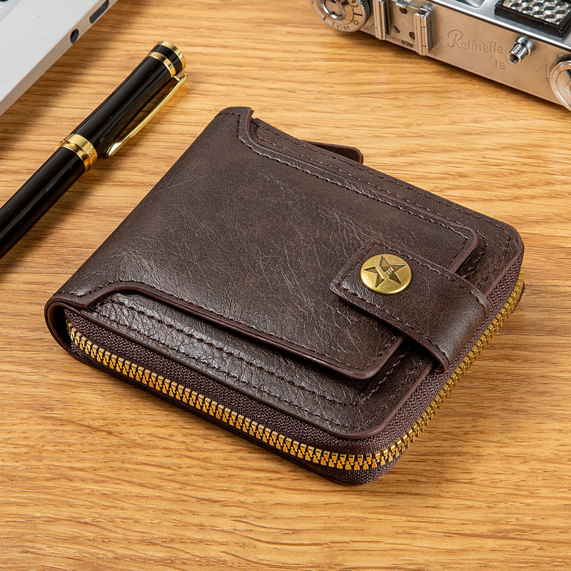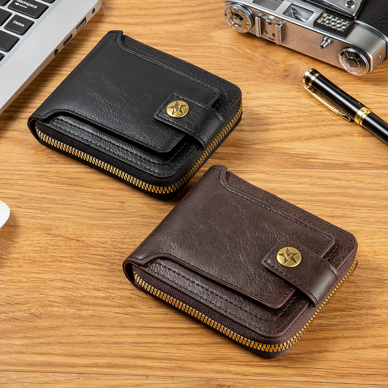 국경 간 유럽과 미국 새로운 2024 레트로 남자의 짧은 숨겨진 수평 지퍼 다기능 카드 가방 버클 동전 지갑스토어 가기