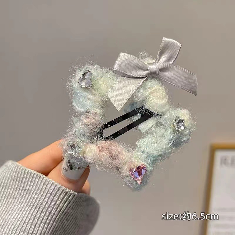 봉제 스타 머리핀 활 BB 클립 오렌지 아일랜드 머리 양모 깨진 다이아몬드 스타 우아한 사이드 클립 헤어 액세서리