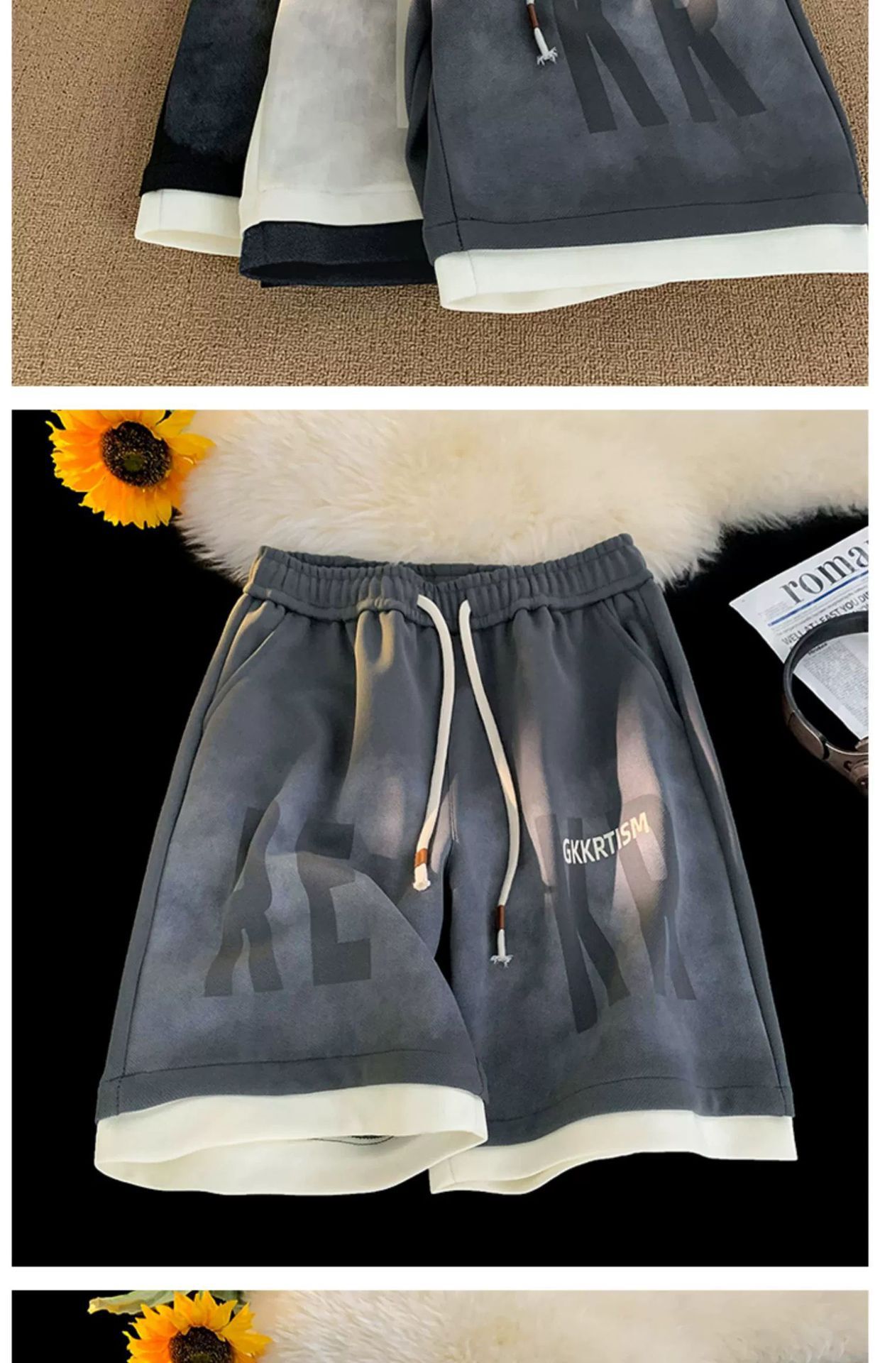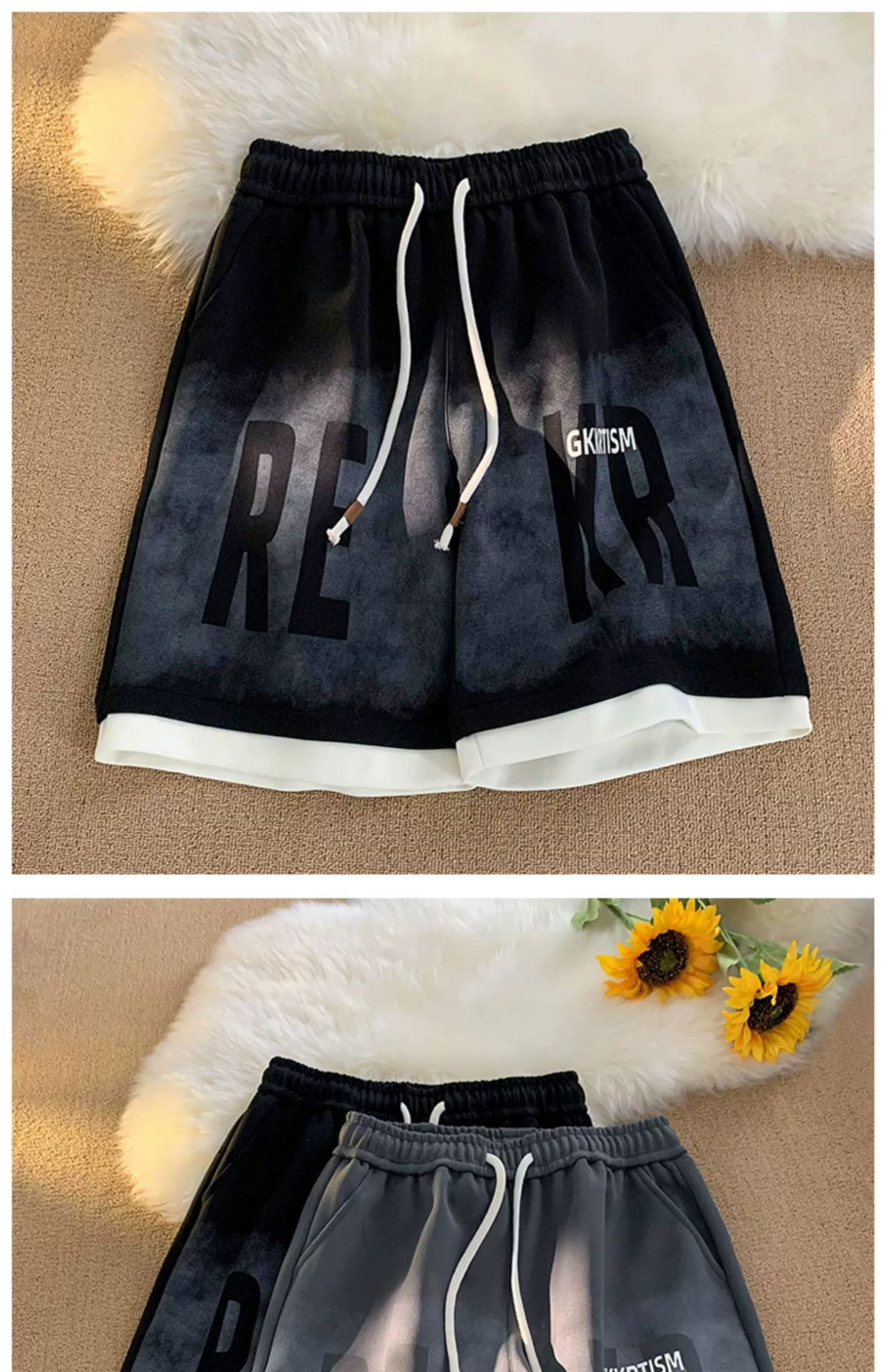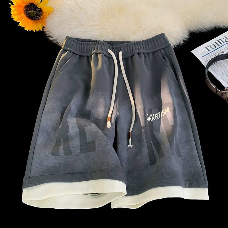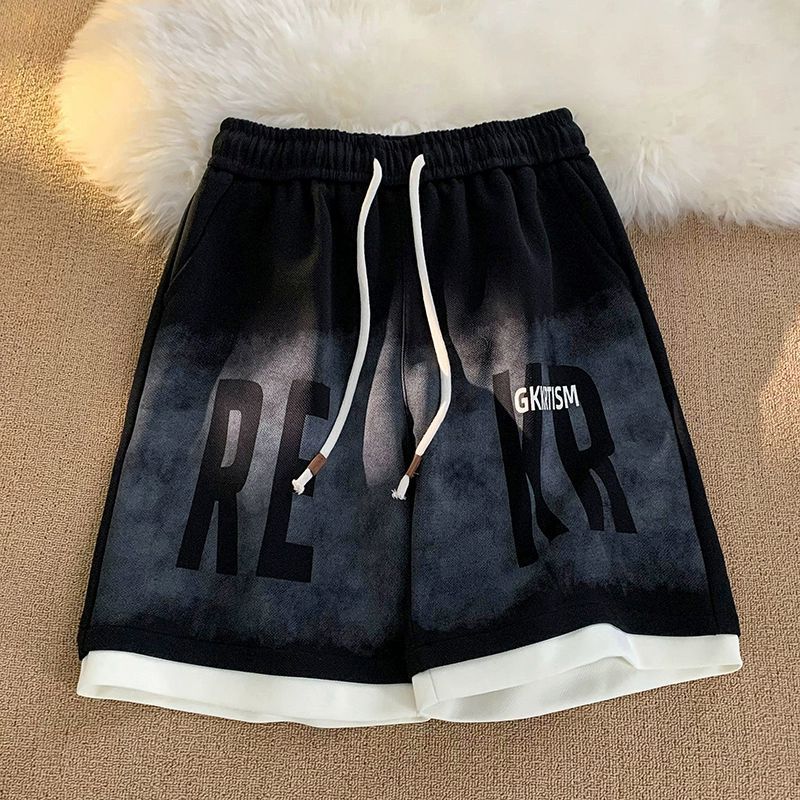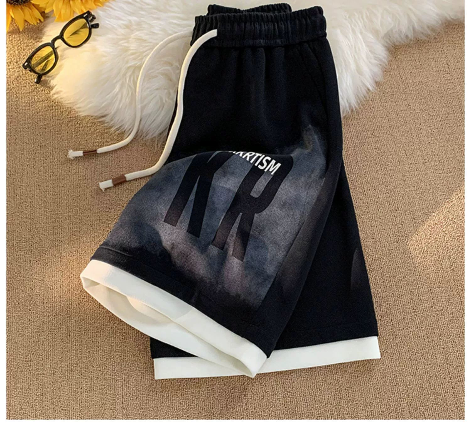 아메리칸 스타일 트렌디 브랜드 스포츠 반바지 남자 여름 가짜 투피스 헤비 듀티 하이 스트리트 루즈 와이드 레그 캐주얼 바지
