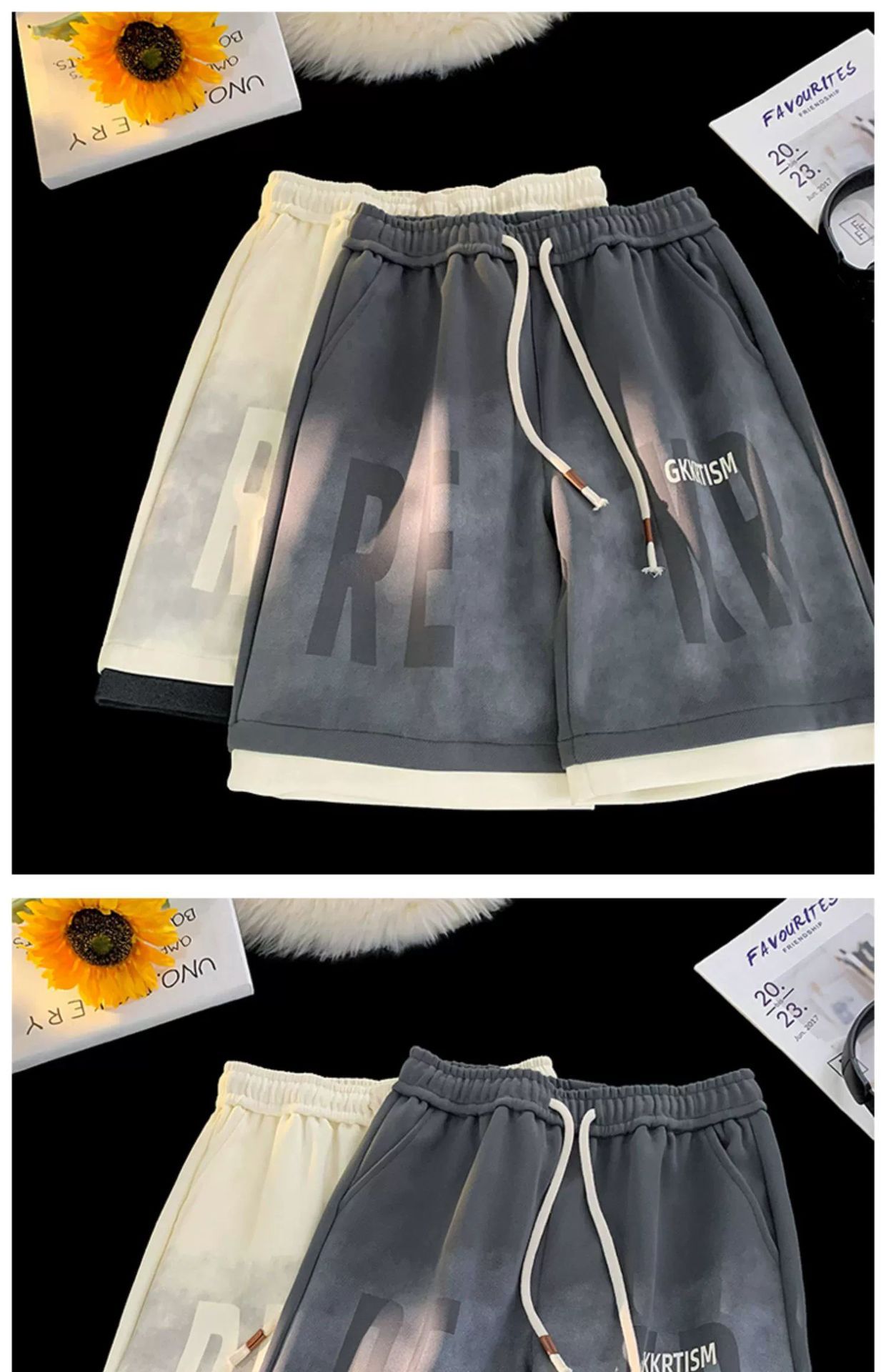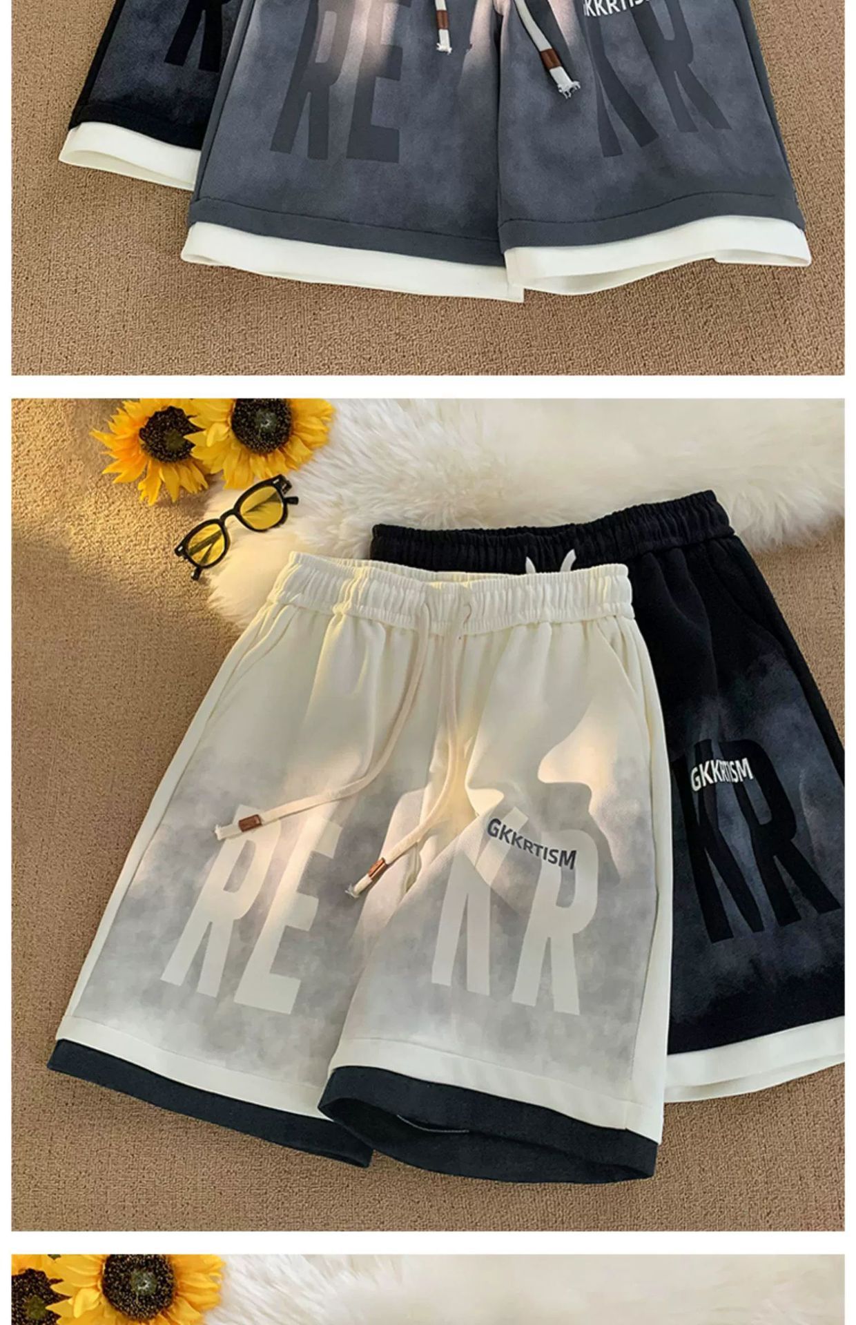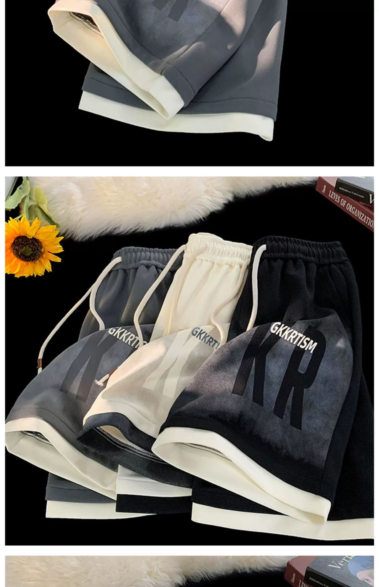 아메리칸 스타일 트렌디 브랜드 스포츠 반바지 남자 여름 가짜 투피스 헤비 듀티 하이 스트리트 루즈 와이드 레그 캐주얼 바지