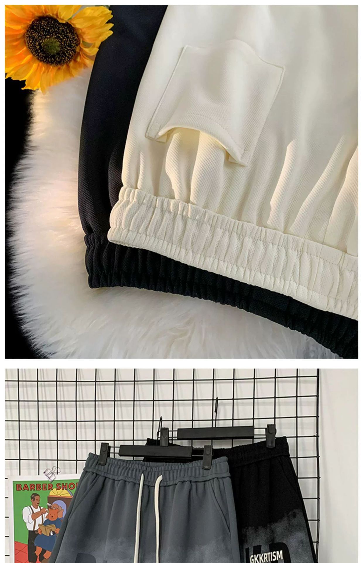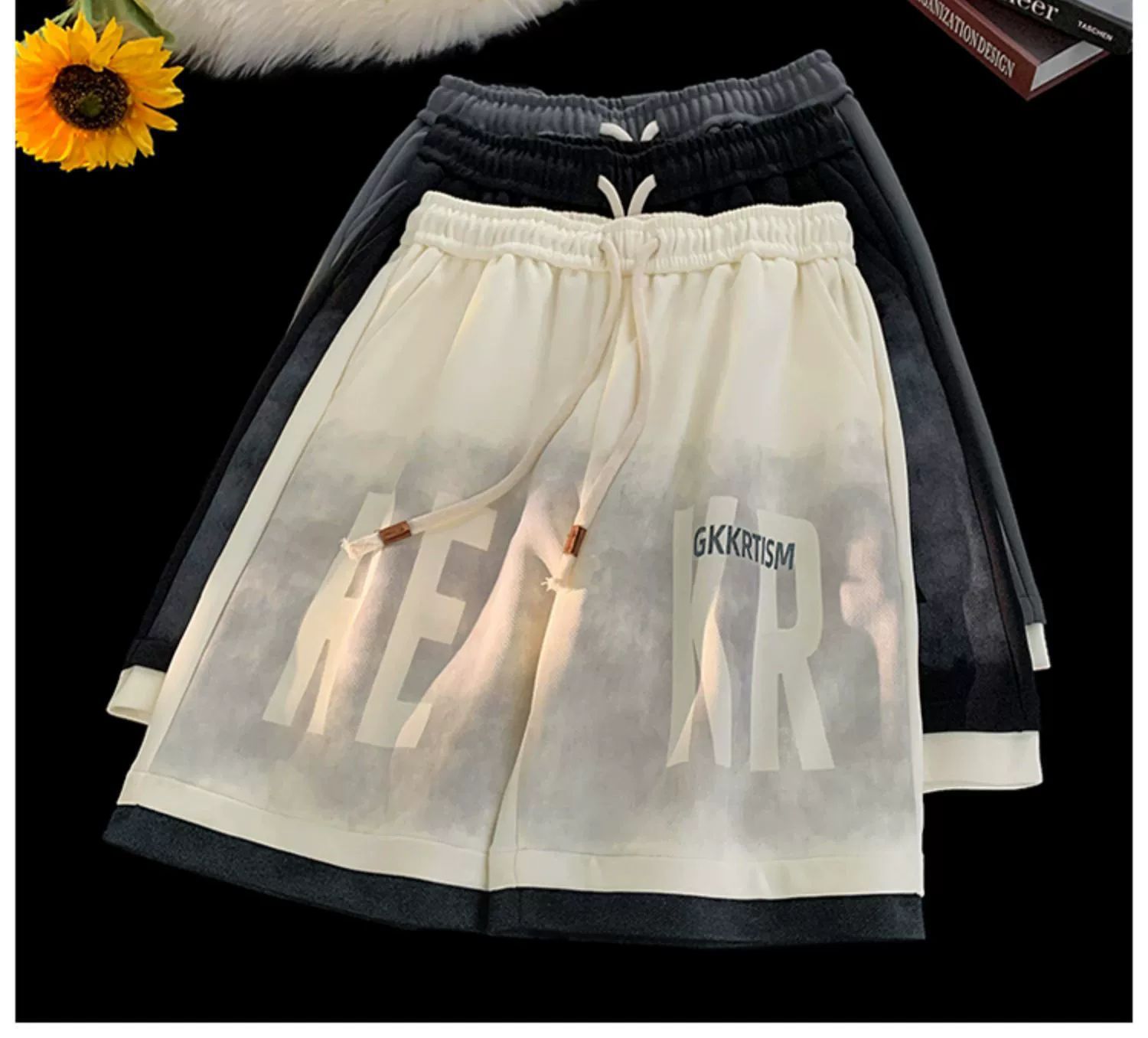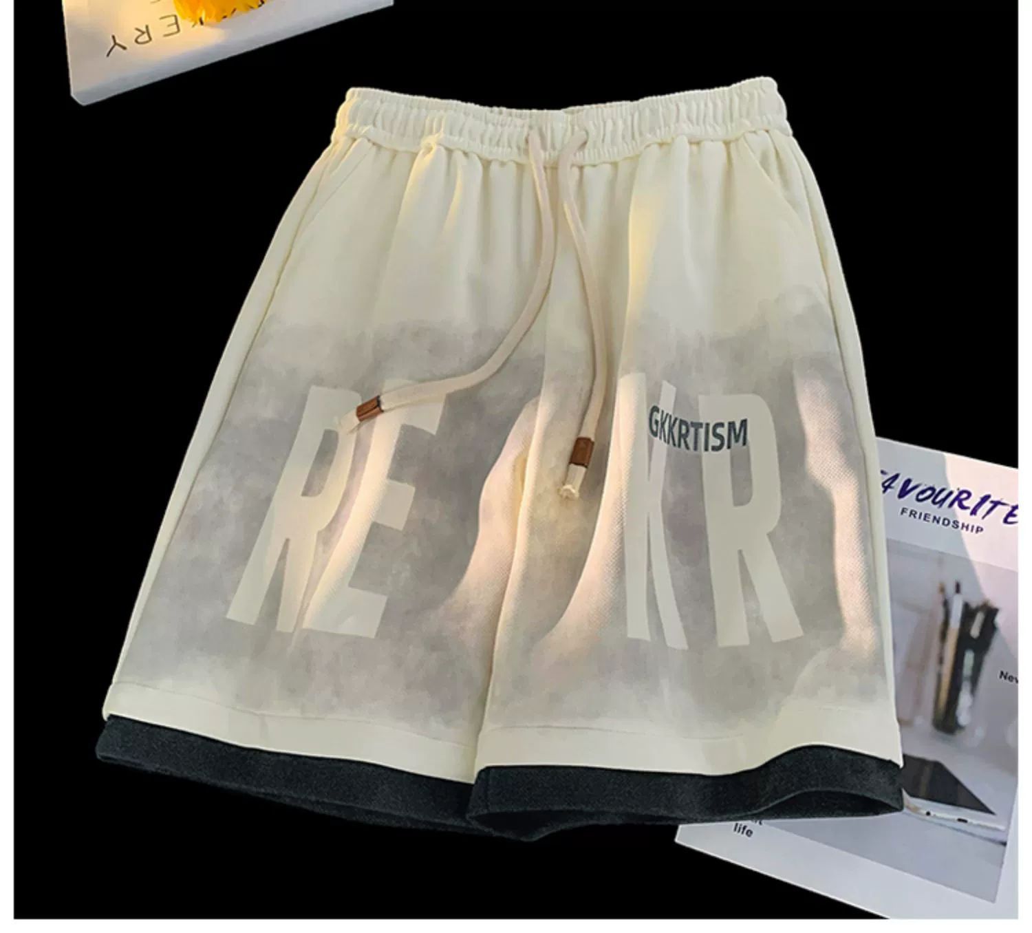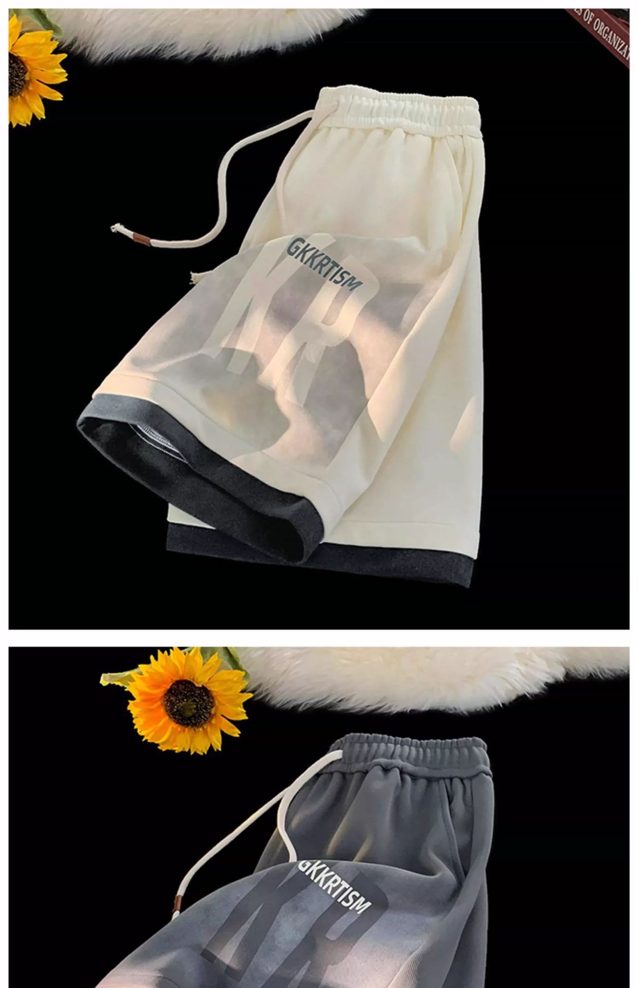 아메리칸 스타일 트렌디 브랜드 스포츠 반바지 남자 여름 가짜 투피스 헤비 듀티 하이 스트리트 루즈 와이드 레그 캐주얼 바지