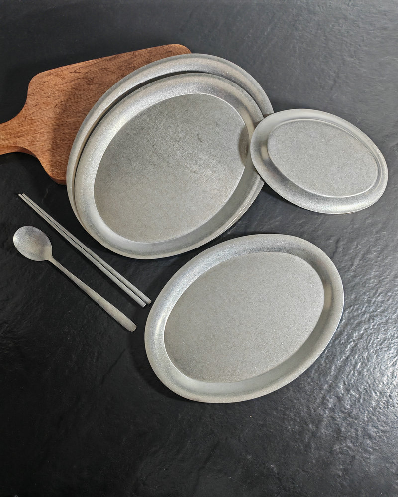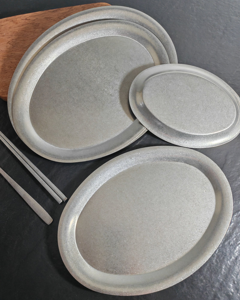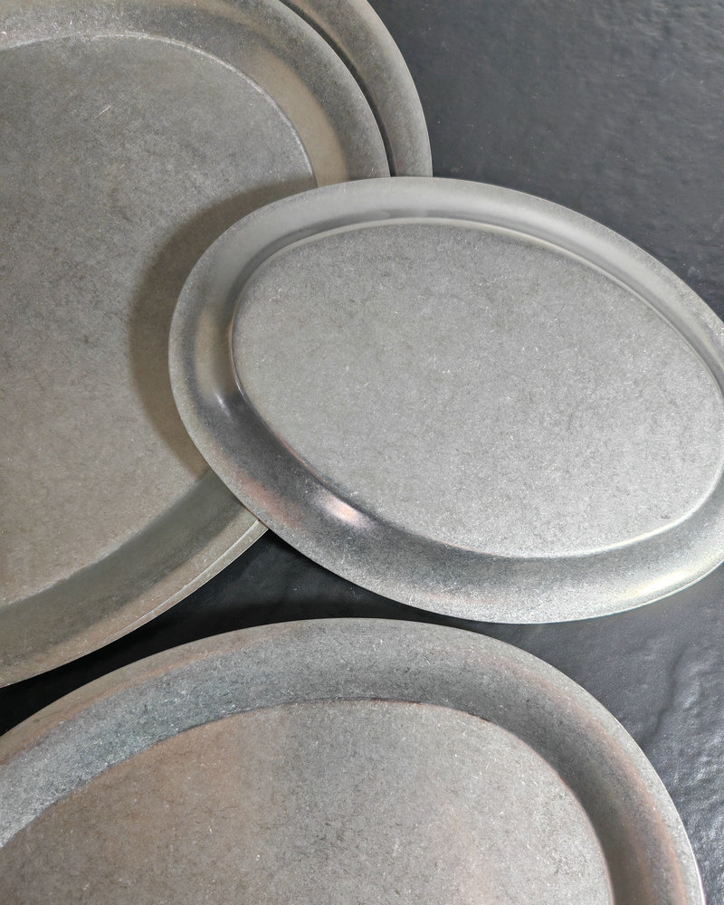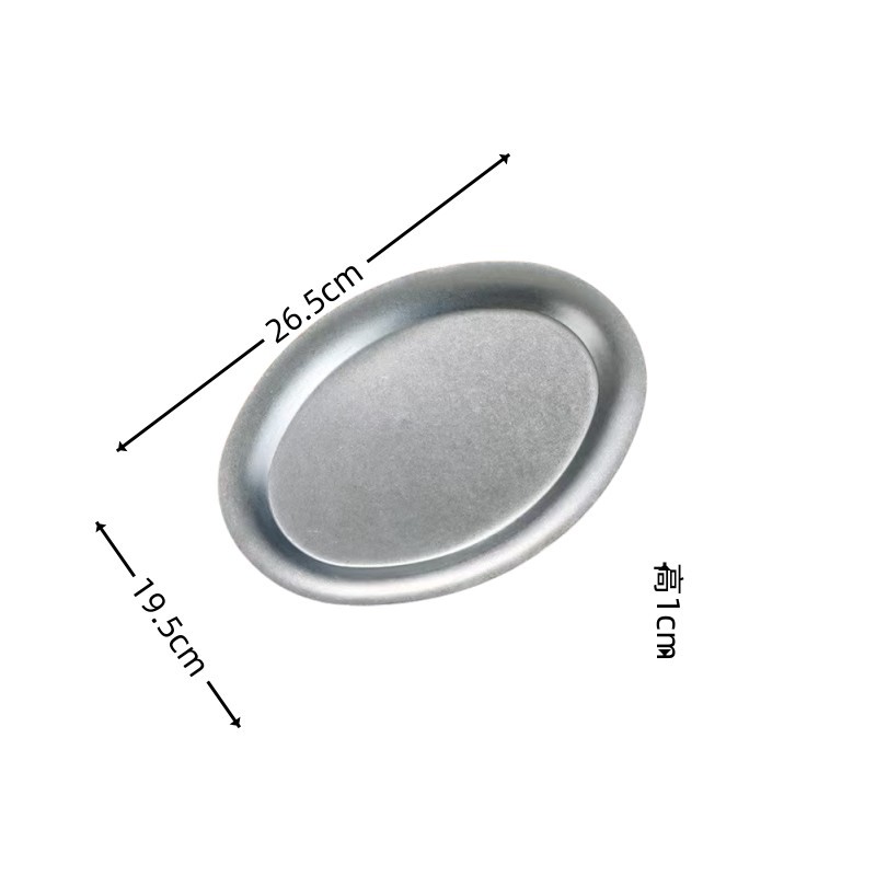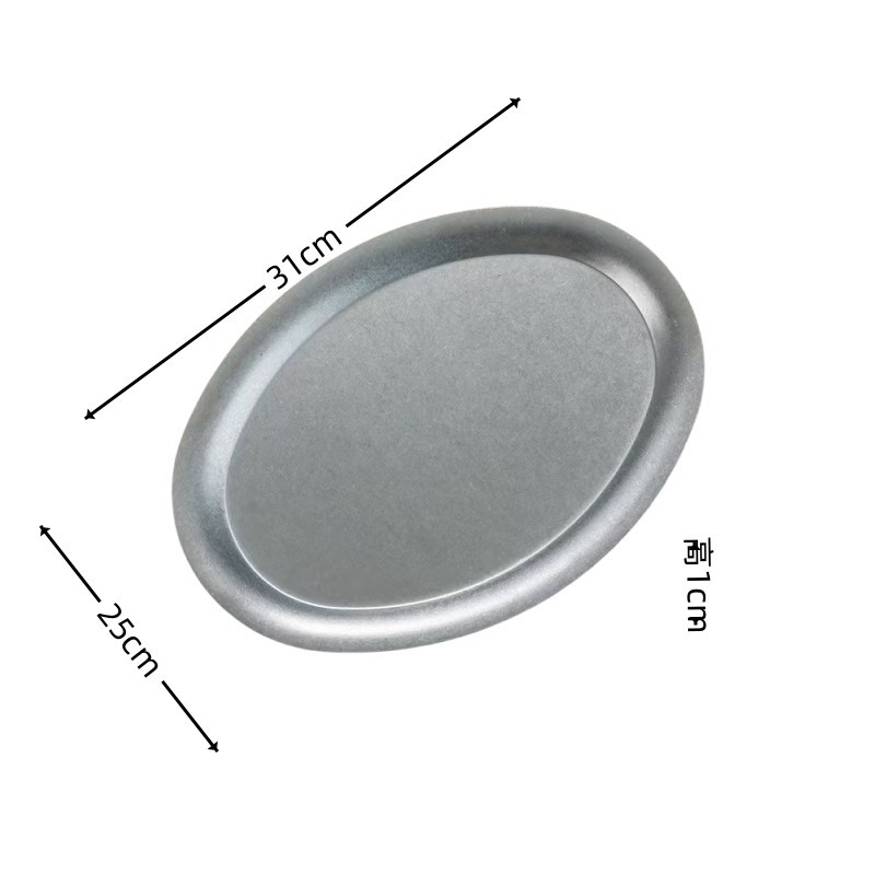 빈티지 스테인레스 스틸 타원형 플레이트 눈송이 그레이 오래 된 스테인레스 스틸 계란 플레이트 바베큐 플레이트 파스타 플레이트 크리에이티브 트레이