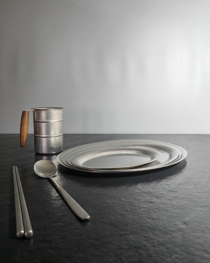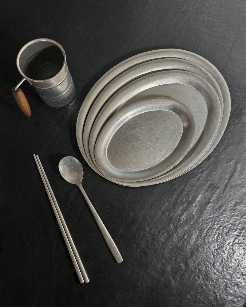 빈티지 스테인레스 스틸 타원형 플레이트 눈송이 그레이 오래 된 스테인레스 스틸 계란 플레이트 바베큐 플레이트 파스타 플레이트 크리에이티브 트레이스토어 가기
