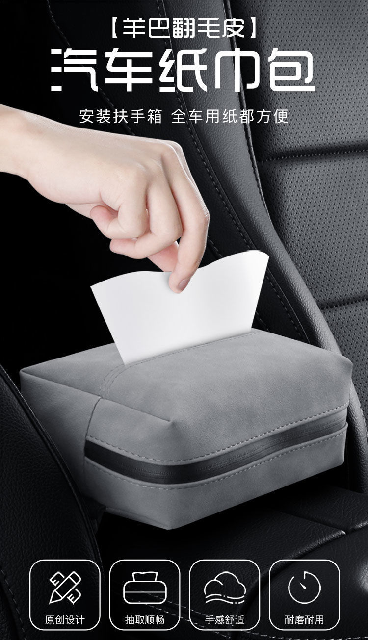 차량용 티슈박스 플리스 가죽 자동차 티슈백 도매 고급스러운 디자인 범용 티슈백 차량용품스토어 가기