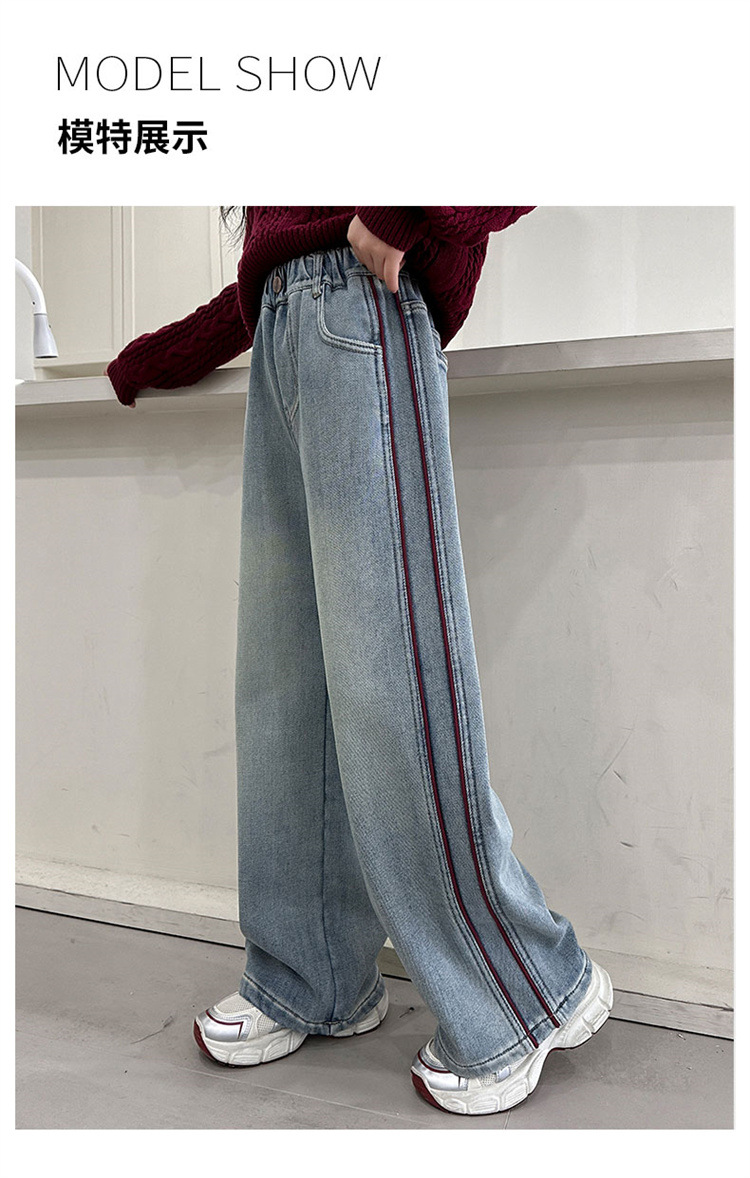 소녀 데님 넓은 다리 바지 2025 새로운 어린이 풀업 캐주얼 스트레이트 바지 큰 어린이 느슨한 서양식 봄과 가을 바지스토어 가기