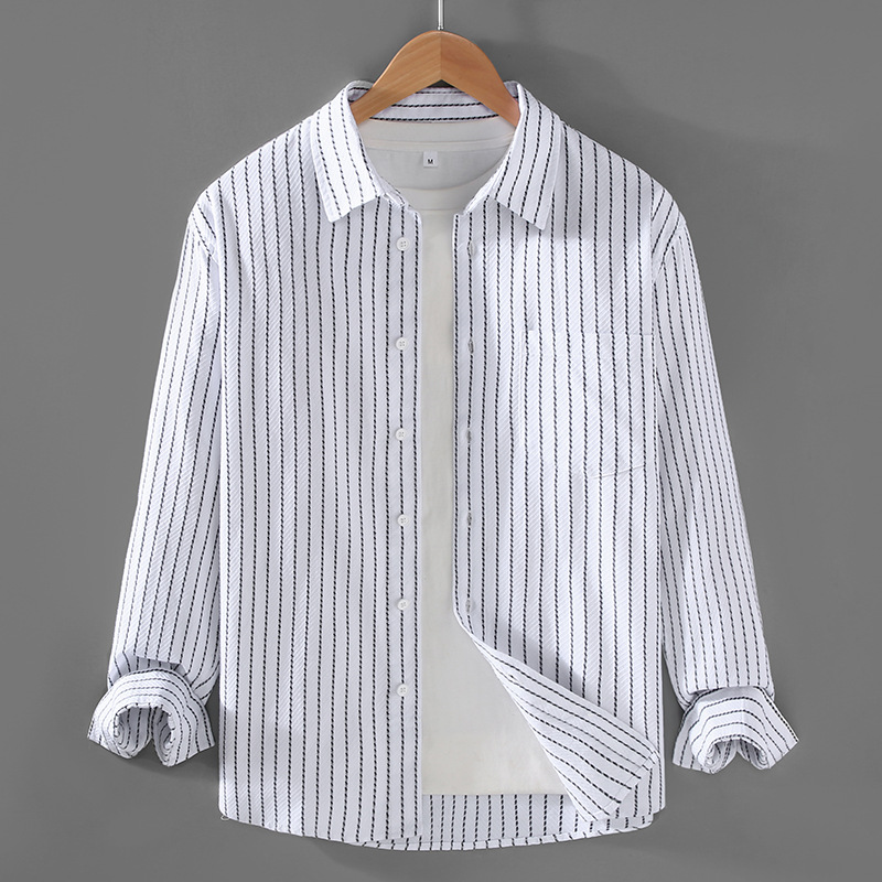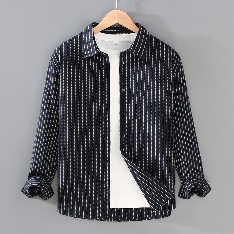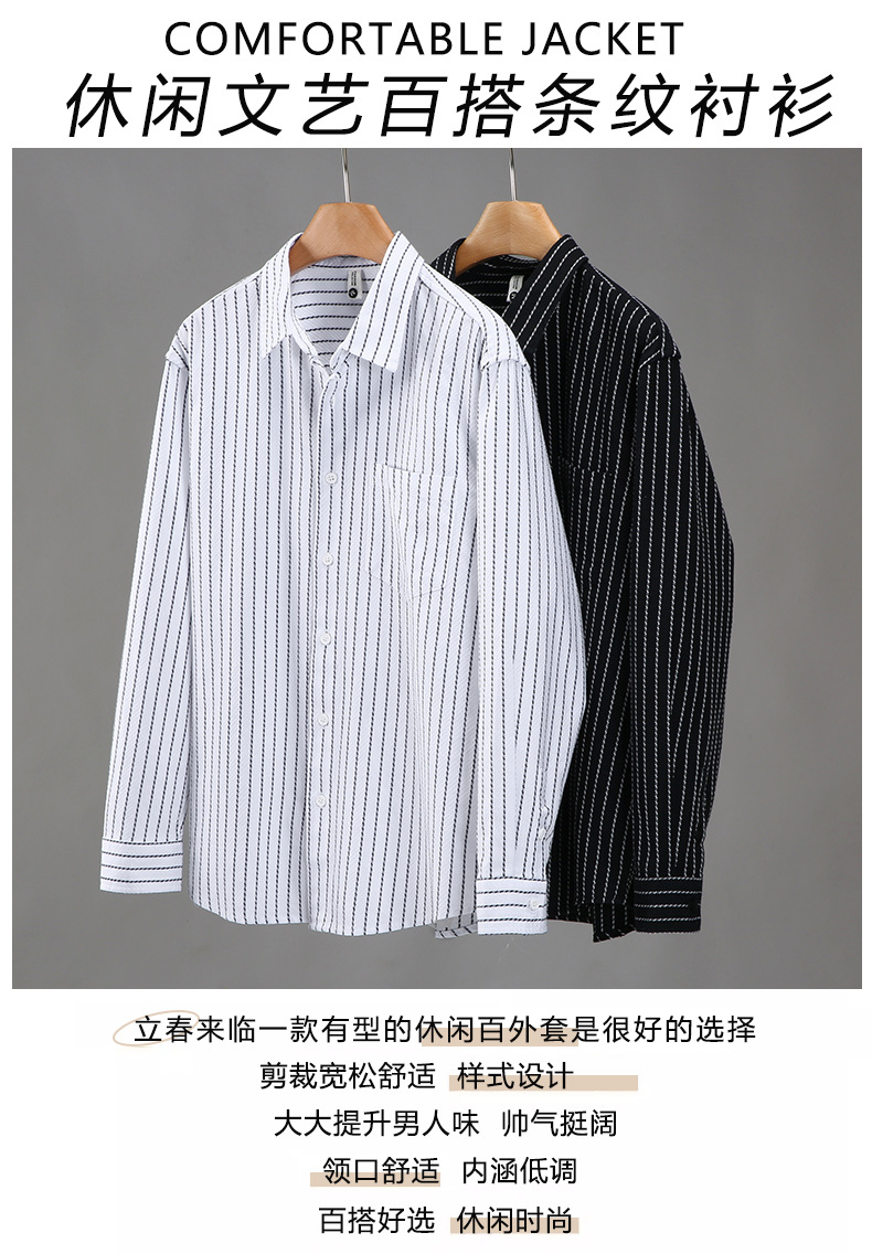 82529 봄 남자 줄무늬 간단한 긴팔 셔츠 유행 캐주얼 루즈 인기 청소년 올매치 남자 셔츠