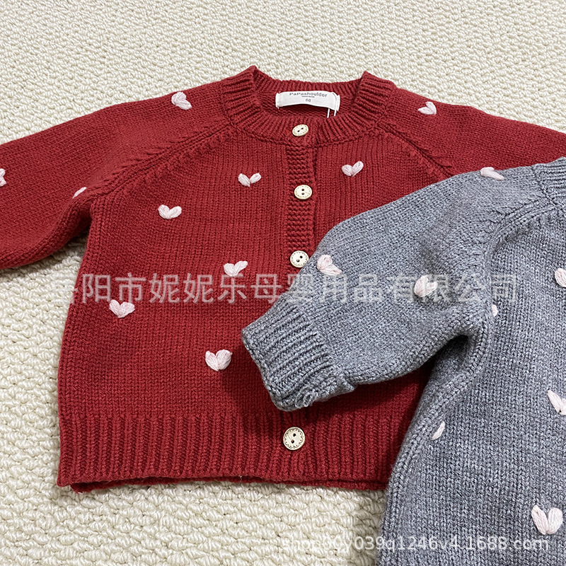 새로운 아기 카디건 스웨터 봄과 가을 서양 스타일 니트 자켓 소년과 소녀 아기 귀여운 라운드 넥 탑스토어 가기