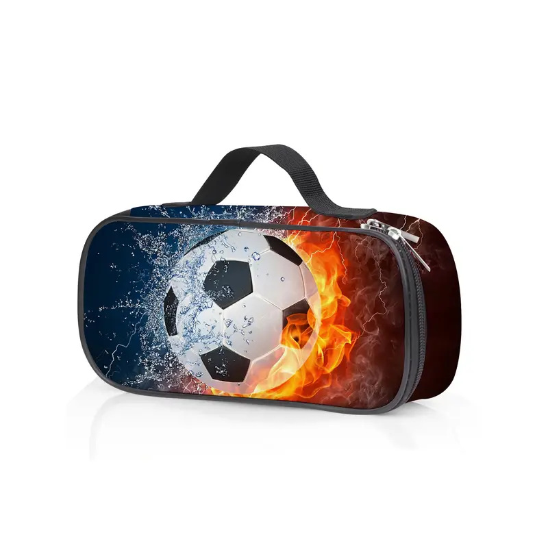 국경 간 스포츠 축구 핸들 단일 레이어 연필 가방 만화 공룡 어린이 연필 가방 대용량 먼지 방지 문구 보관