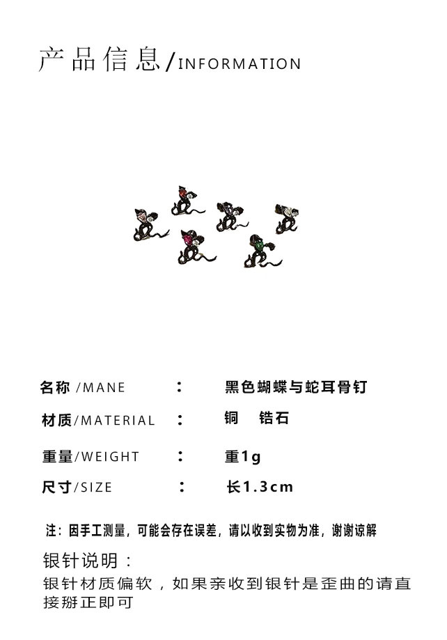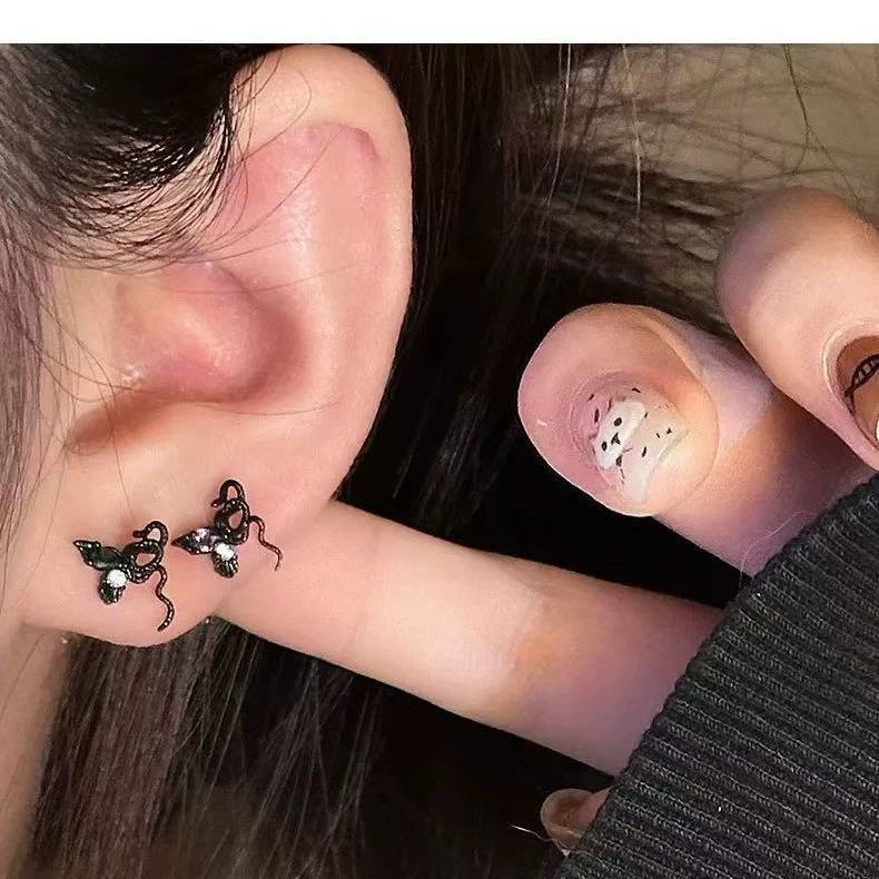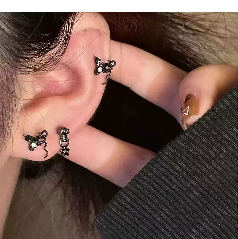 쿨 사 벤밍 니안 창조적 인 나비 뱀 모양의 통합 귀걸이 여성 틈새 디자인 안티 알레르기 귀 뼈 네일 이어 액세서리 패션