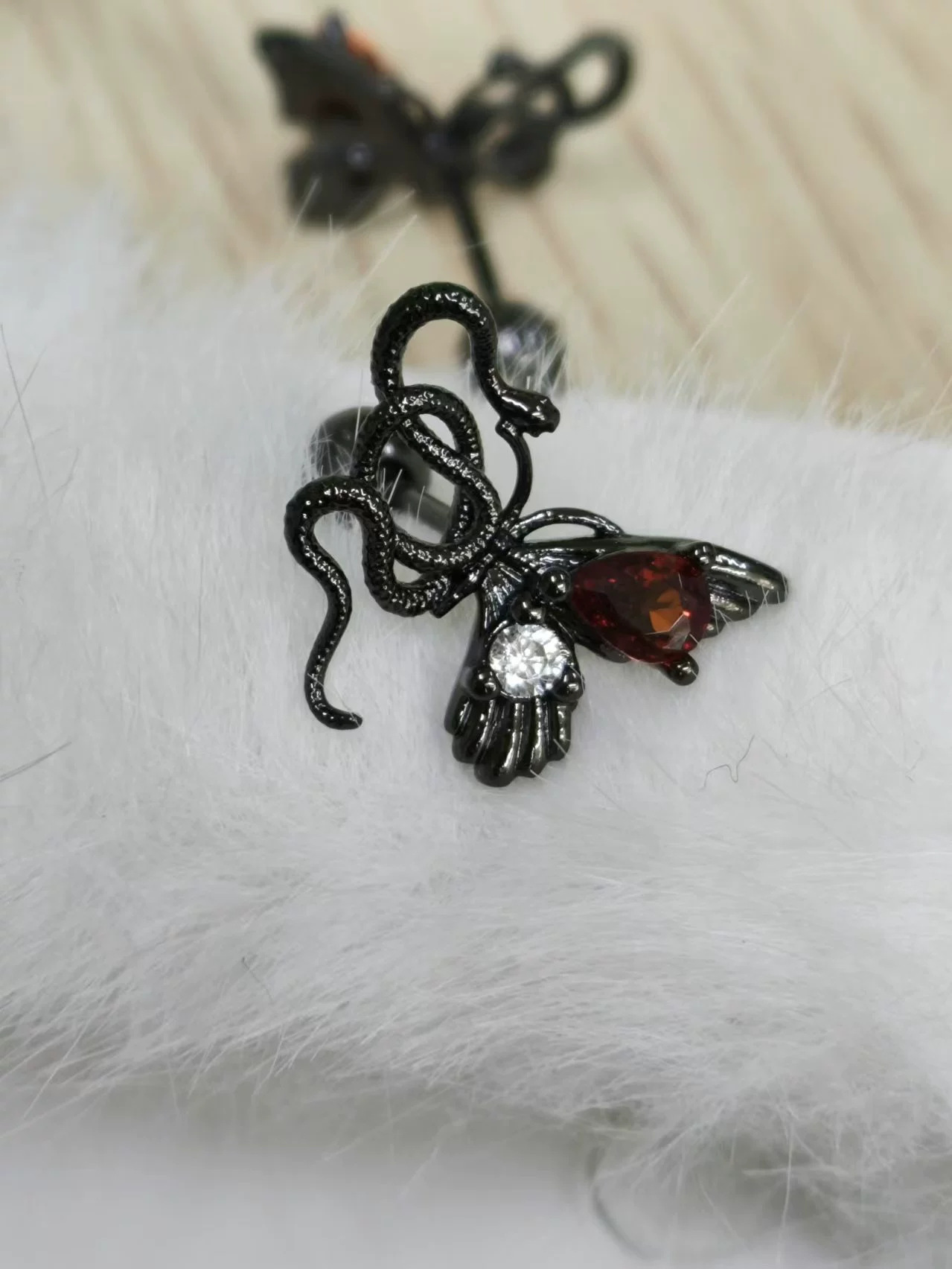 • 진한 빨간색 나비 뱀 모양의 원피스 귀걸이 싱글 R4951F