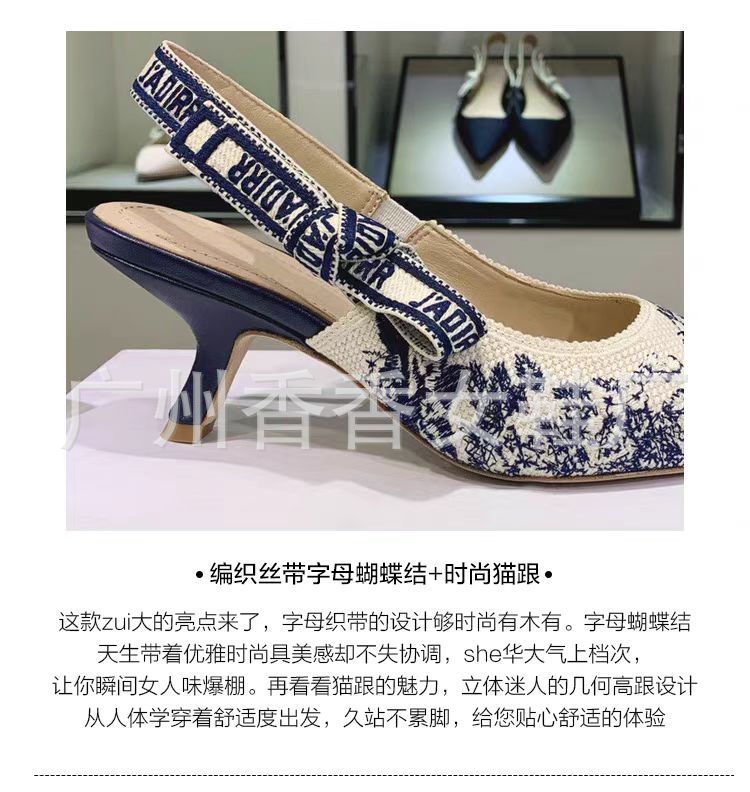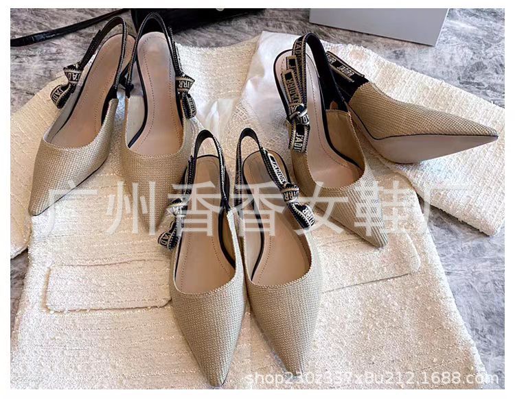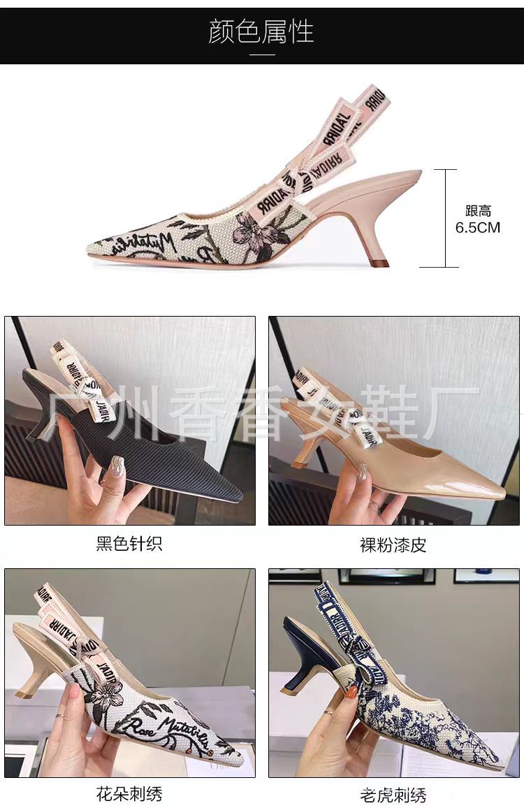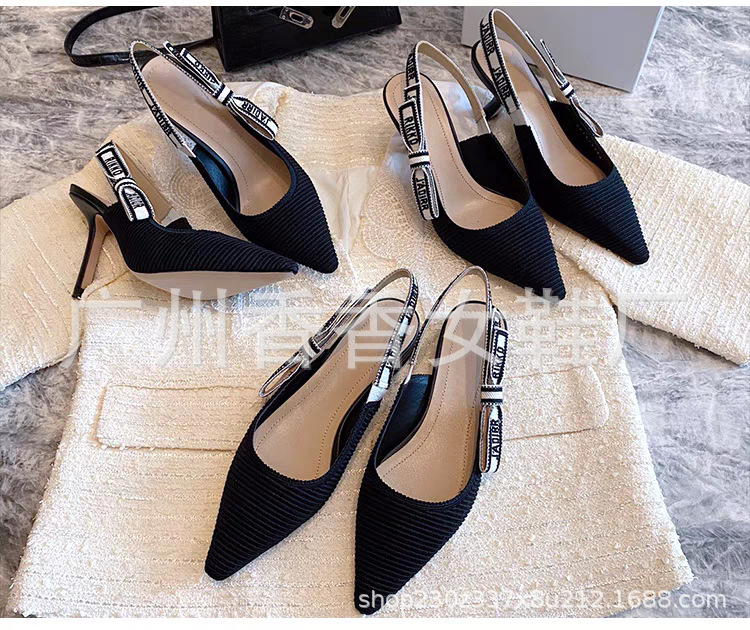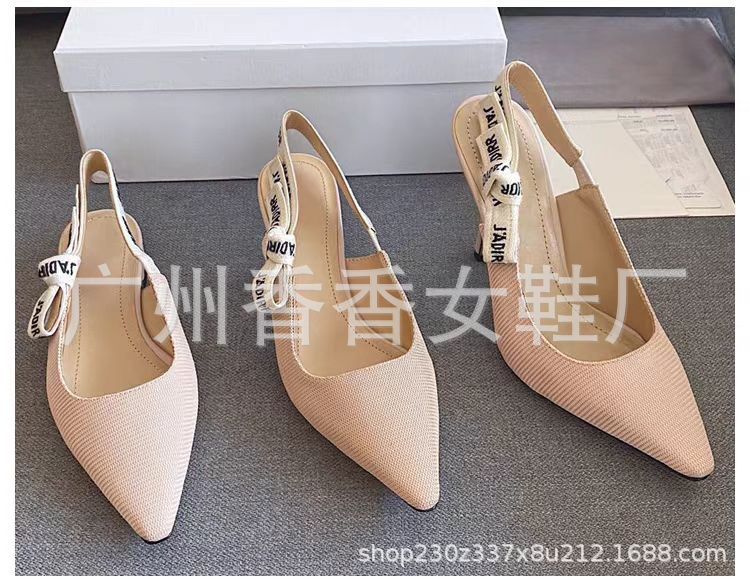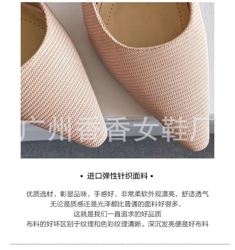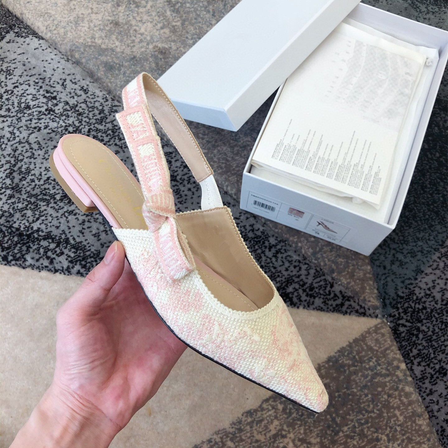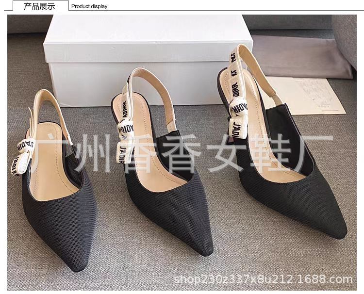 2025 새로운 D 가족 알파벳 활 고양이 뒤꿈치 하이힐 니트 줄무늬 뾰족한 발가락 얕은 여성용 빈 샌들