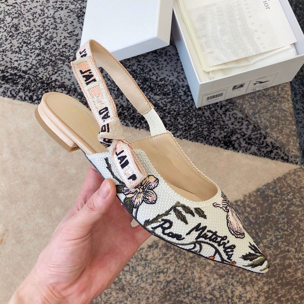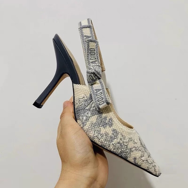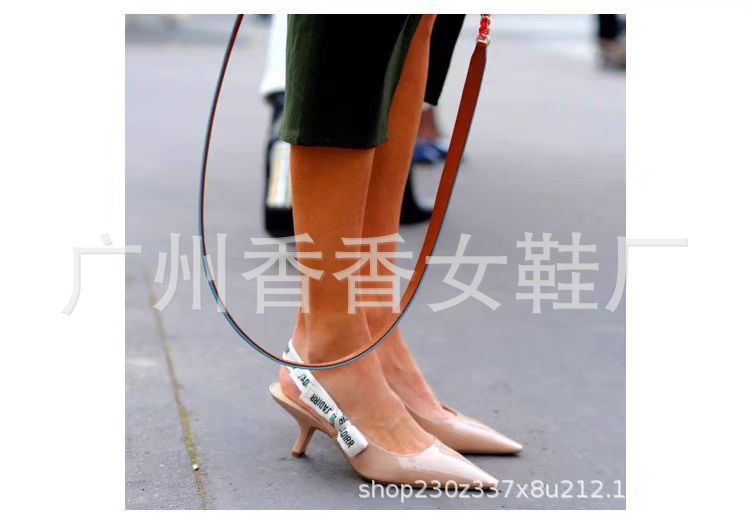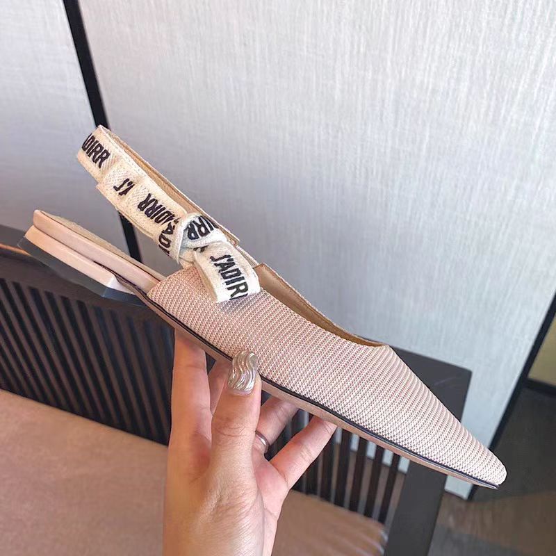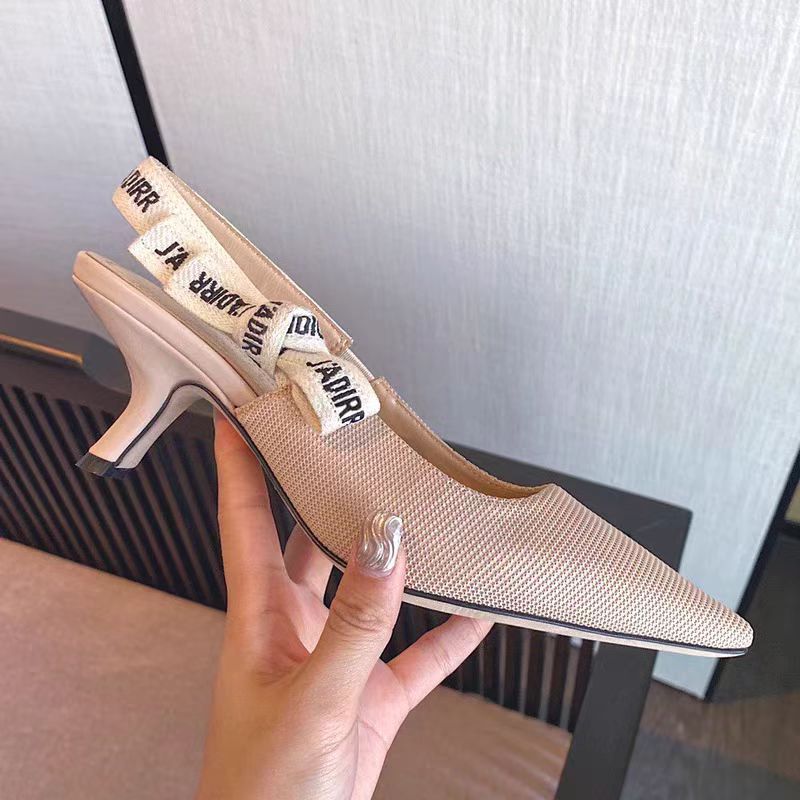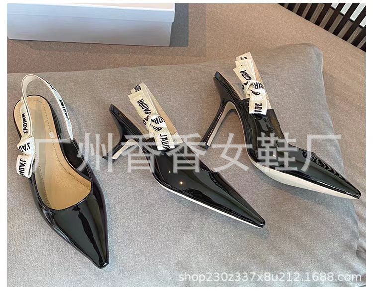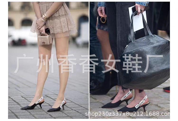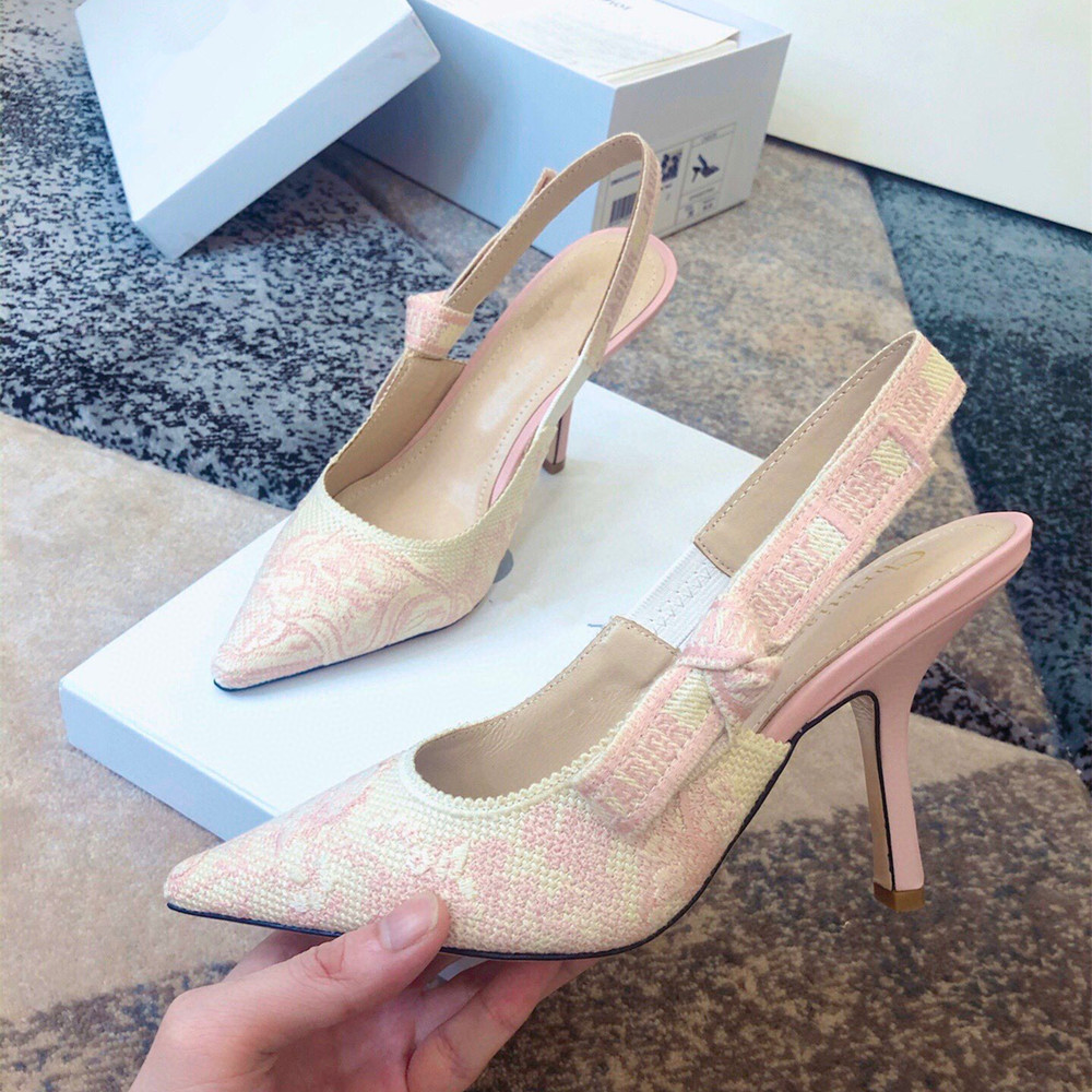 2025 새로운 D 가족 알파벳 활 고양이 뒤꿈치 하이힐 니트 줄무늬 뾰족한 발가락 얕은 여성용 빈 샌들