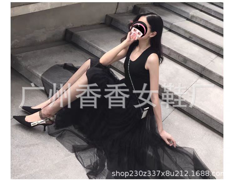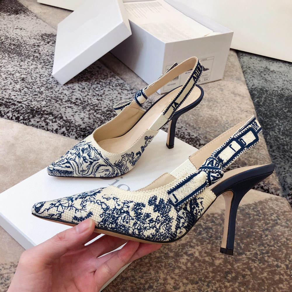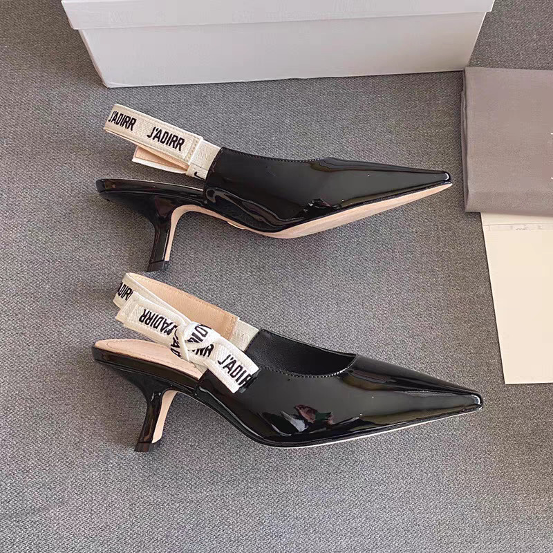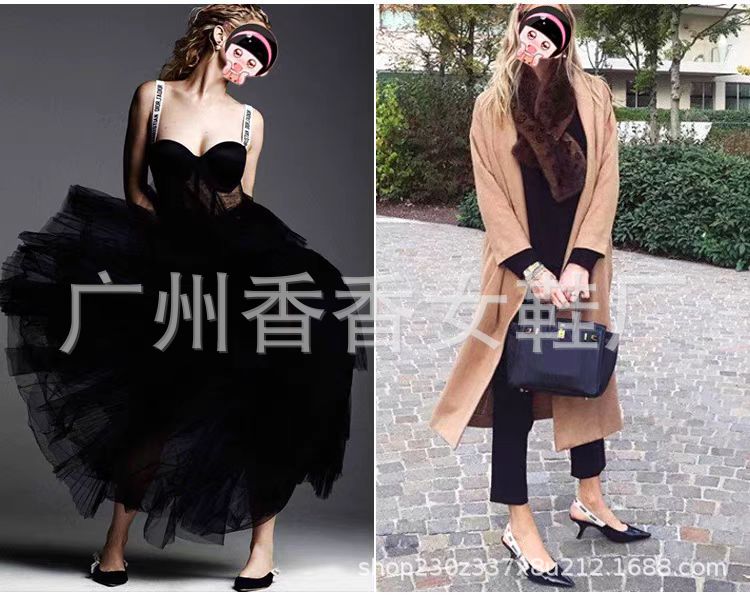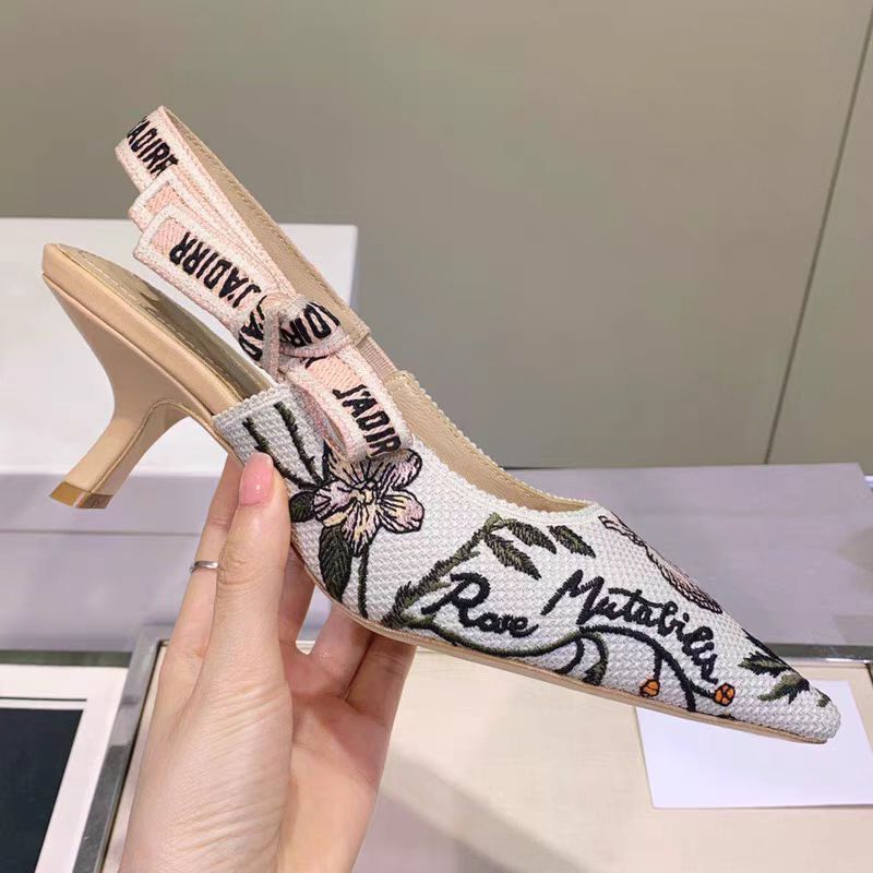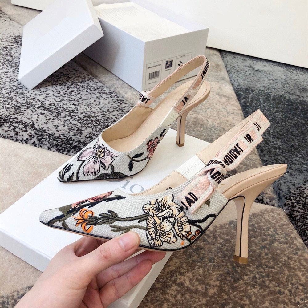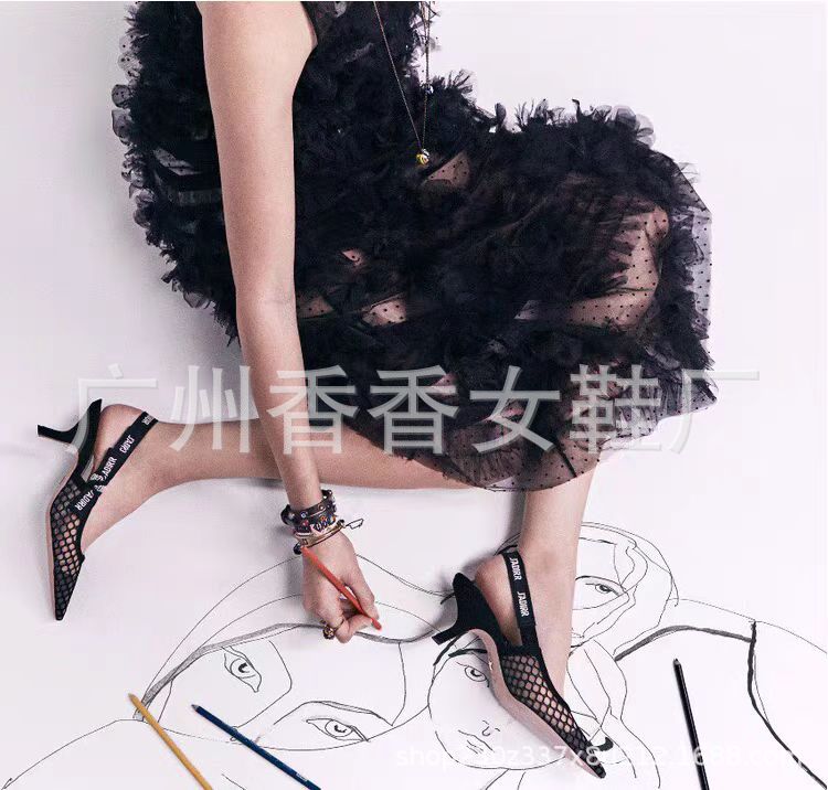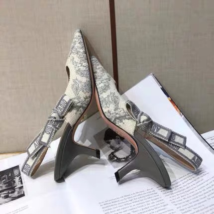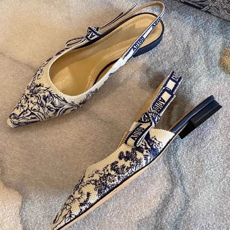 2025 새로운 D 가족 알파벳 활 고양이 뒤꿈치 하이힐 니트 줄무늬 뾰족한 발가락 얕은 여성용 빈 샌들