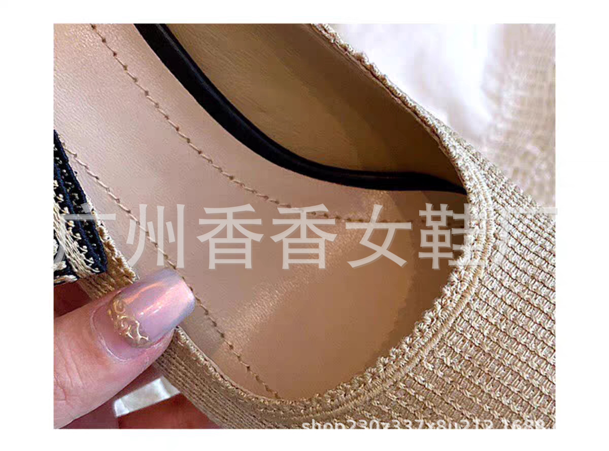 2025 새로운 D 가족 알파벳 활 고양이 뒤꿈치 하이힐 니트 줄무늬 뾰족한 발가락 얕은 여성용 빈 샌들스토어 가기