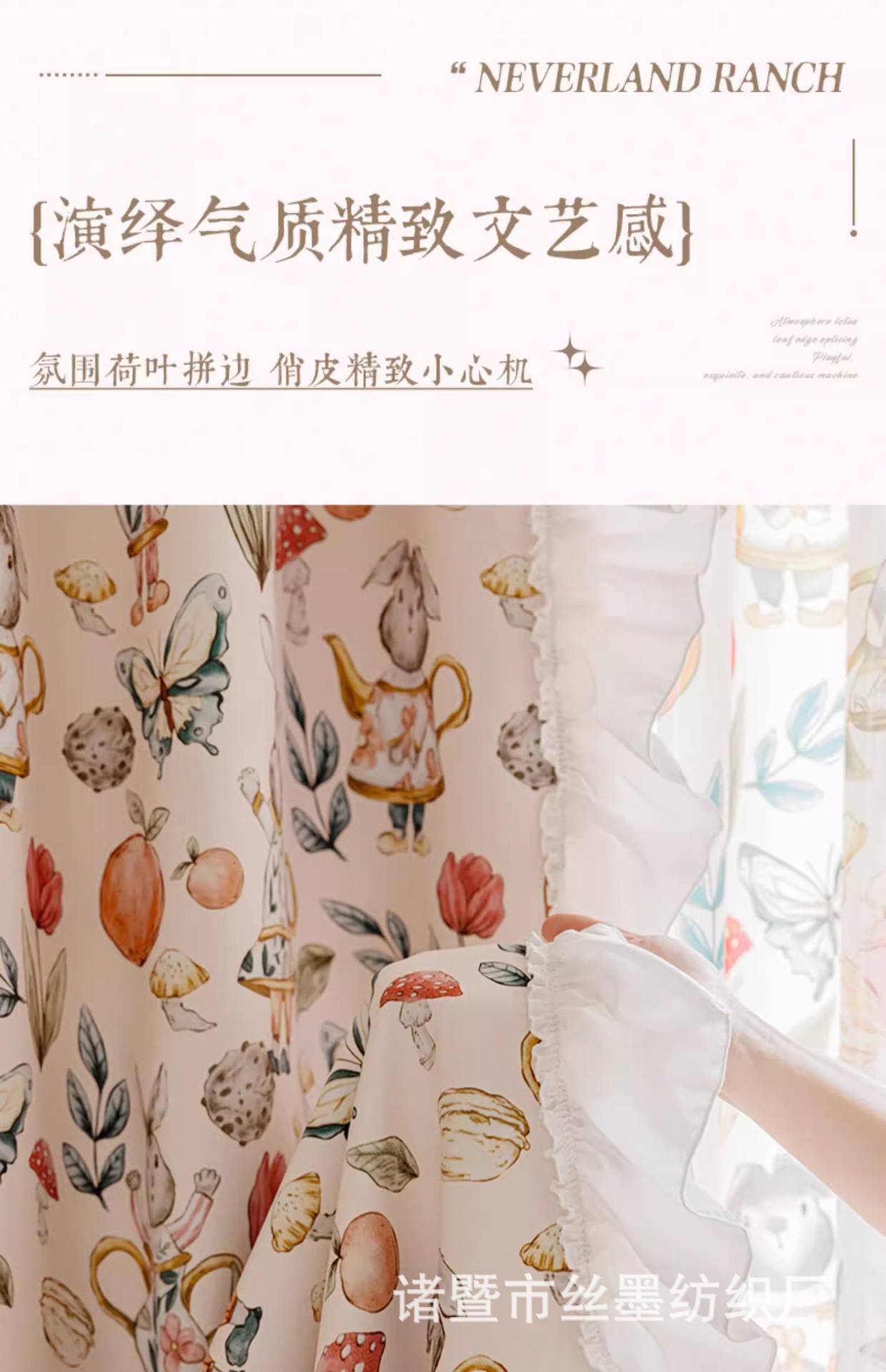 만화 인쇄 커튼 도매 새로운 작은 신선한 어린이 방 북유럽 새로운면 및 린넨 만화 인쇄 커튼 침실스토어 가기