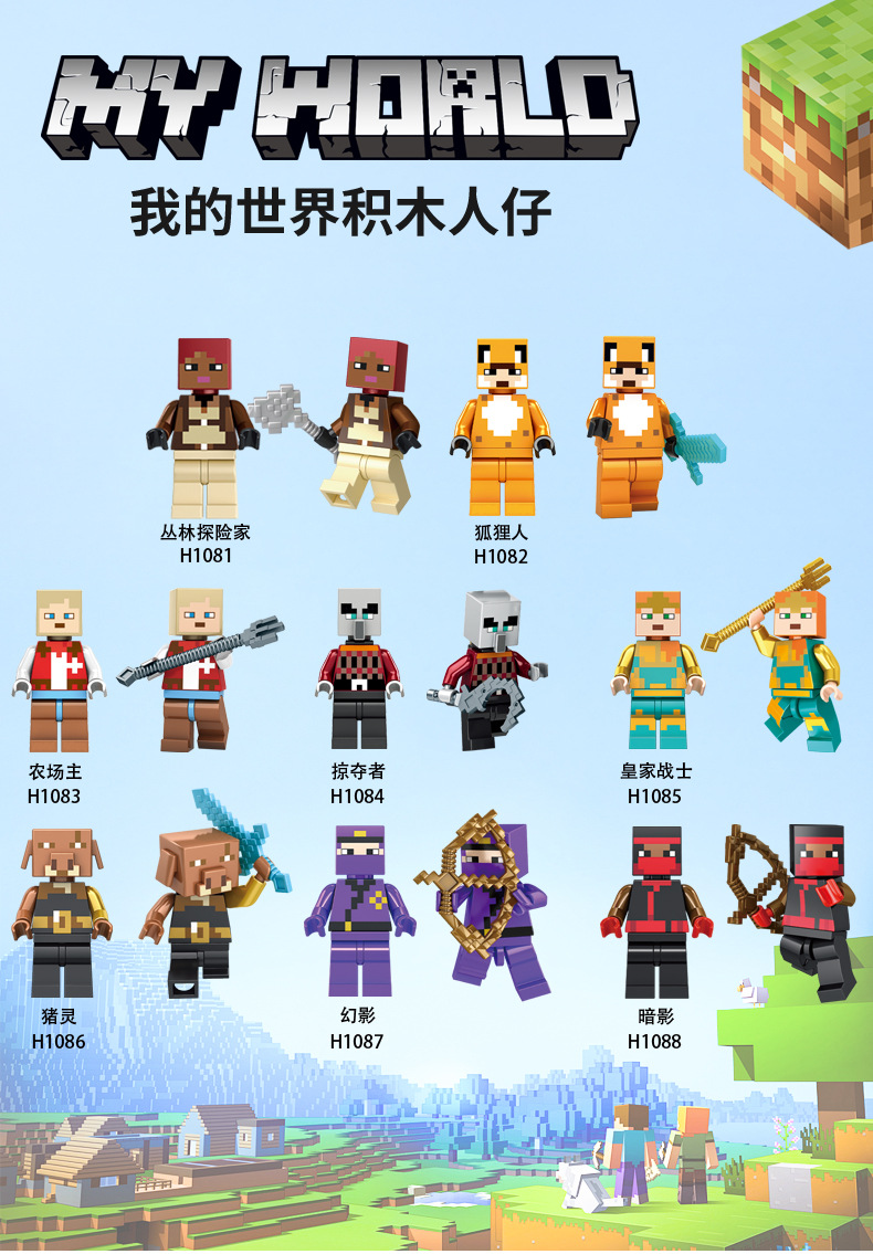 국경 간 내 세계 남자 레고 빌딩 블록 조립 교육 기관 303 폭스 맨 HIM 새로운 장난감스토어 가기