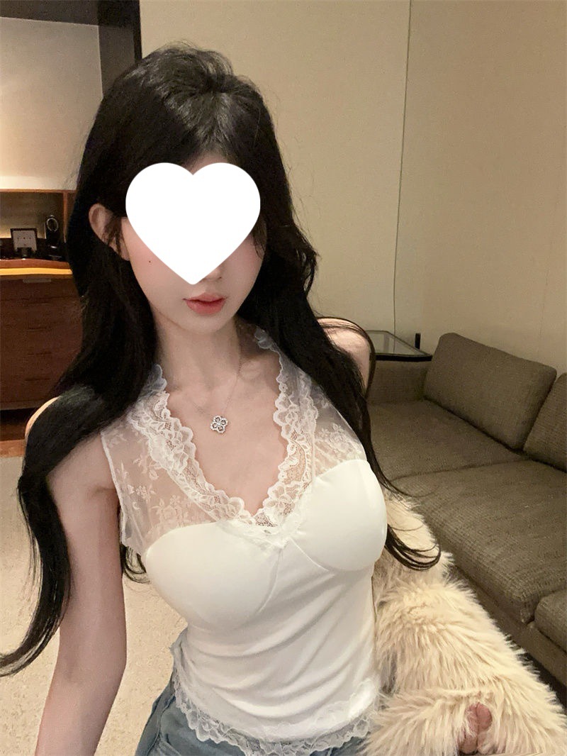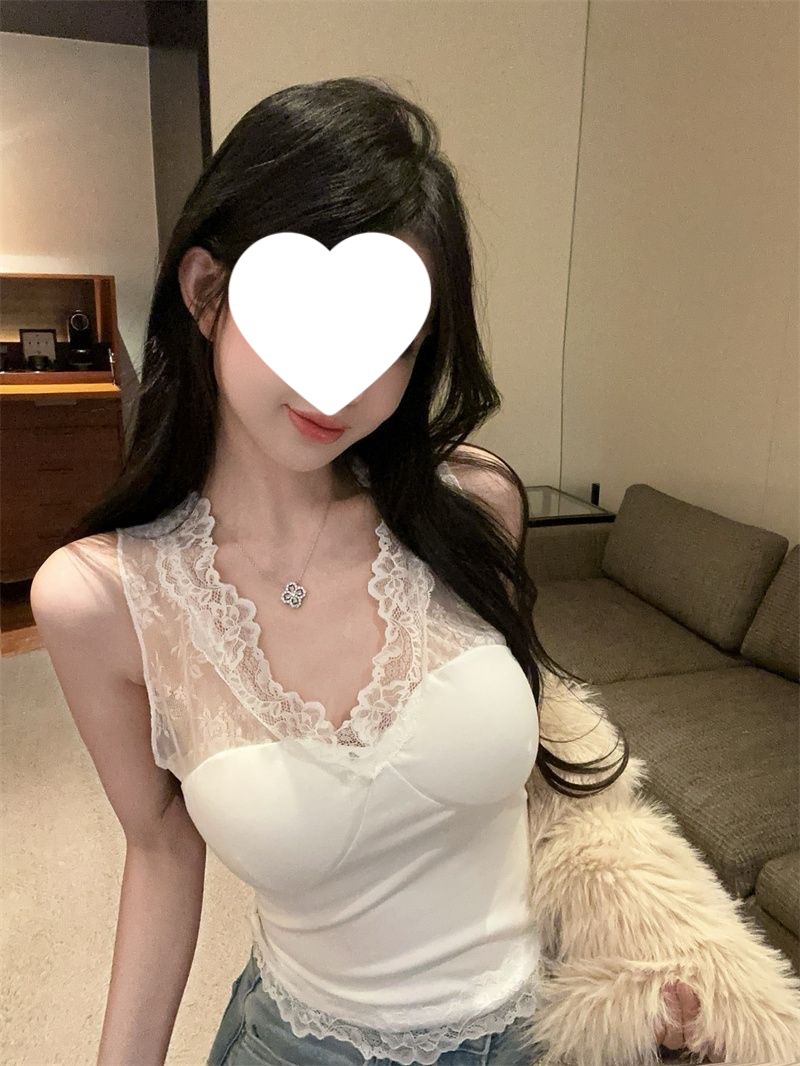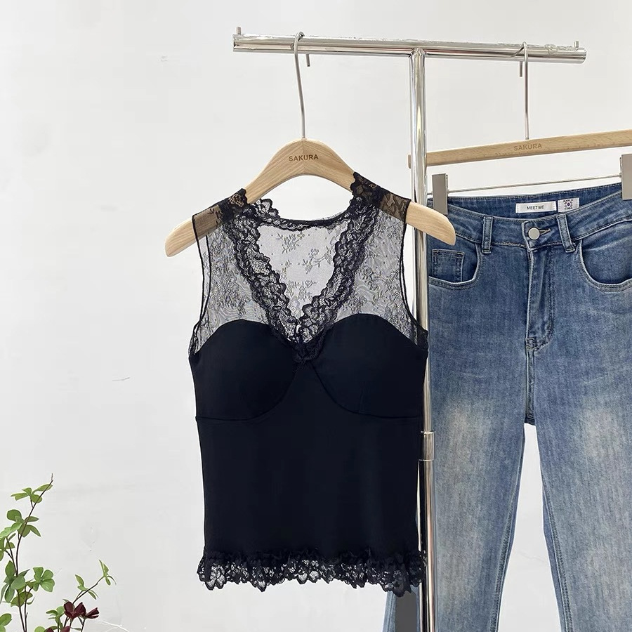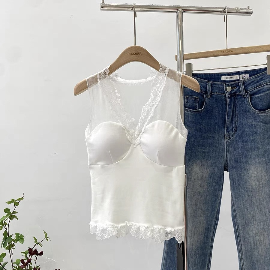 가슴 패드가 있는 레이스 캐미솔 여성용 봄 여름용 뷰티백 V넥 민소매 섹시한 속옷 베이스 레이어 순수한 매력 탑스토어 가기