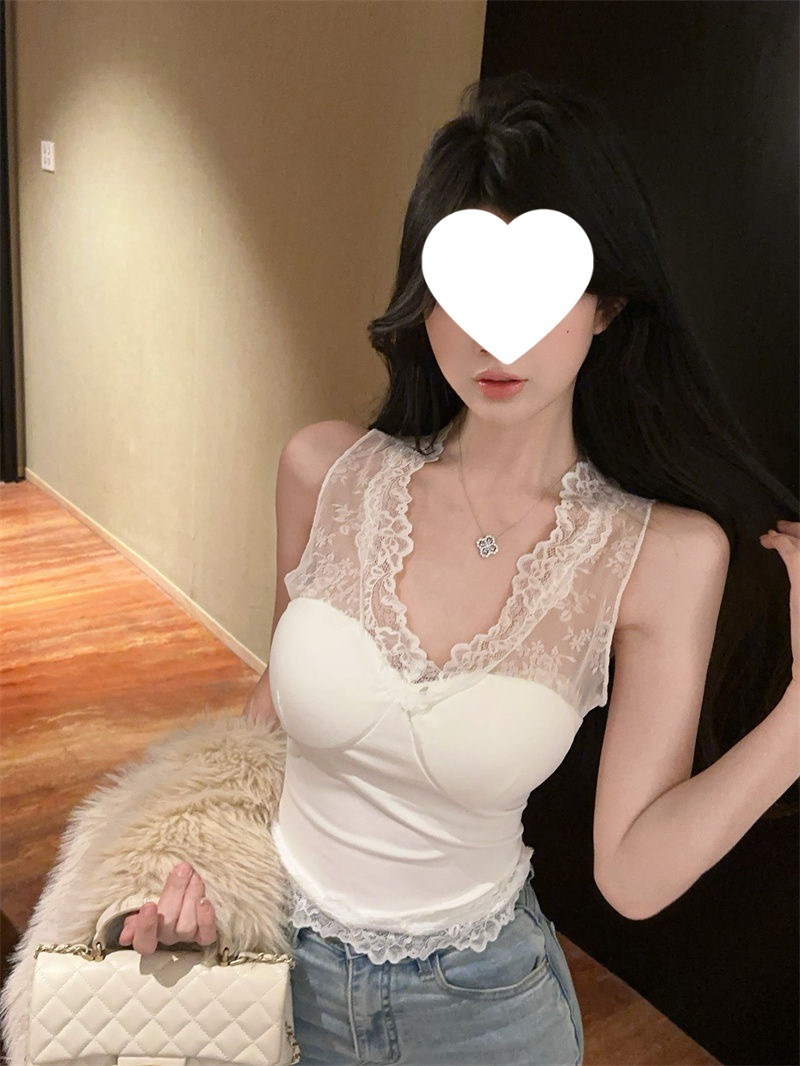 가슴 패드가 있는 레이스 캐미솔 여성용 봄 여름용 뷰티백 V넥 민소매 섹시한 속옷 베이스 레이어 순수한 매력 탑