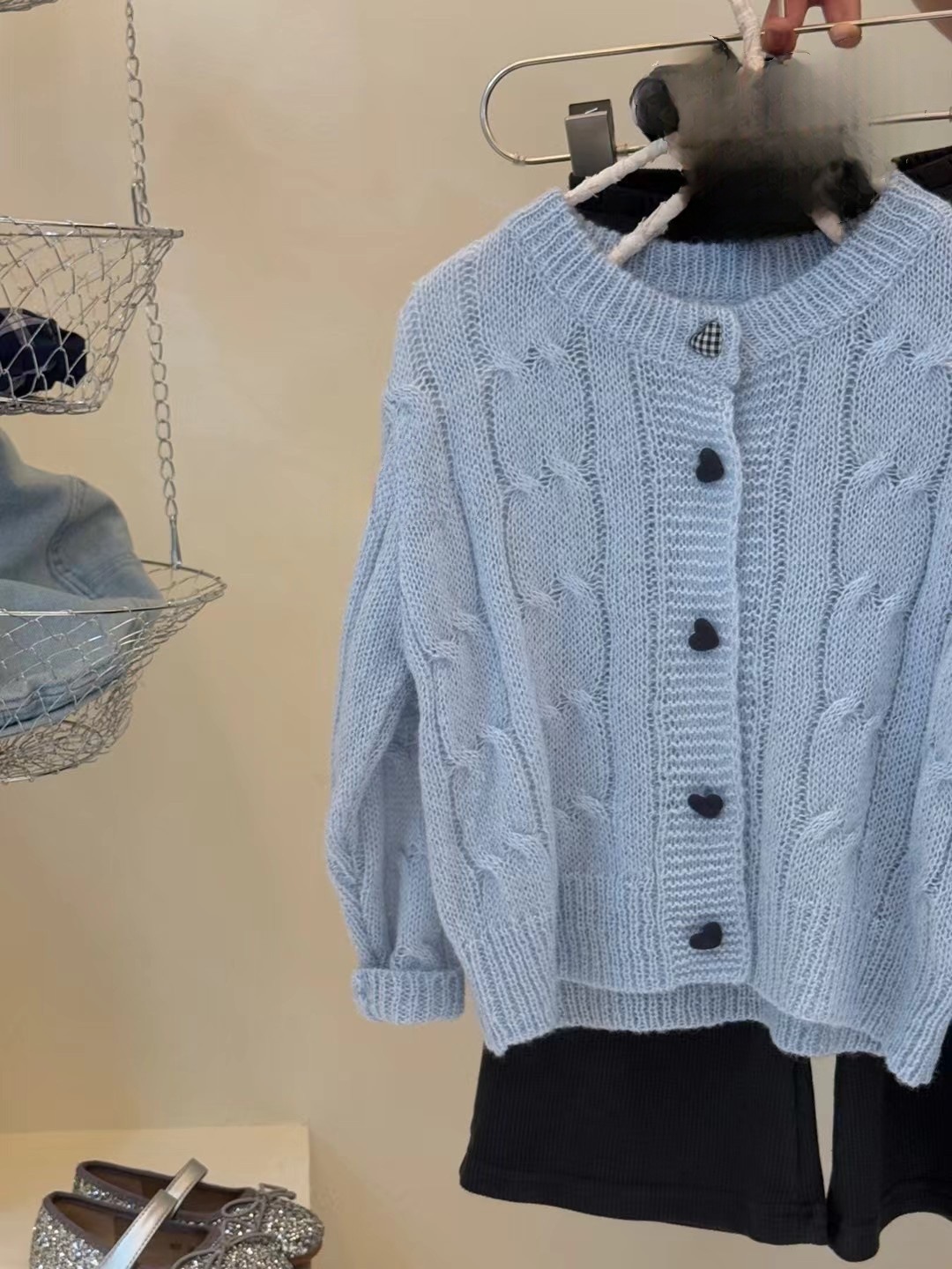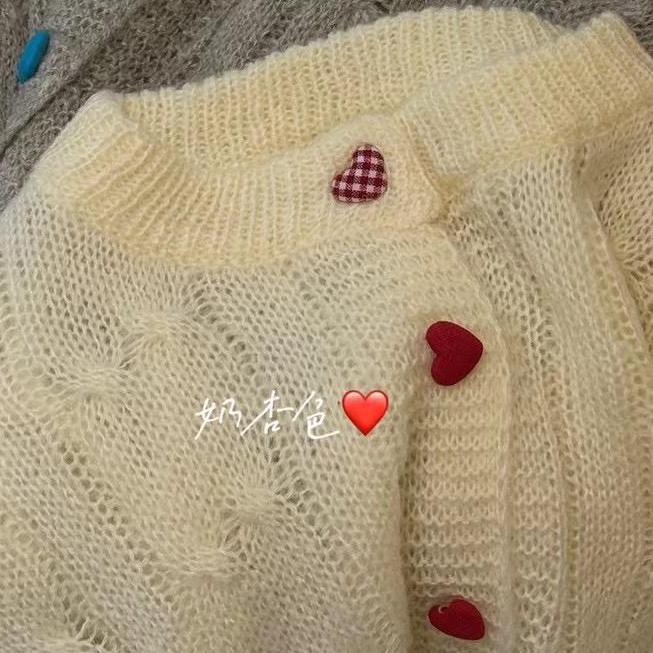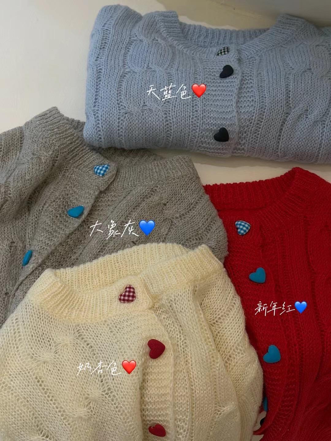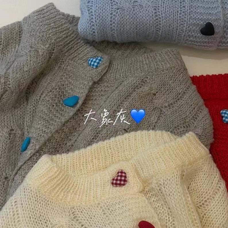 여자 봄 새로운 한국어 스타일 캔디 컬러 러브 버튼 니트 카디건 어린이 다목적 얇은 모직 스웨터 재킷스토어 가기