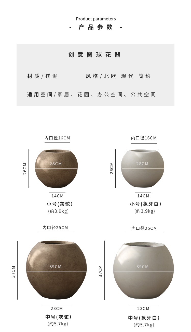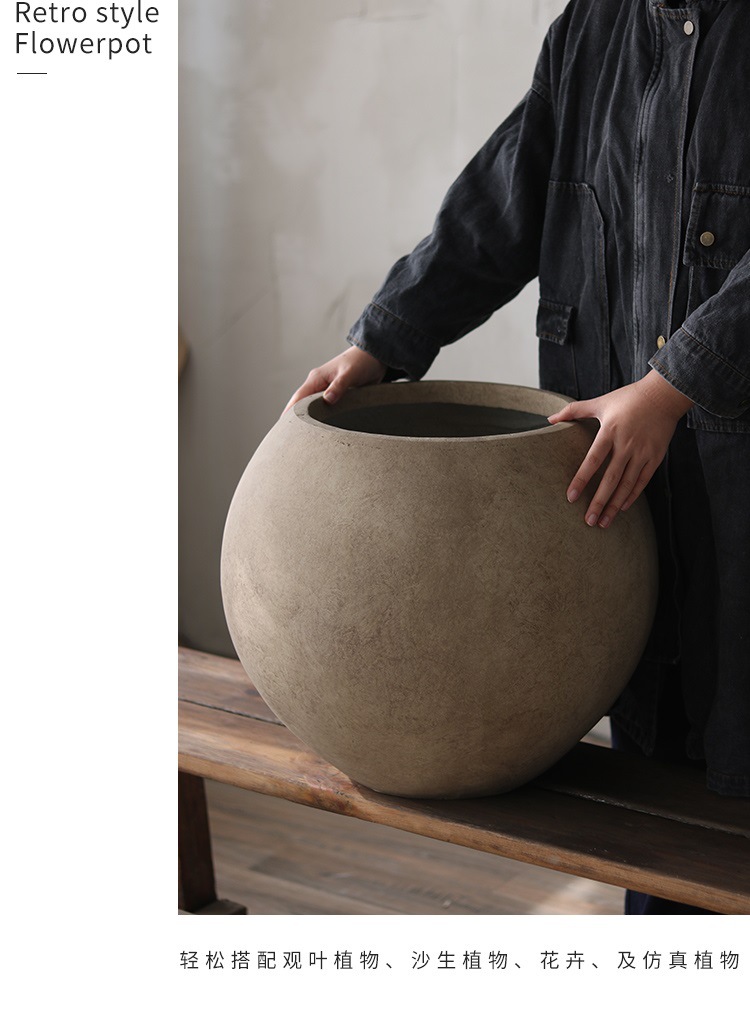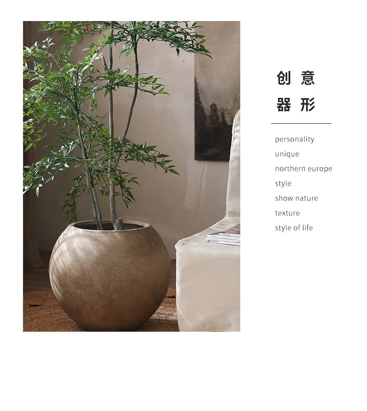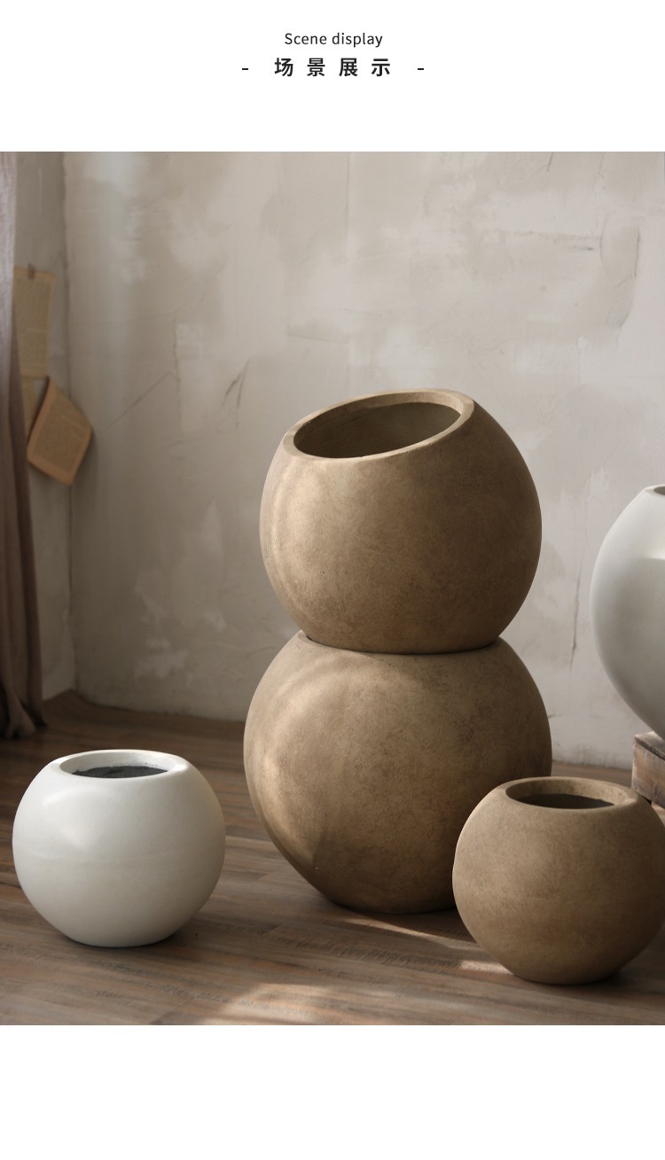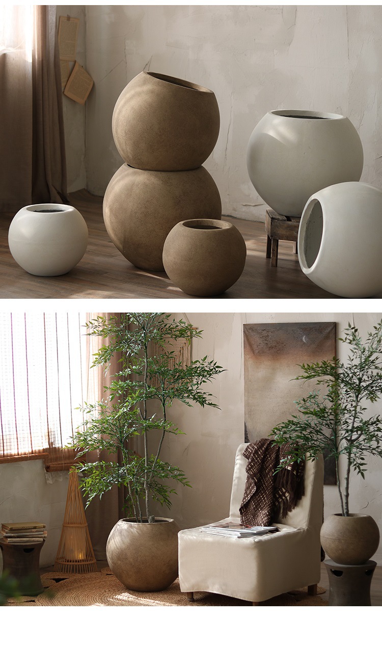 북유럽 바닥 둥근 화분 공장 도매 직접 마그네슘 진흙 큰 화분 거실 원예 장식 식물 꽃스토어 가기