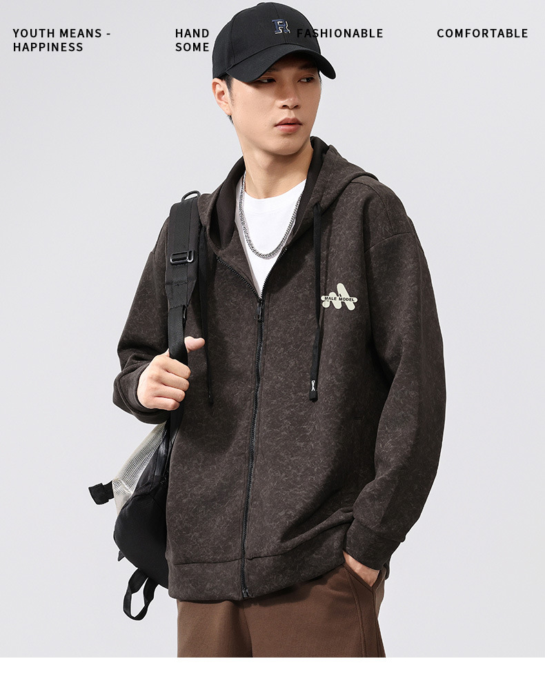 F2155 # 플러스 사이즈 남자 봄 새로운 320G 후드 카디건 착용 느슨한 플러스 사이즈 조커 캐주얼 재킷