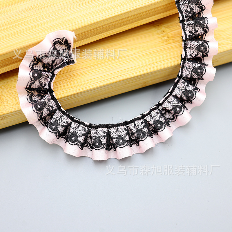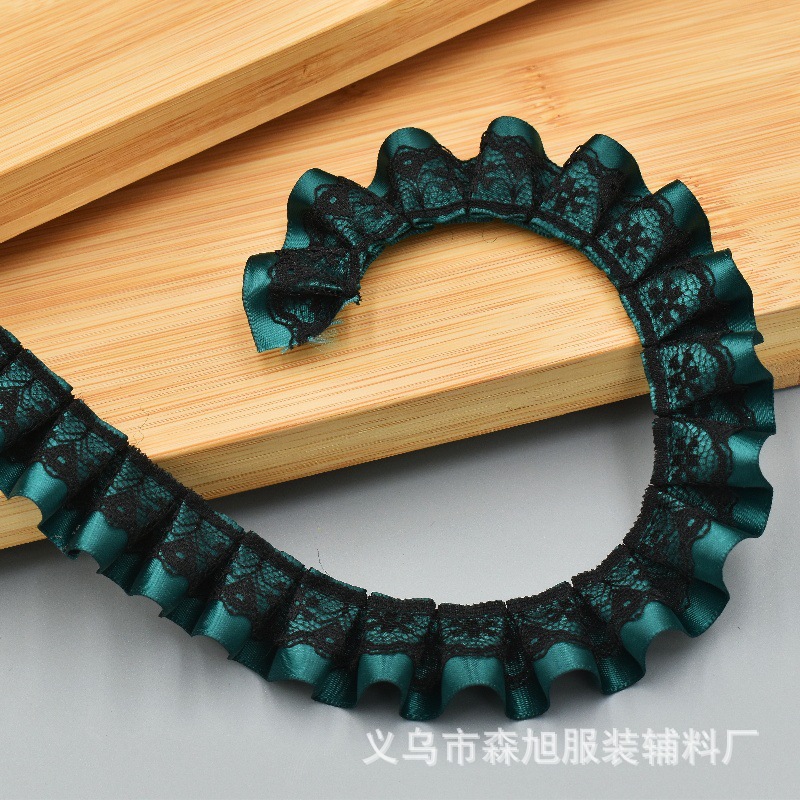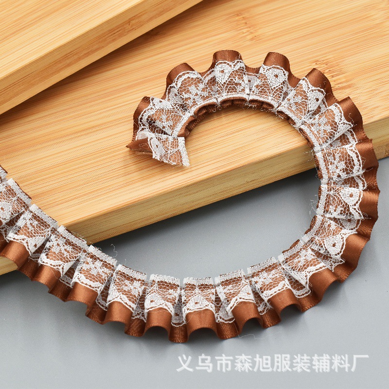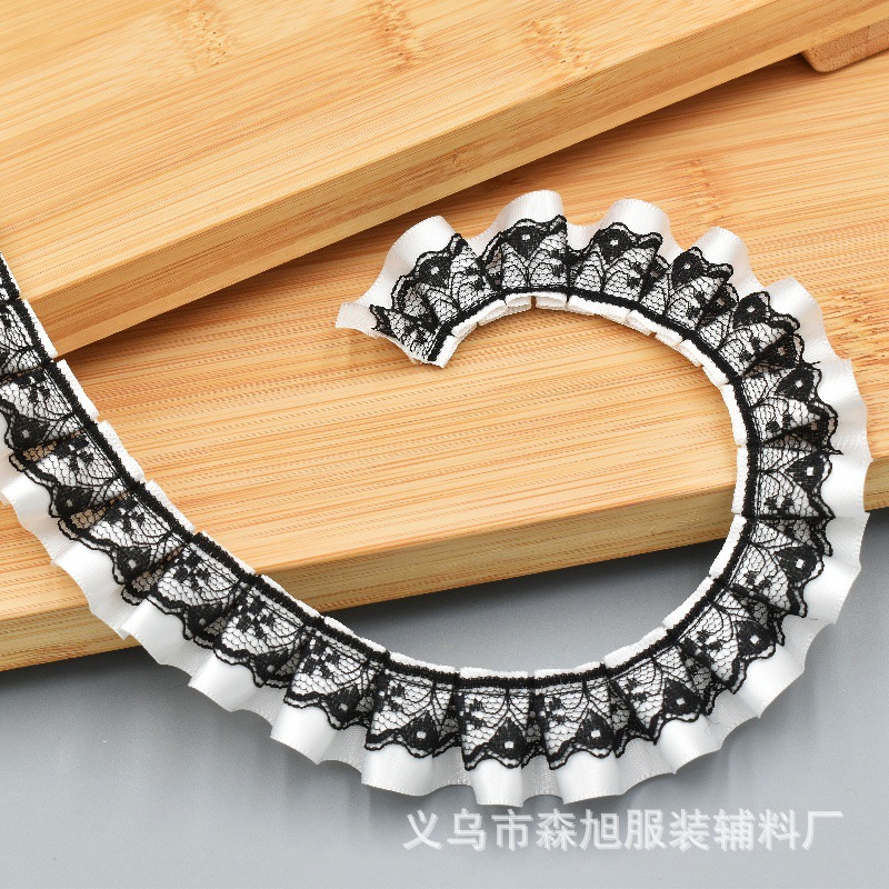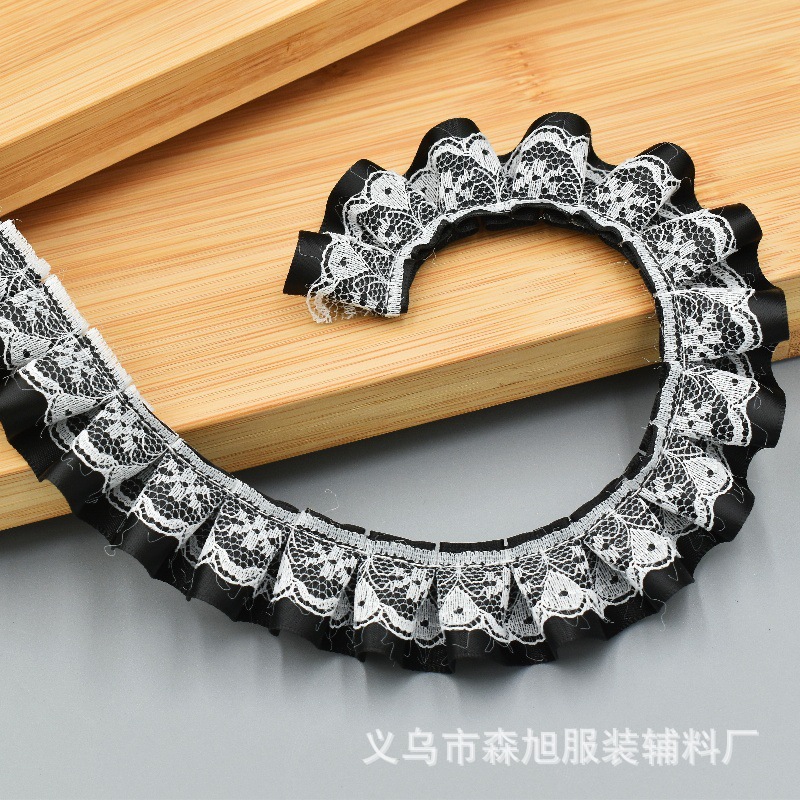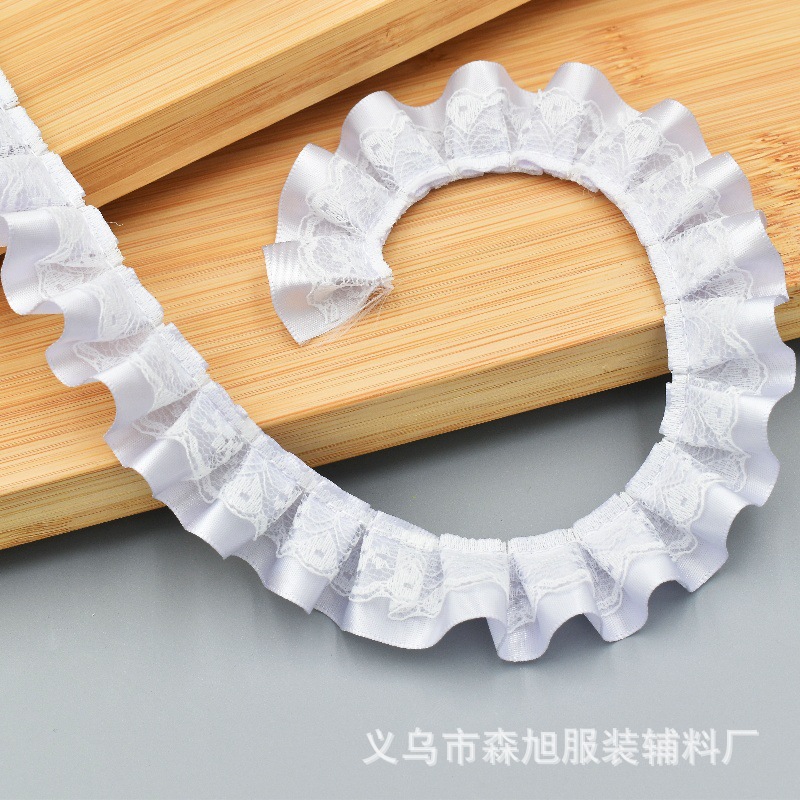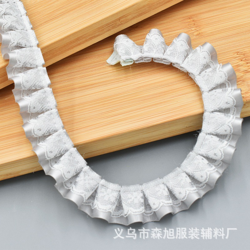 재고 2.5cm 폴리 에스테르 레이스 더블 주름 DIY 의류 액세서리 도매 할인 레이스스토어 가기