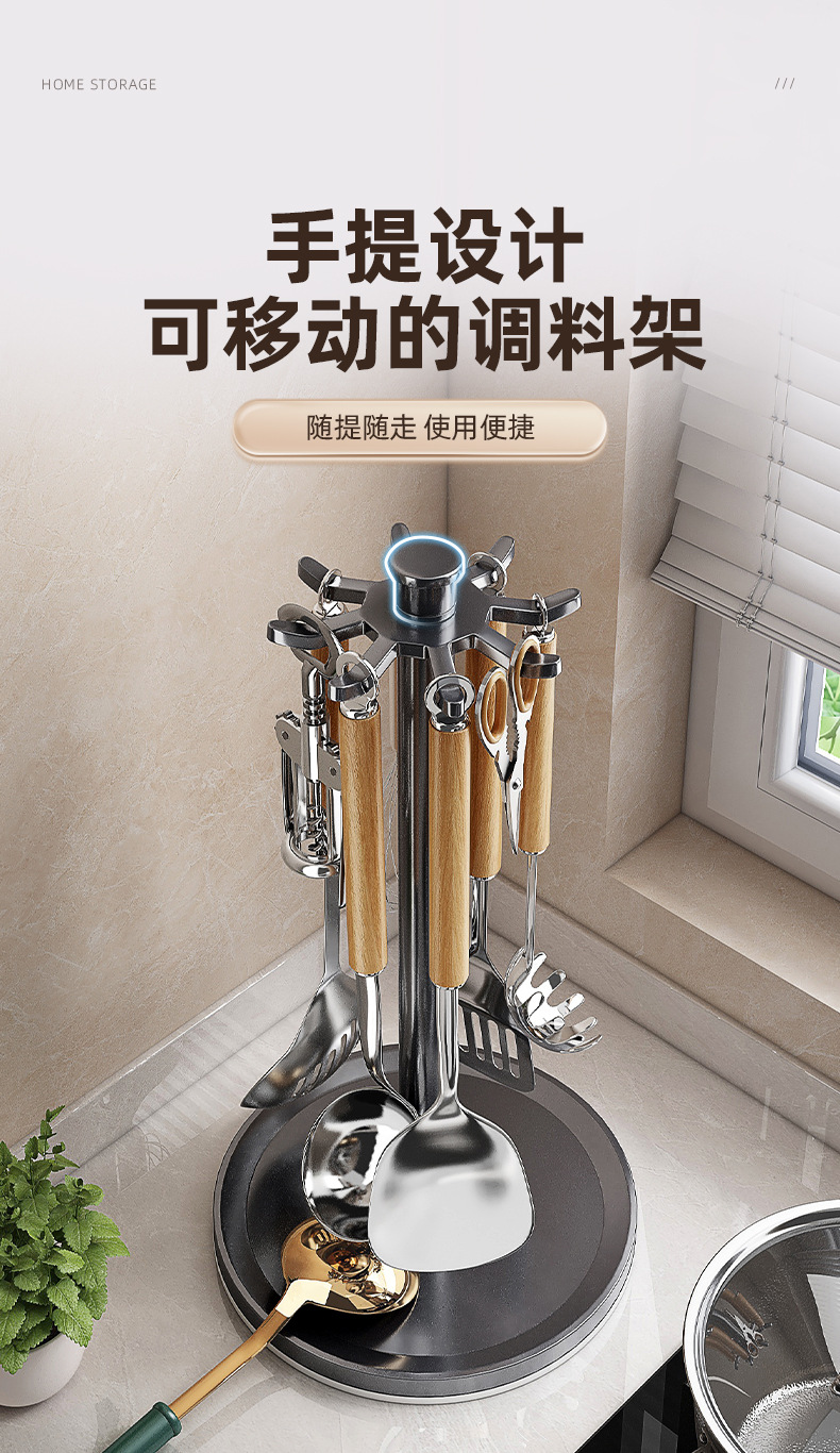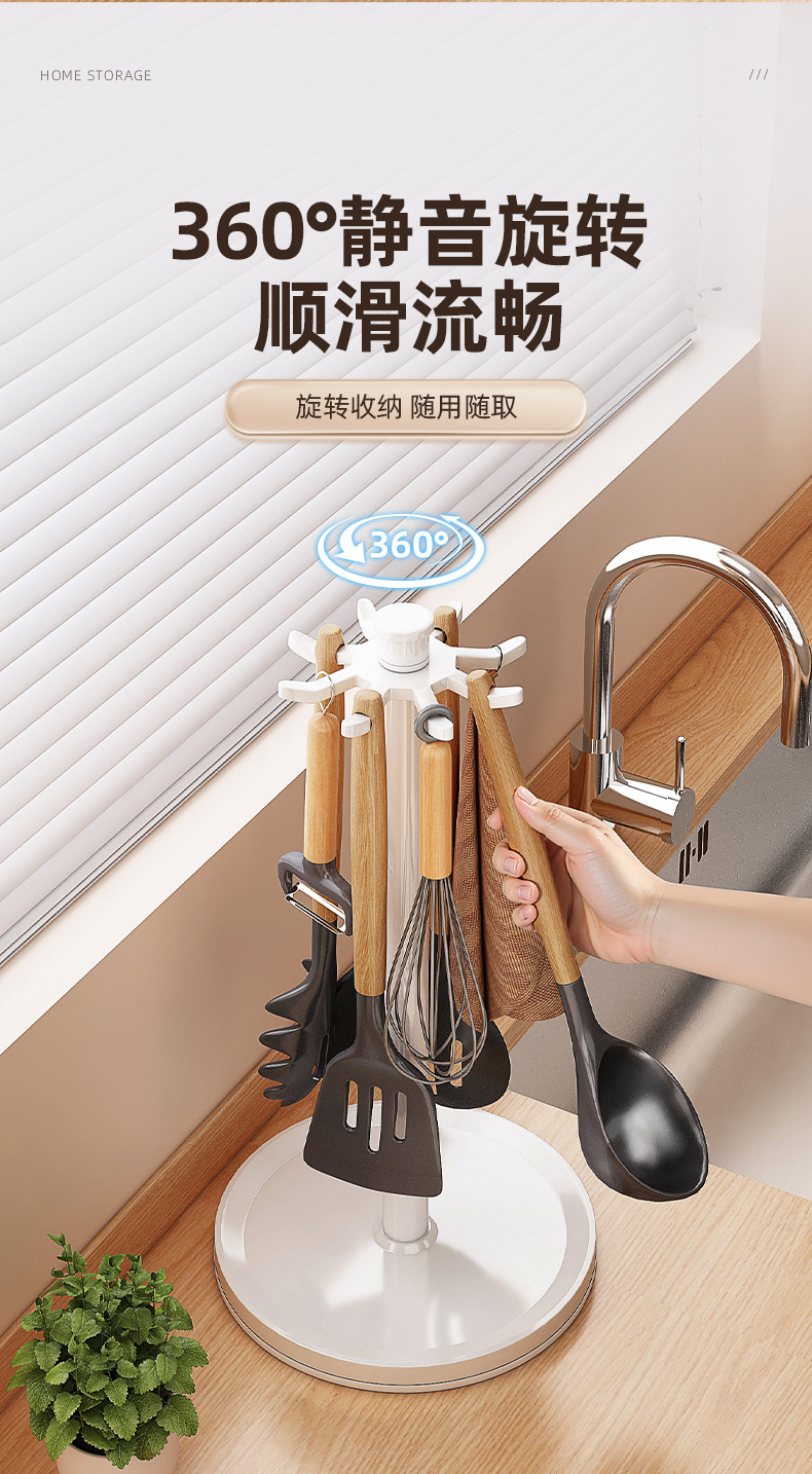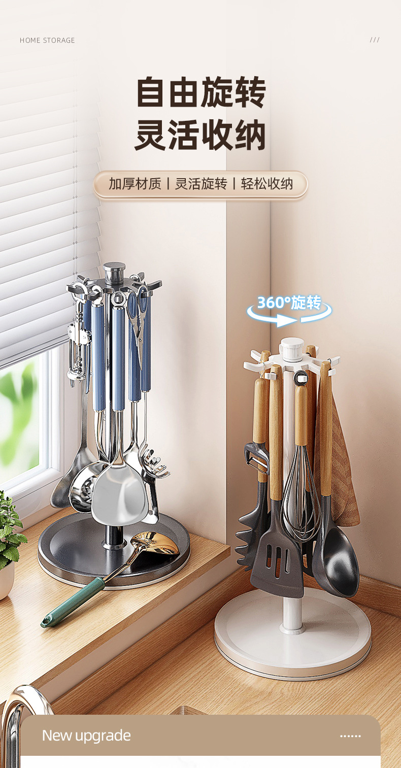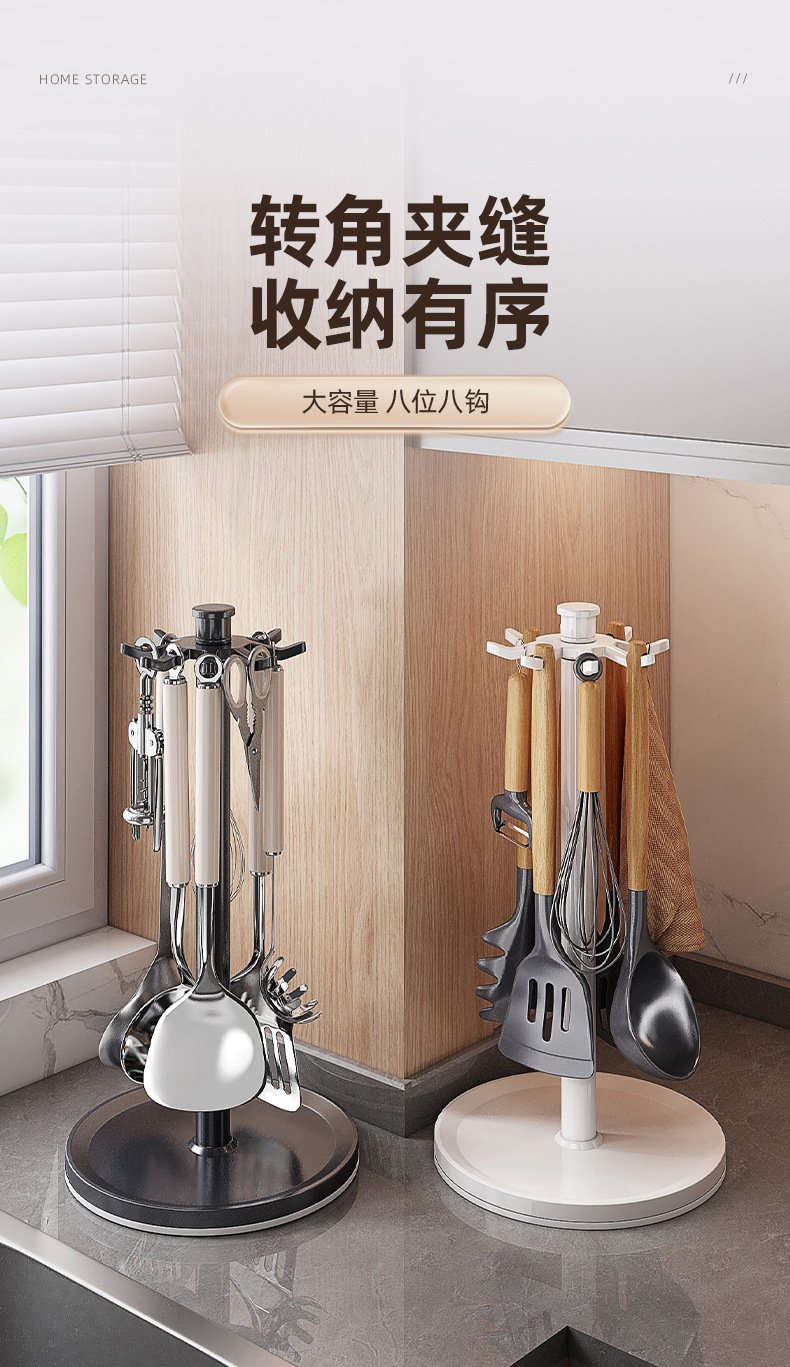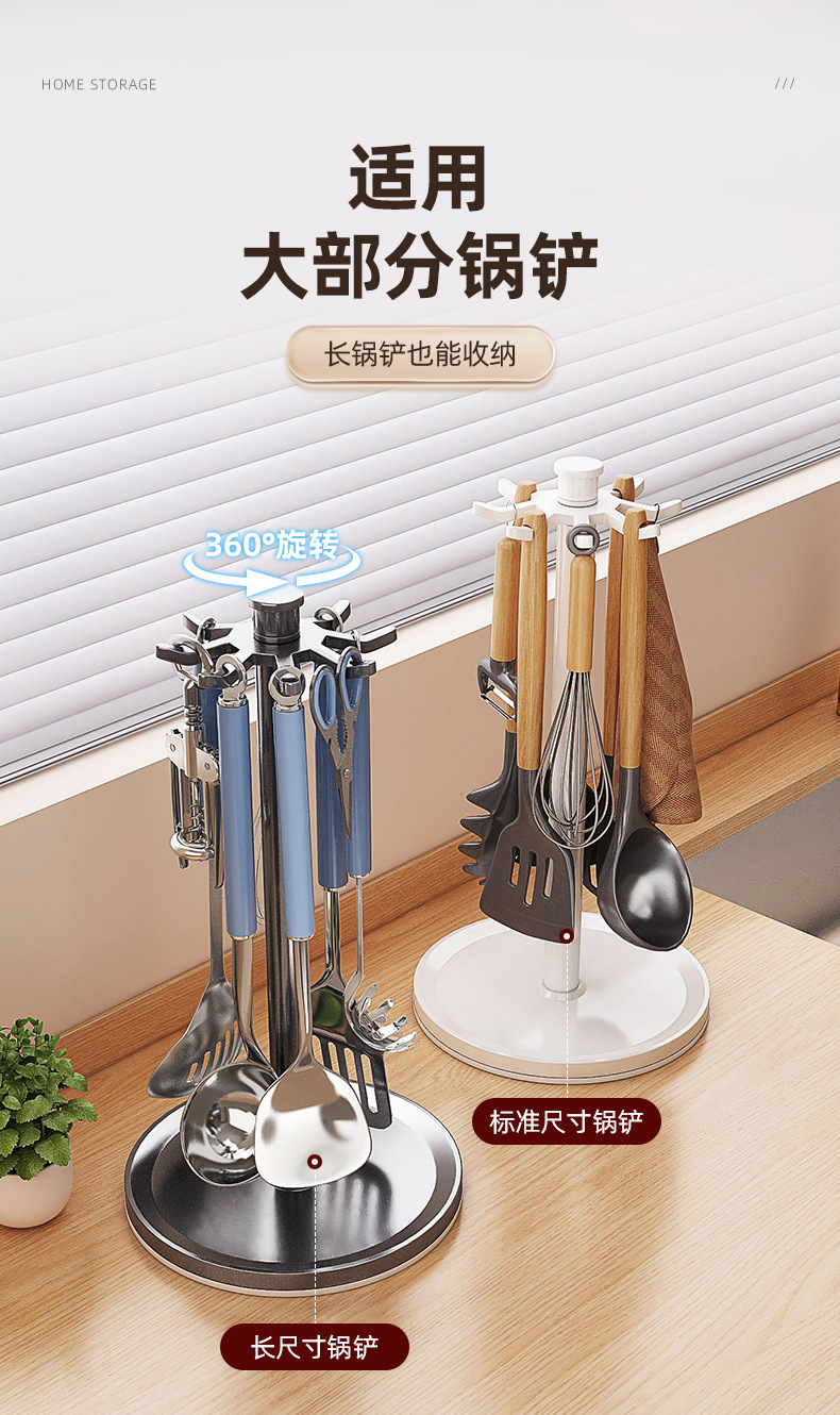 회전 냄비 삽 랙 카운터 탑 가정용 주방 후크 스토리지 랙 교수형 스푼 삽 주방용품 스토리지 랙 다기능스토어 가기