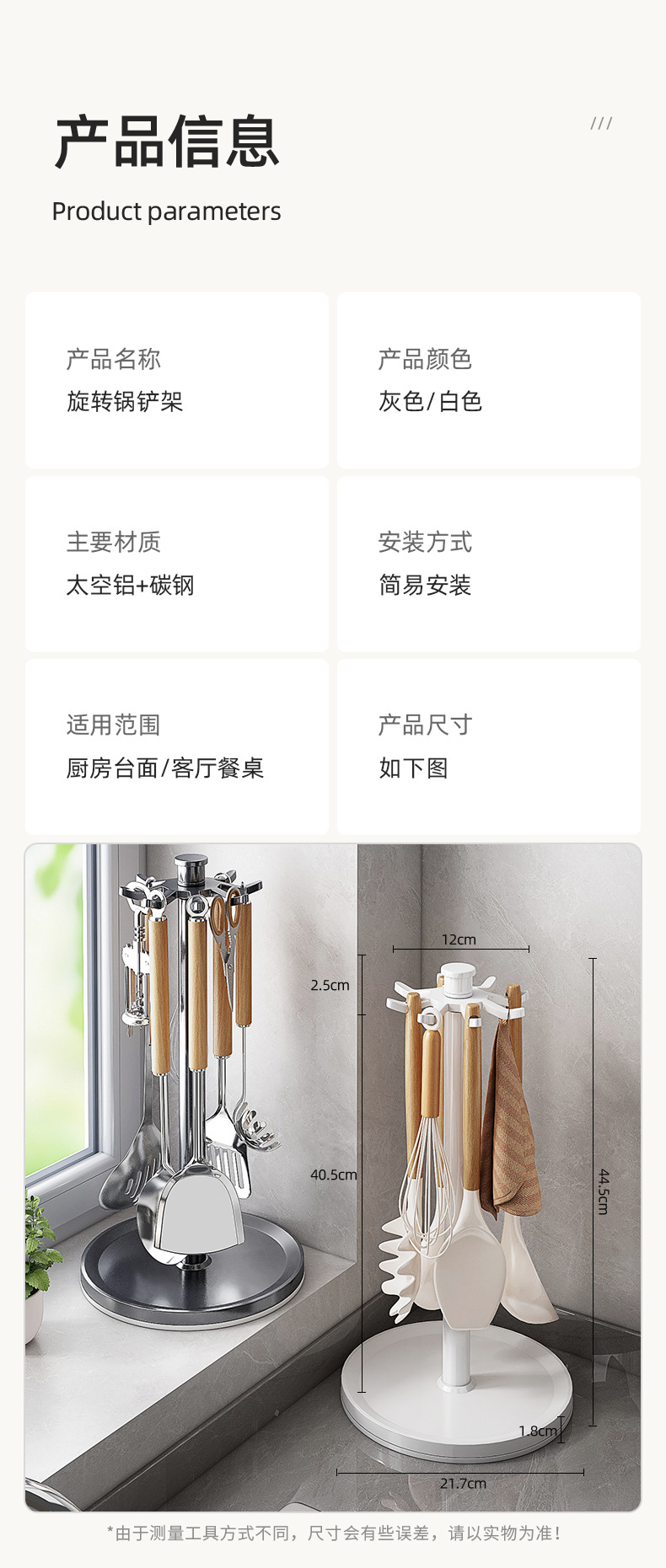 • 크림 화이트/스페이스 알루미늄 회전 8 후크 주걱 홀더 [물받이가 있는 대용량]
