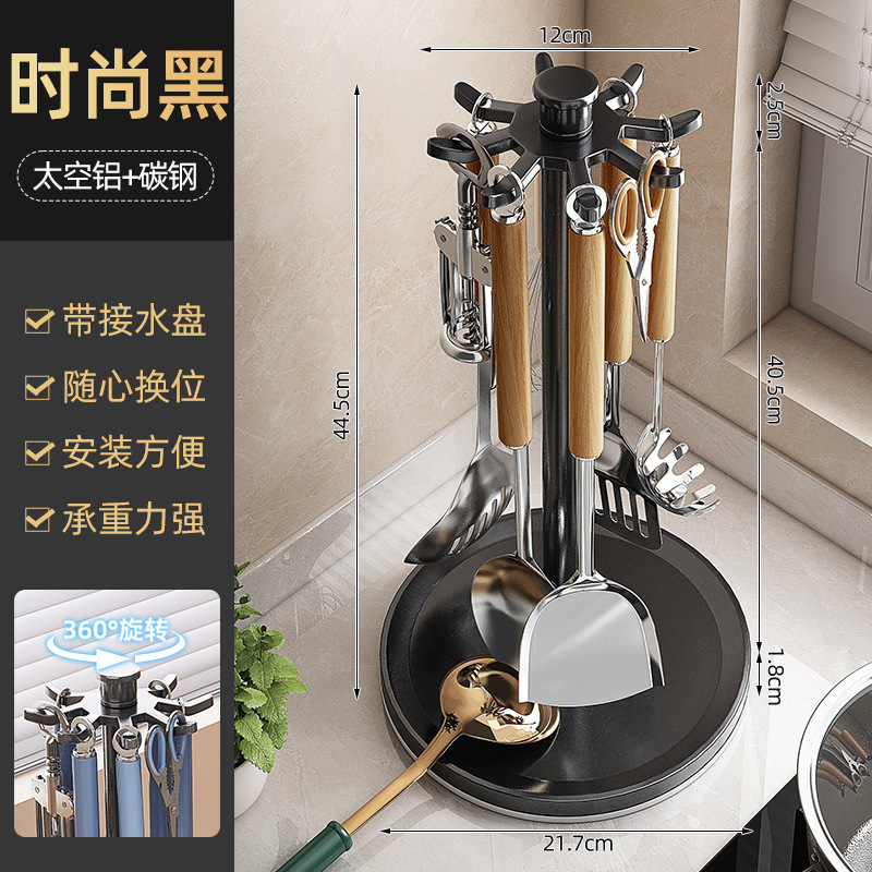 • 패셔너블한 블랙/스페이스 알루미늄 회전 8 후크 주걱 홀더 [물받이가 있는 대용량]