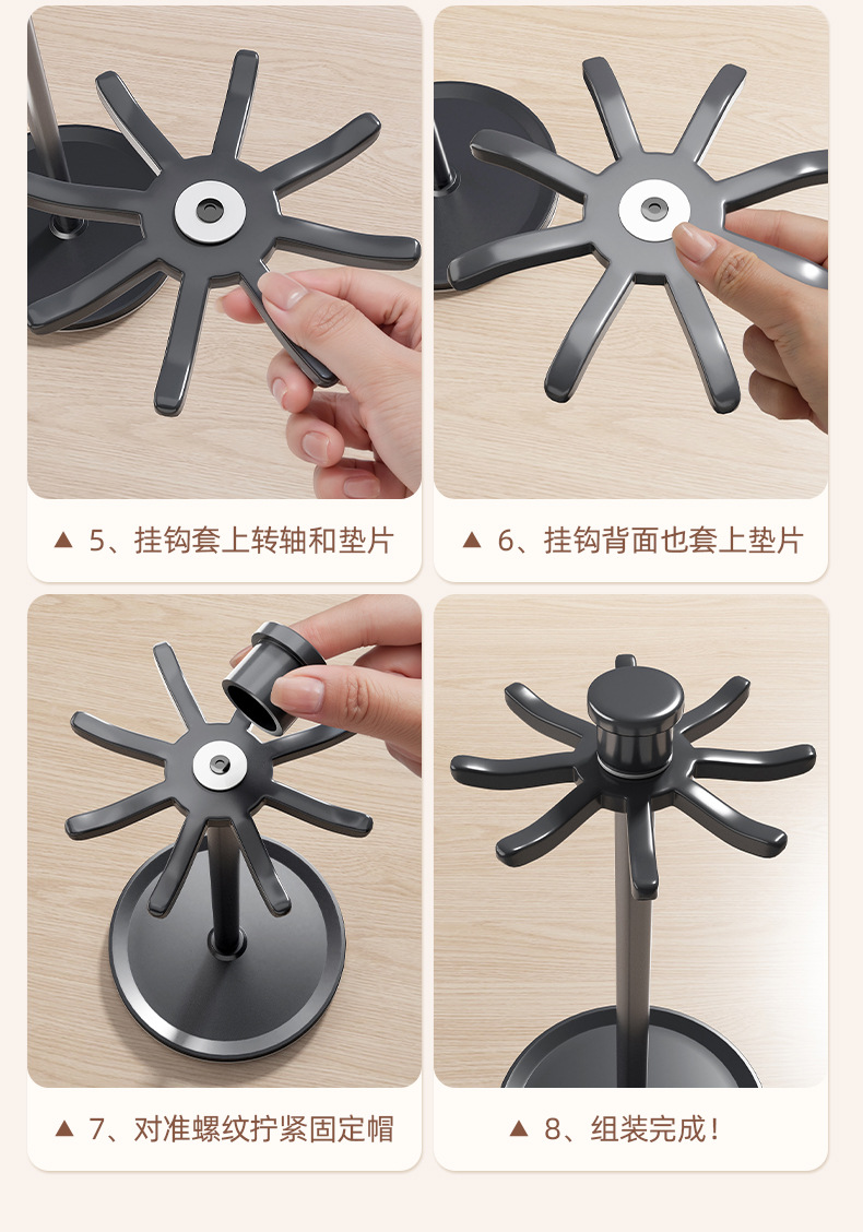 • 건그레이/스페이스 알루미늄 회전 8후크 주걱 홀더 [물받이 포함 대용량]