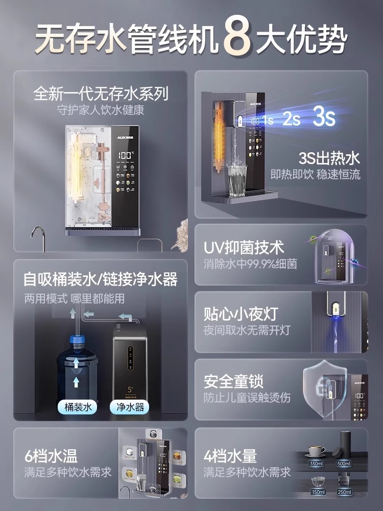 오크스 파이프라인 정수기 벽걸이형 가정용 정수기 즉석 온수기 생수통용 2025년 신형