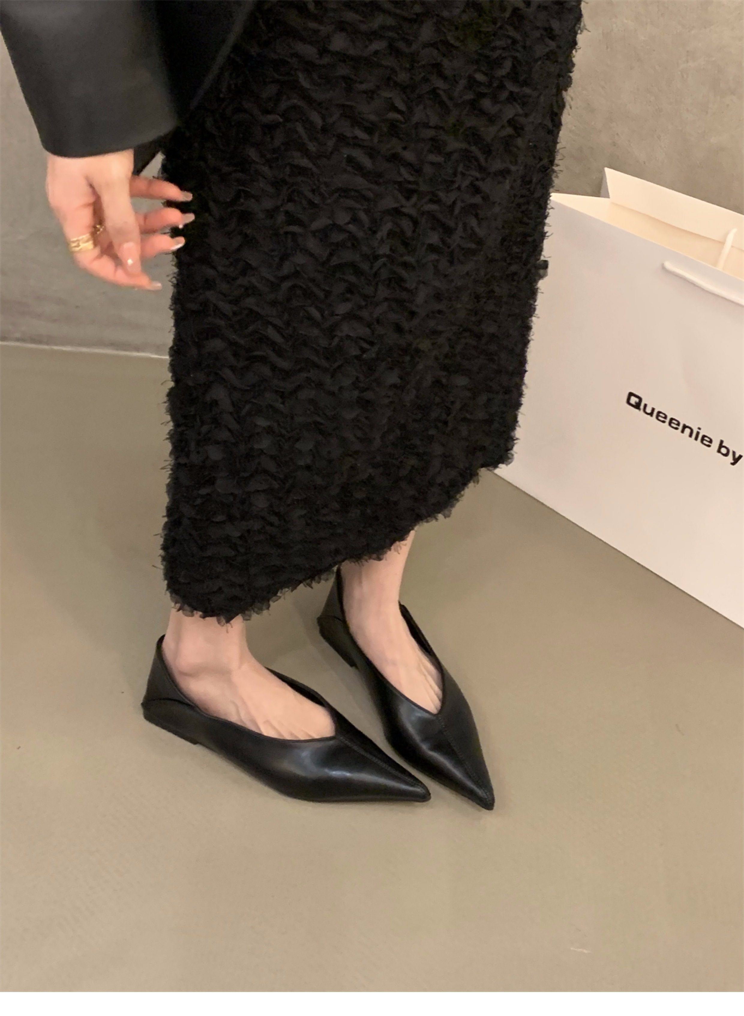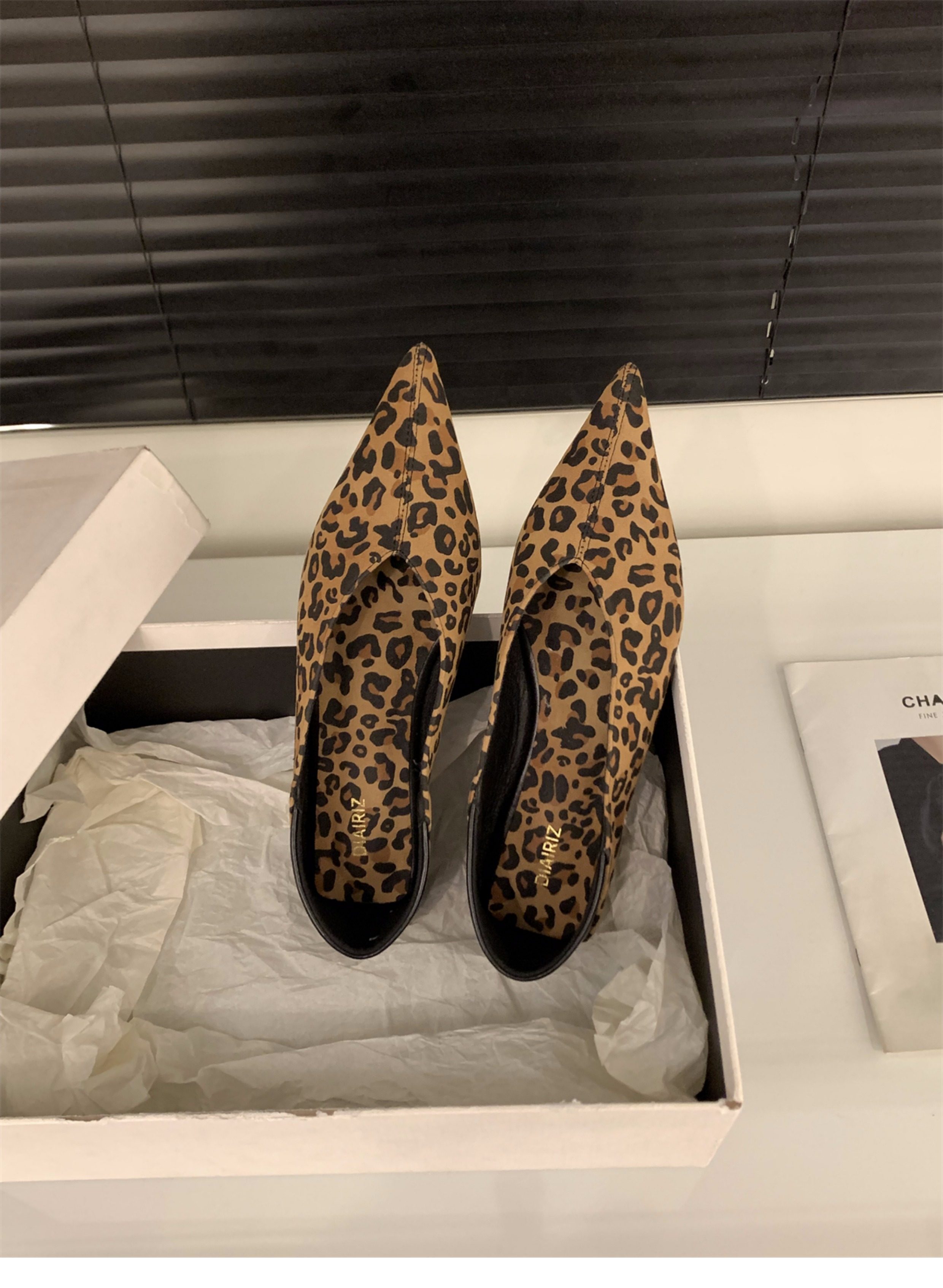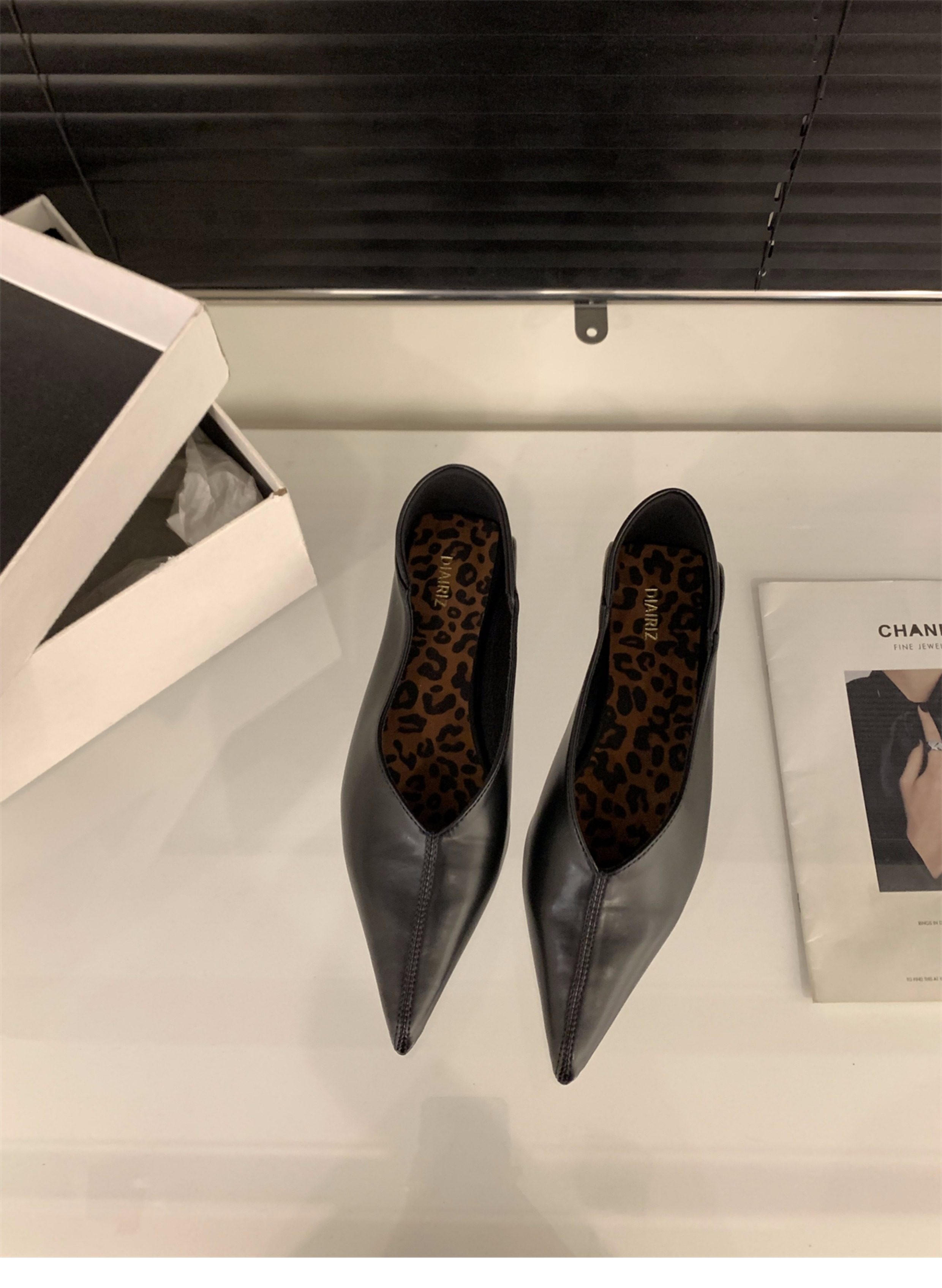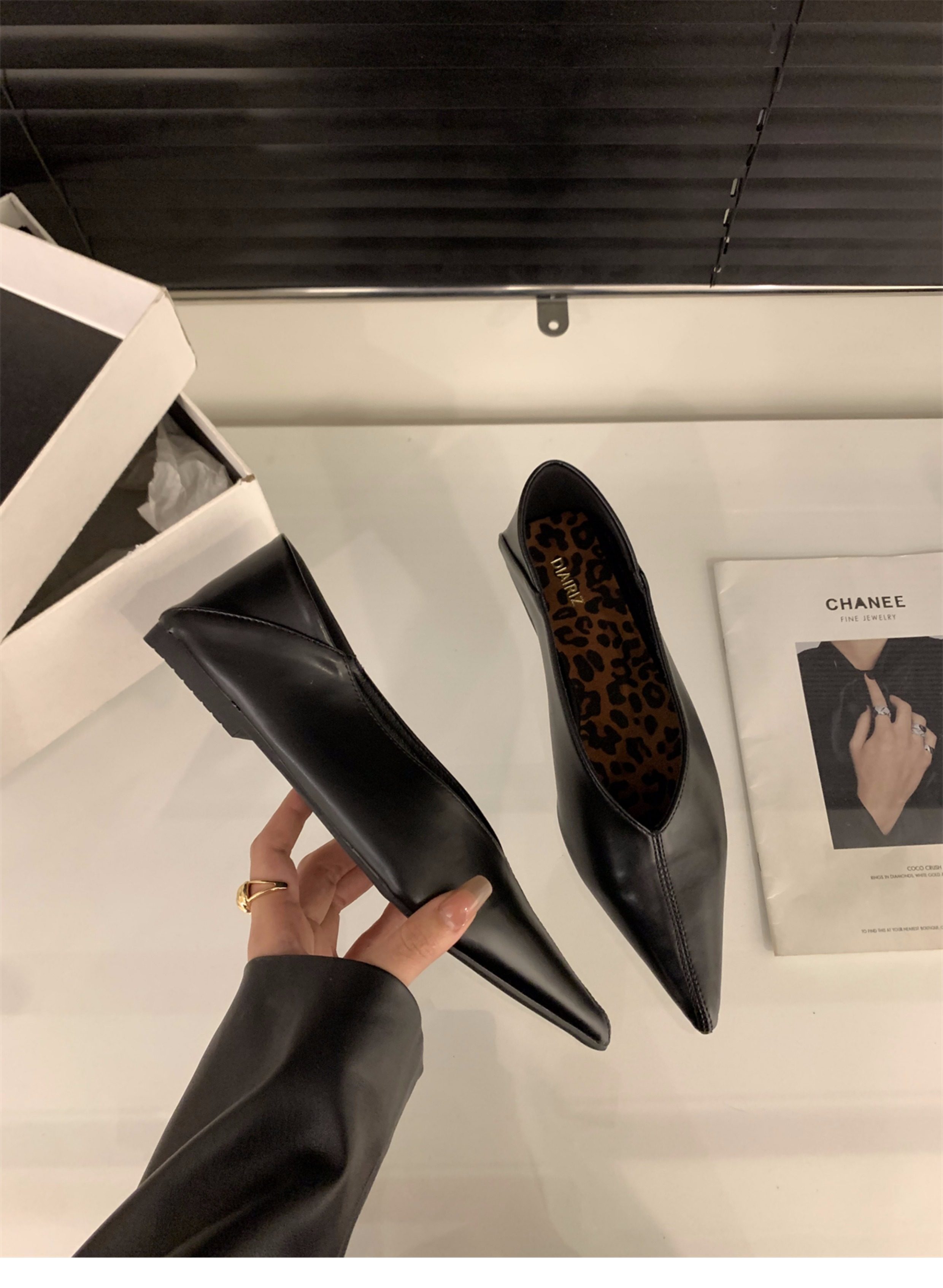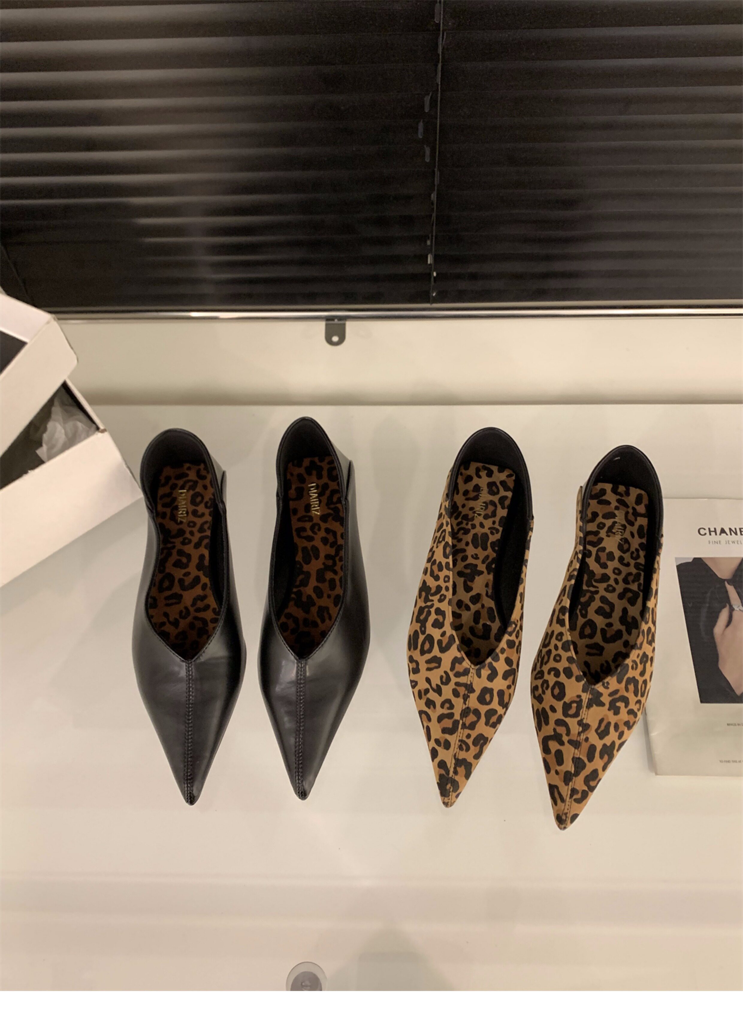 플랫 블랙 포인팅 발가락 신발 여성 신발 2025 새로운 봄 빈티지 스웨이드 프랑스 레오파드 무늬 얕은 입 신발스토어 가기