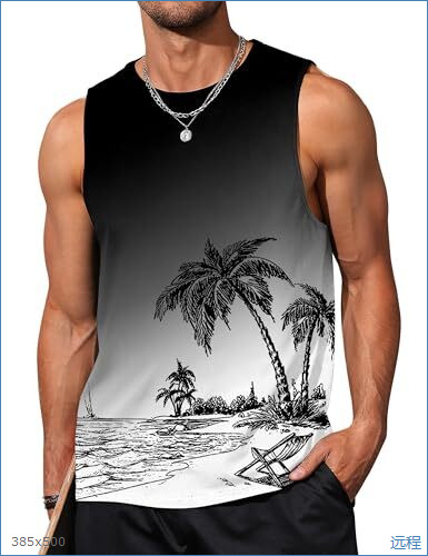2025 국경 여름 해변 휴가 새로운 팜 패턴 근육 운동 캐주얼 스타일 남성 조끼