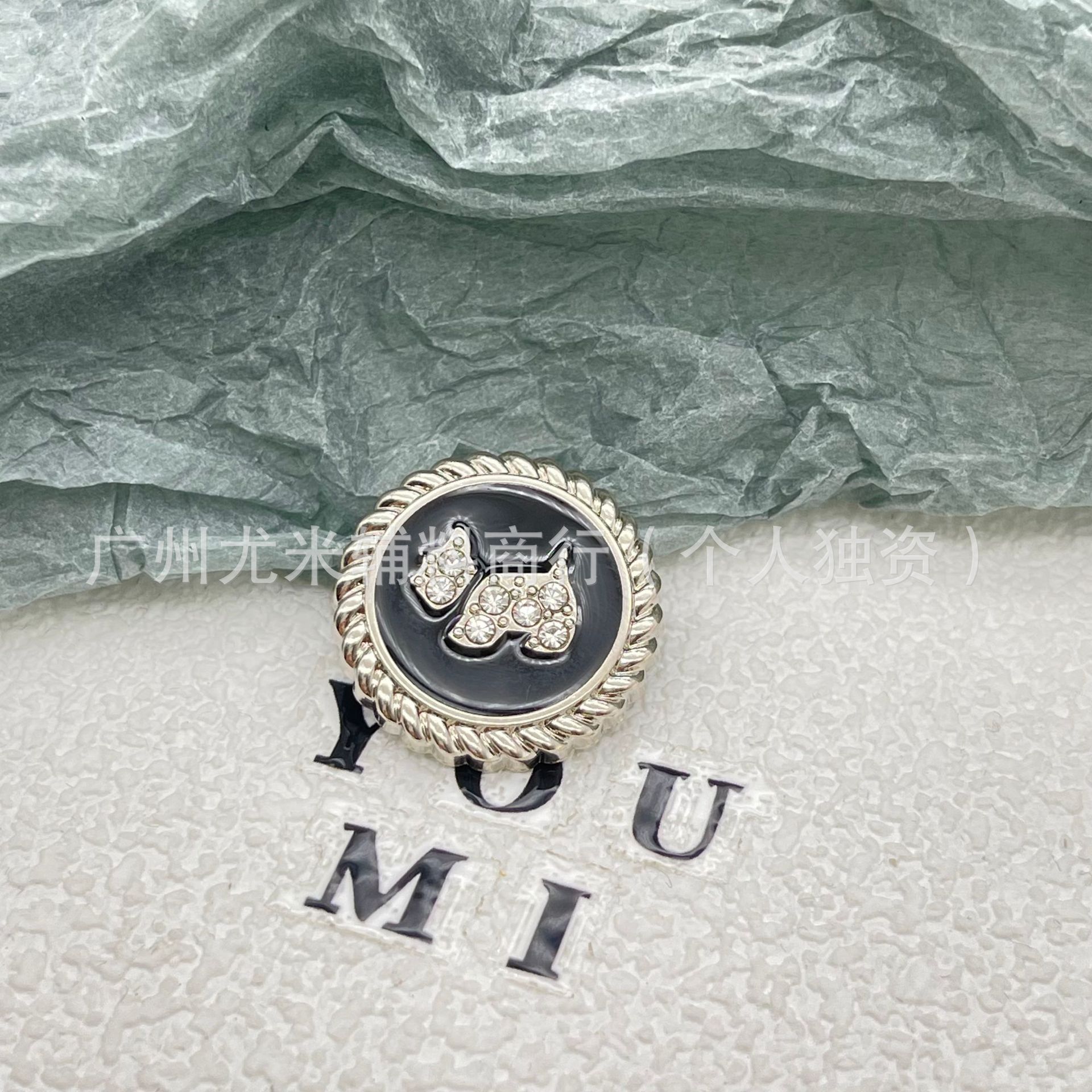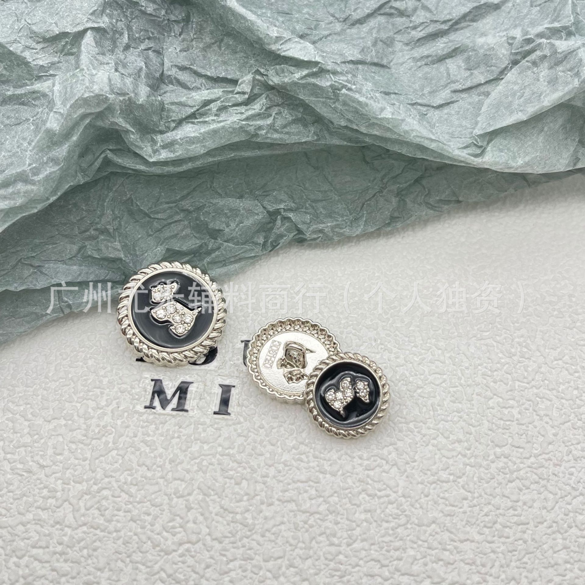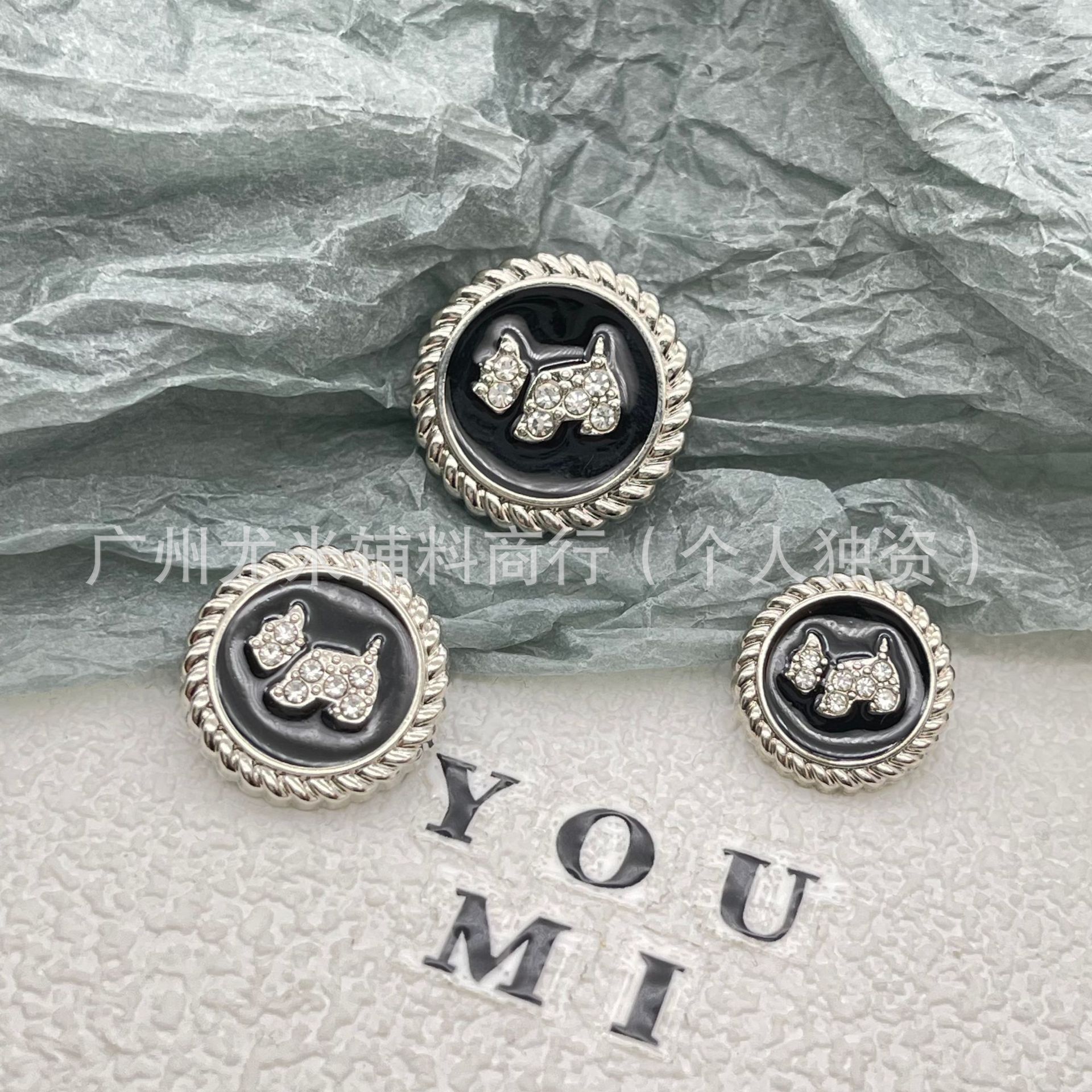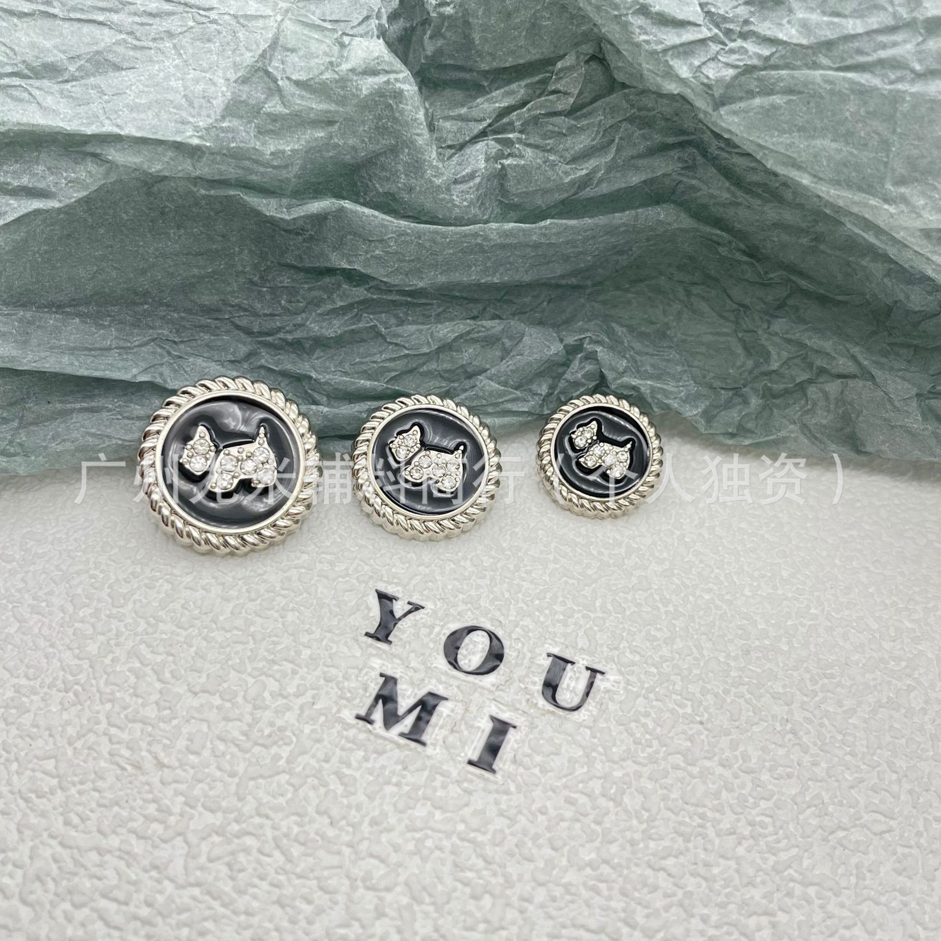 실버 강아지 드롭 오일 포인트 다이아몬드 버튼 작은 향기로운 니트 아동복 카디건 버튼 모직 코트 손으로 꿰맨 장식 버튼