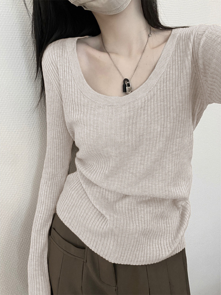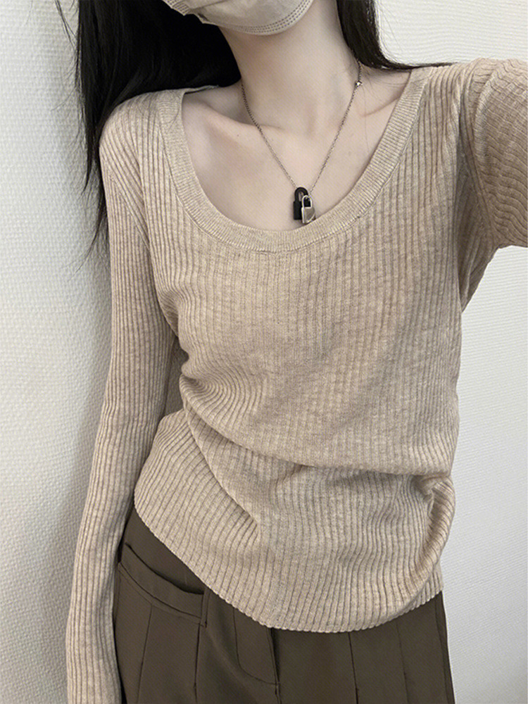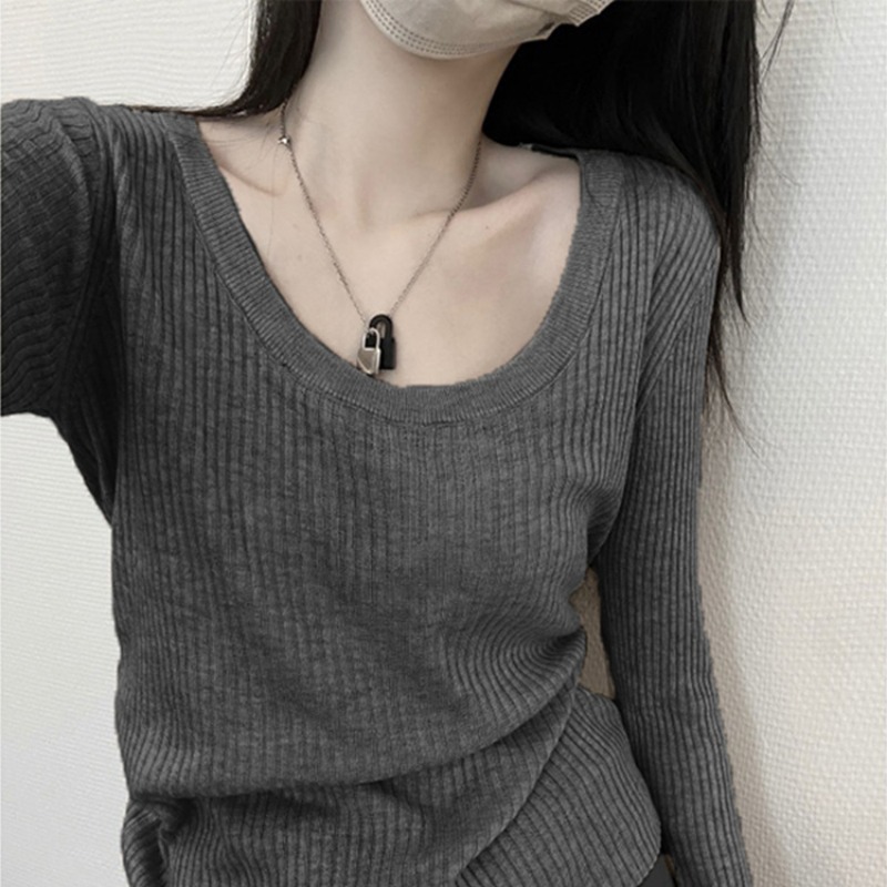 봄 2025 새로운 긴 소매 니트 탑 낮은 칼라 베이스 셔츠 여성의 가을 겨울 인기 작은 셔츠 올해스토어 가기