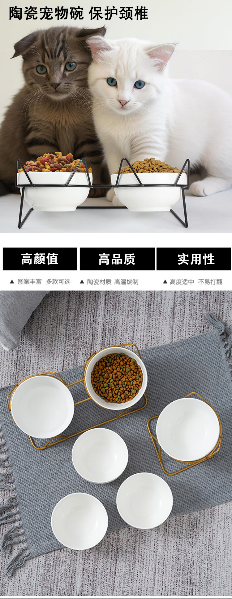 아마존 애완 동물 그릇 개 그릇 통합 더블 그릇 고양이 밥 그릇 고양이 그릇 고양이 그릇 세라믹 팁 목 보호