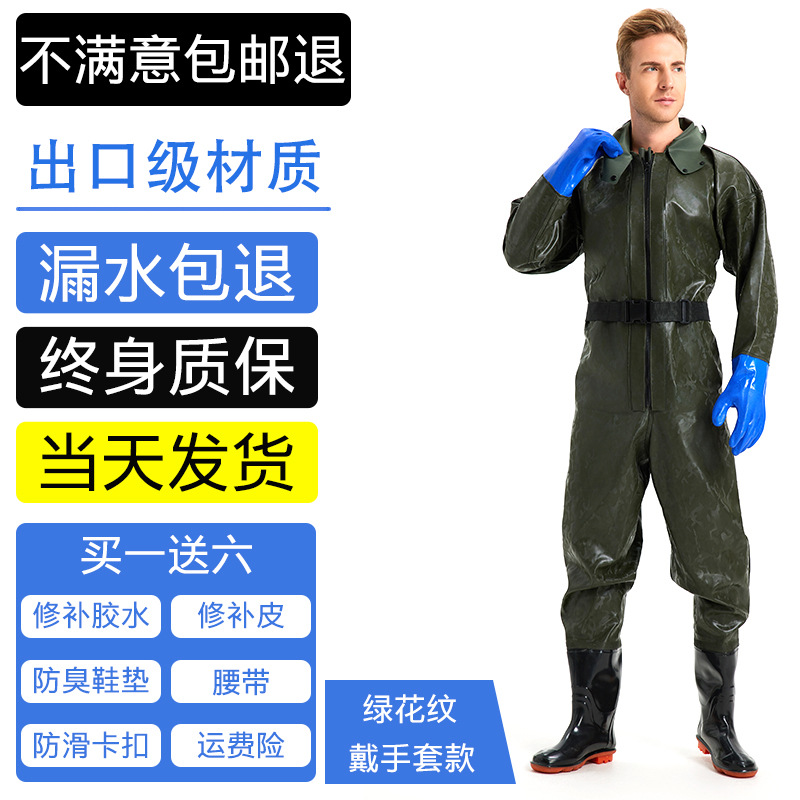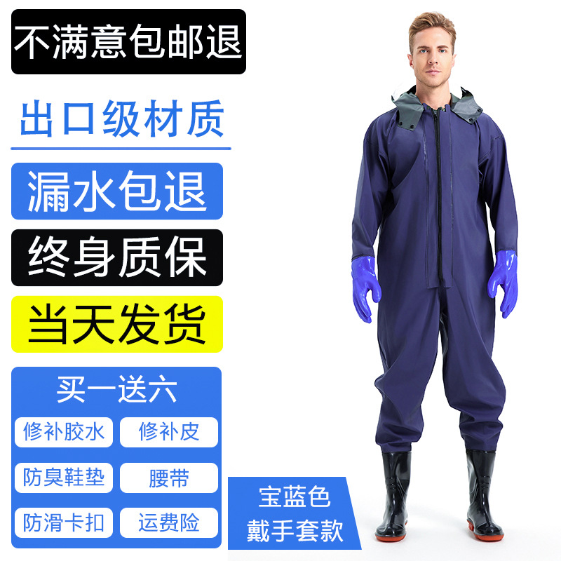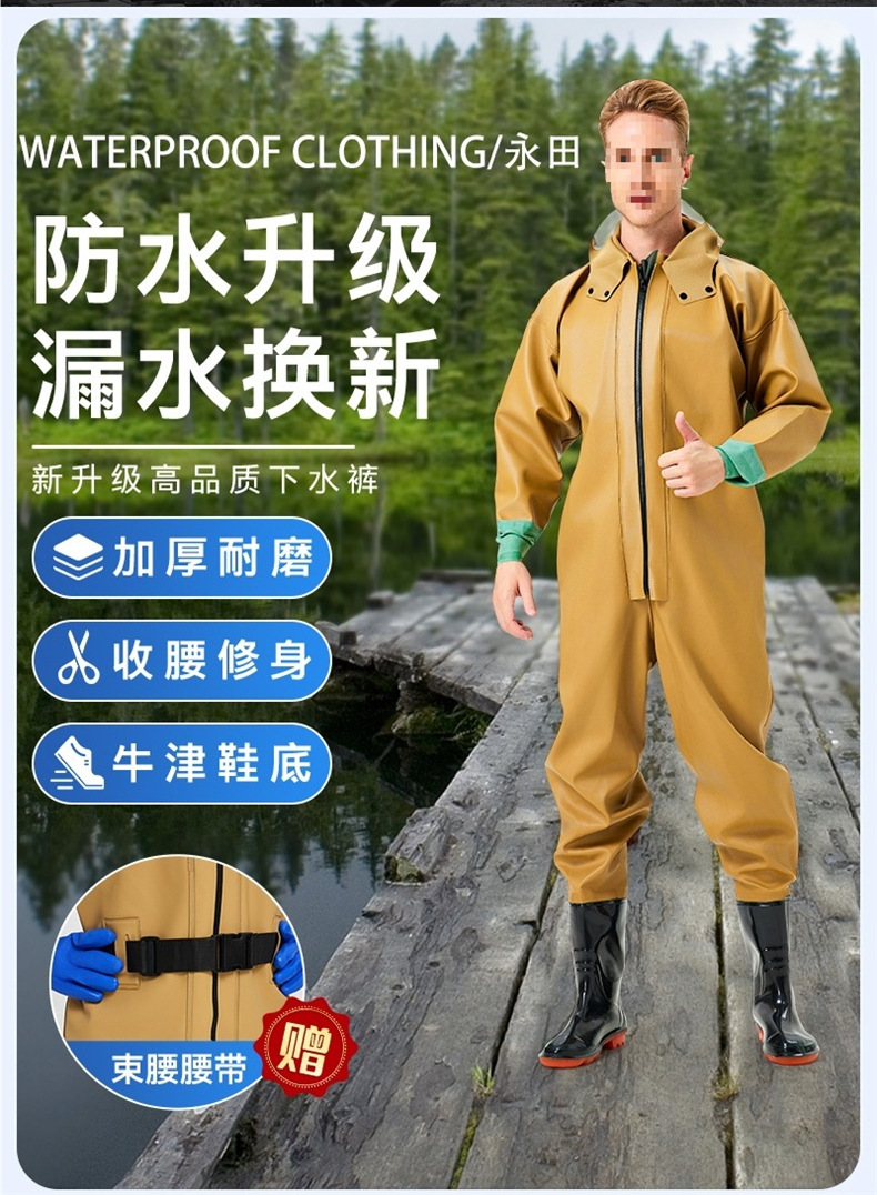 전신 두꺼운 방수 결합 된 물 바지 물고기 잡기 비 바지 물 신발 완전히 닫힌 연꽃 뿌리 파기 의류 비옷 통기성 물 포크 바지