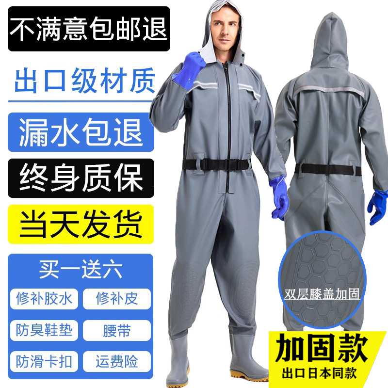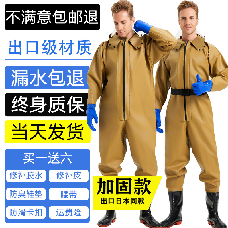 전신 두꺼운 방수 결합 된 물 바지 물고기 잡기 비 바지 물 신발 완전히 닫힌 연꽃 뿌리 파기 의류 비옷 통기성 물 포크 바지스토어 가기