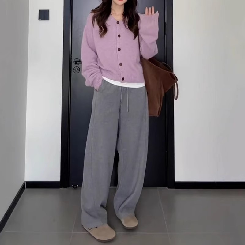 • 보라색 [레이지 스타일 초가을 의상/가디건 아우터/초가을 레이지 스타일/한국 스타일 초가을 탑/초가을 한국 스타일 탑/스웨터 가디건 여성 2024 새로운 스타일 아우터