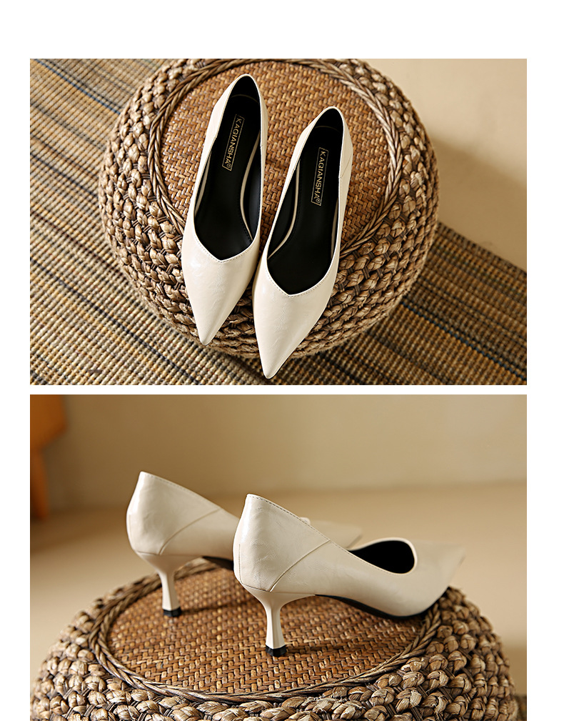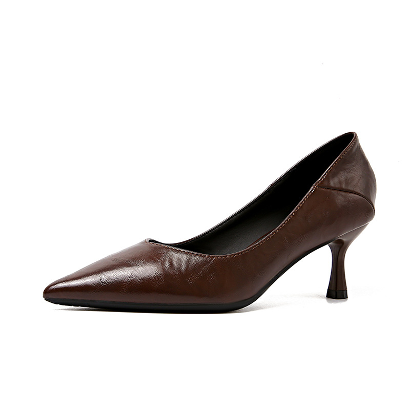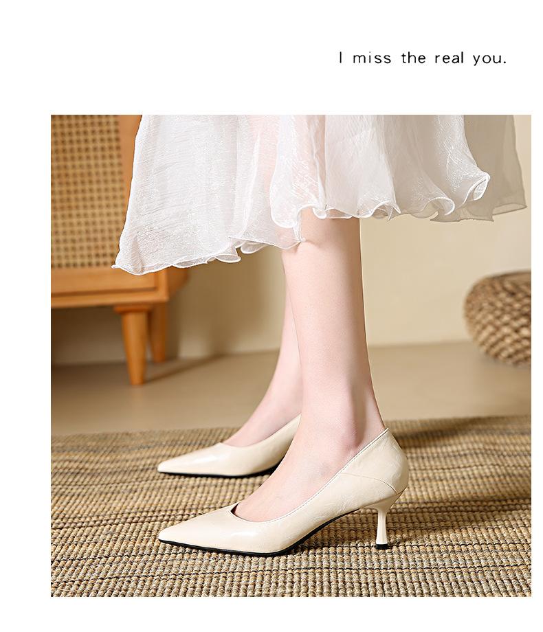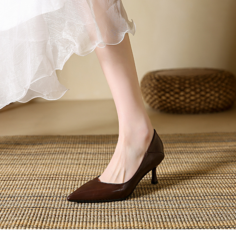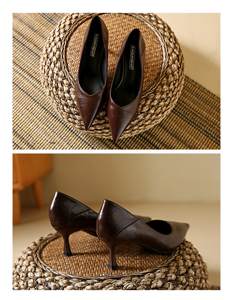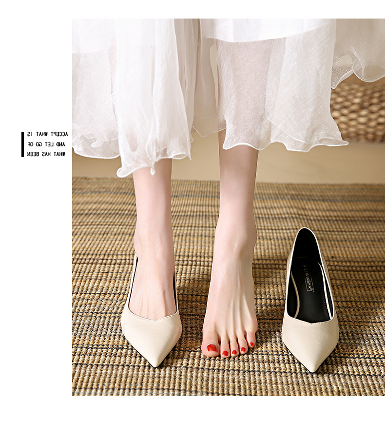2025년 봄 신상 여성용 얇은 굽 하이힐, 출퇴근 및 업무용 블랙 소프트 가죽 구두, 고급스러운 뾰족코 디자인스토어 가기