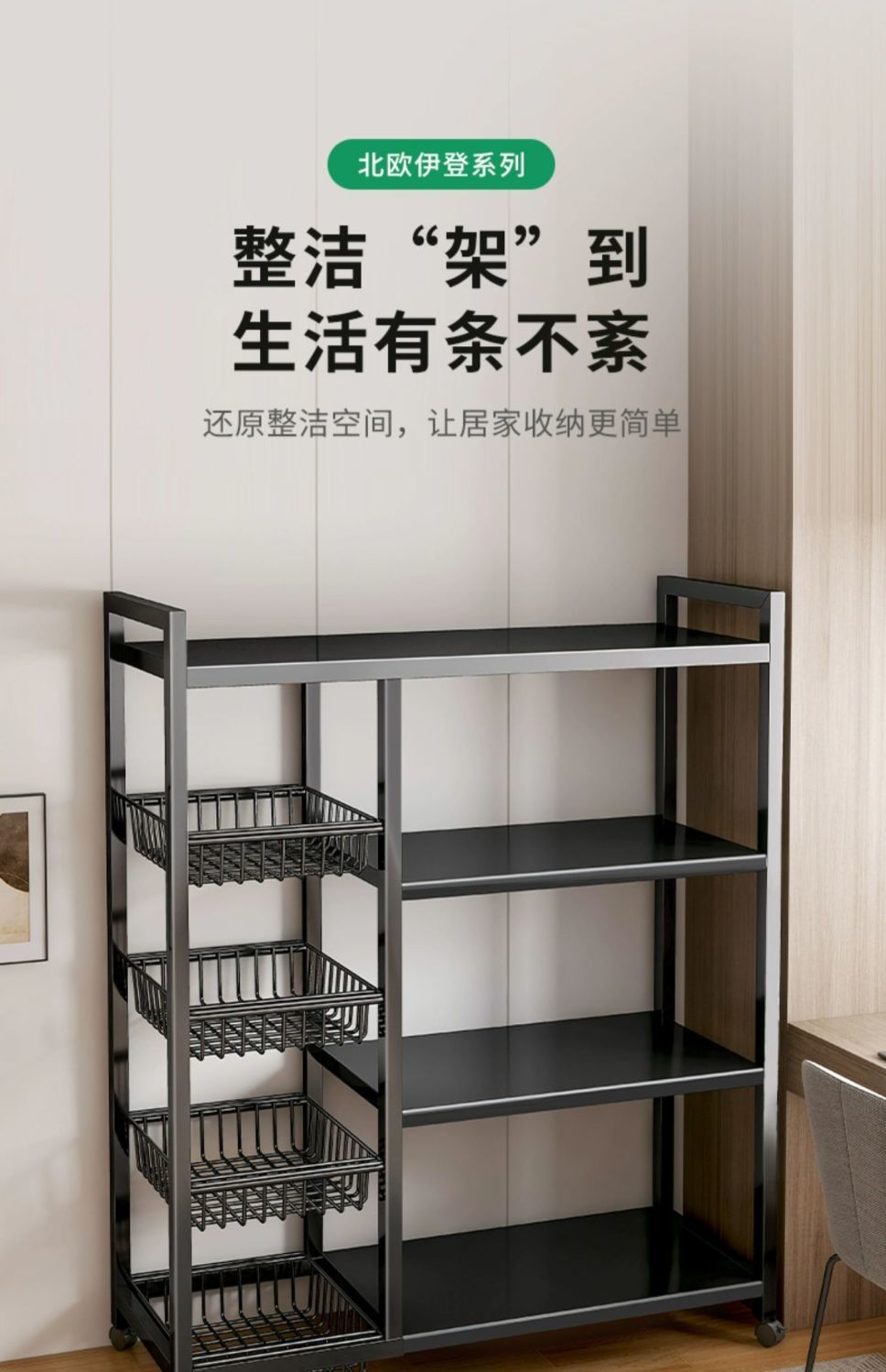 주방 보관 랙 바닥에 서있는 다층 냄비 야채 저장 랙 가정용 다기능 전자 레인지 오븐 벽 스낵 보관