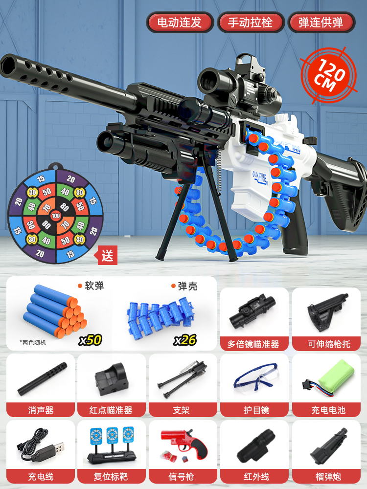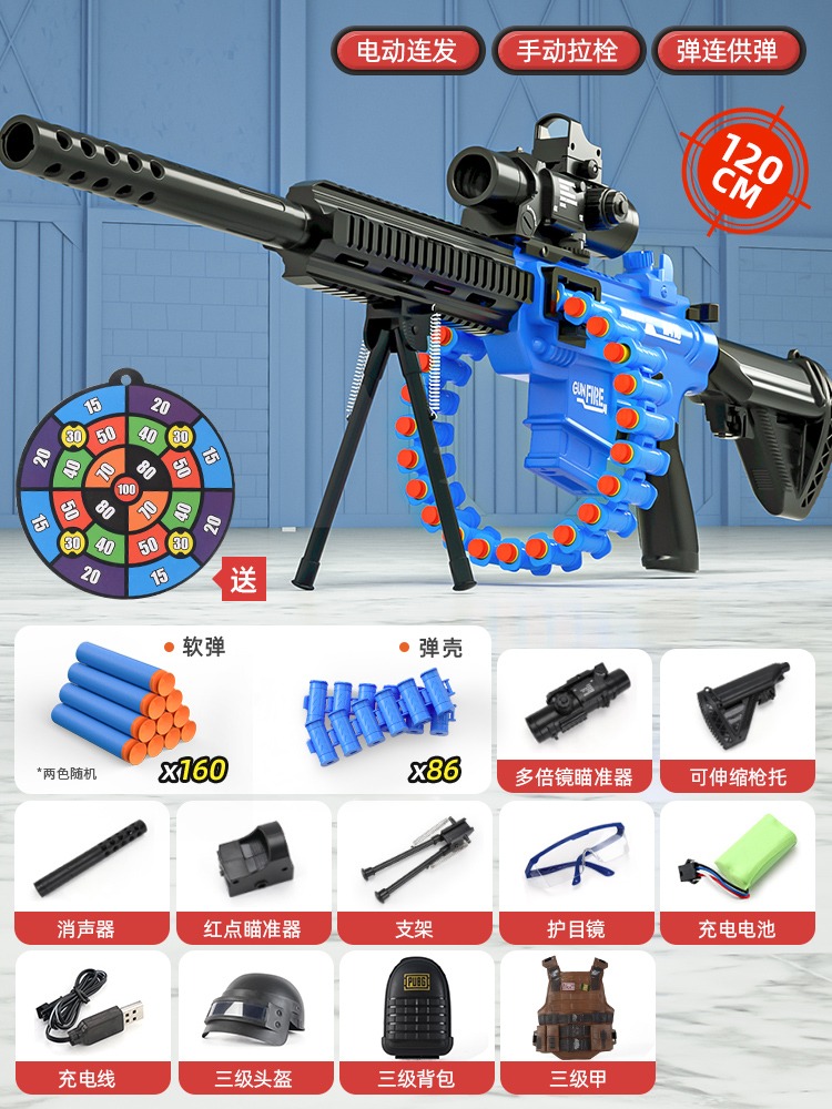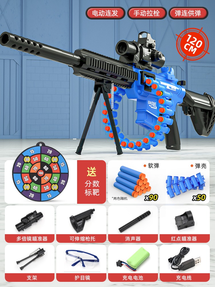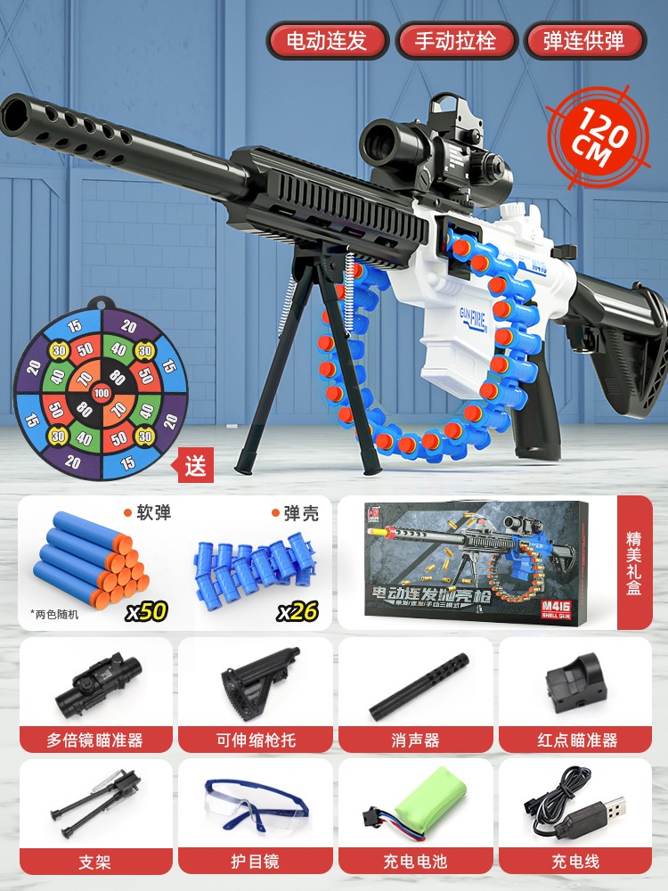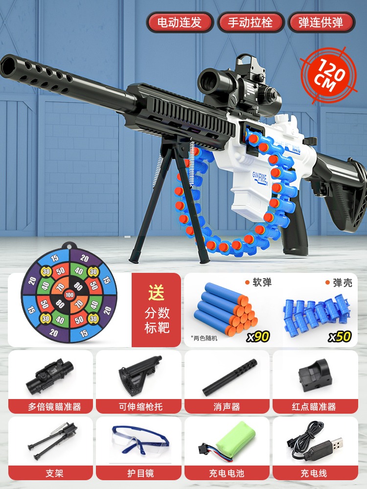 어린이 장난감 부드러운 총알 총 소년 1 세 시뮬레이션 전기 연속 기관총 소년 저격 소총