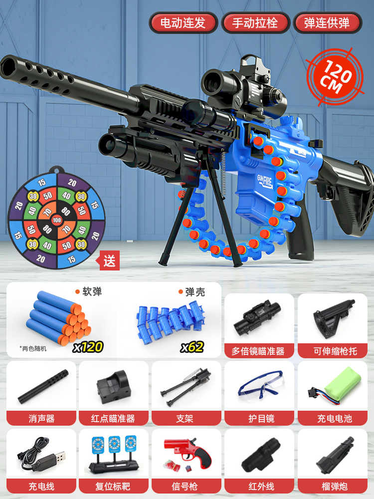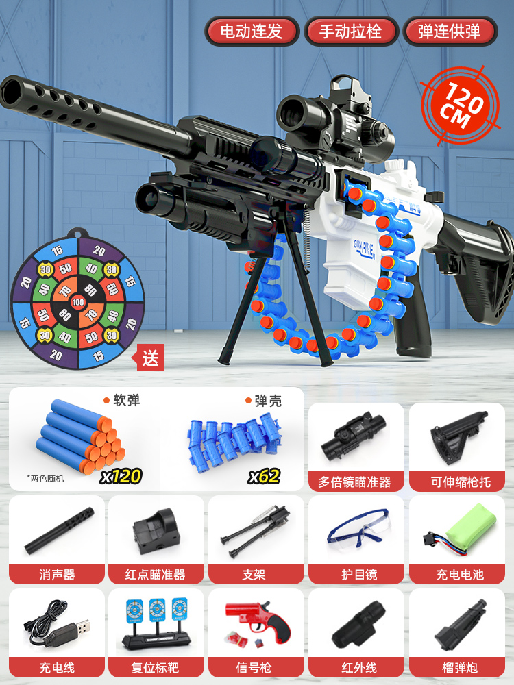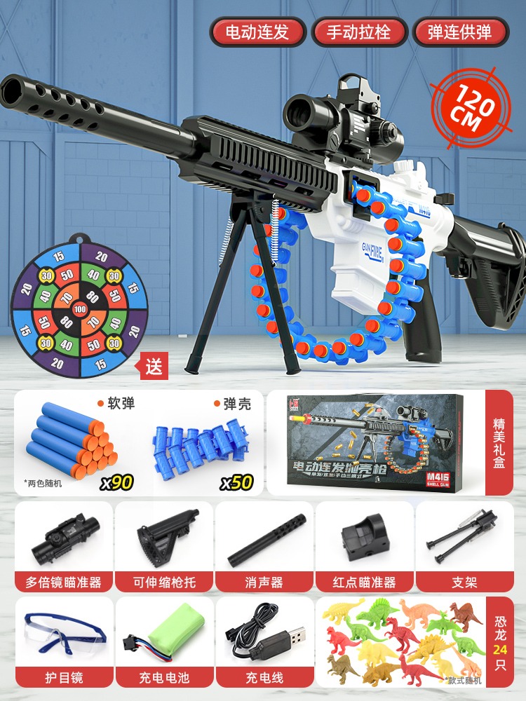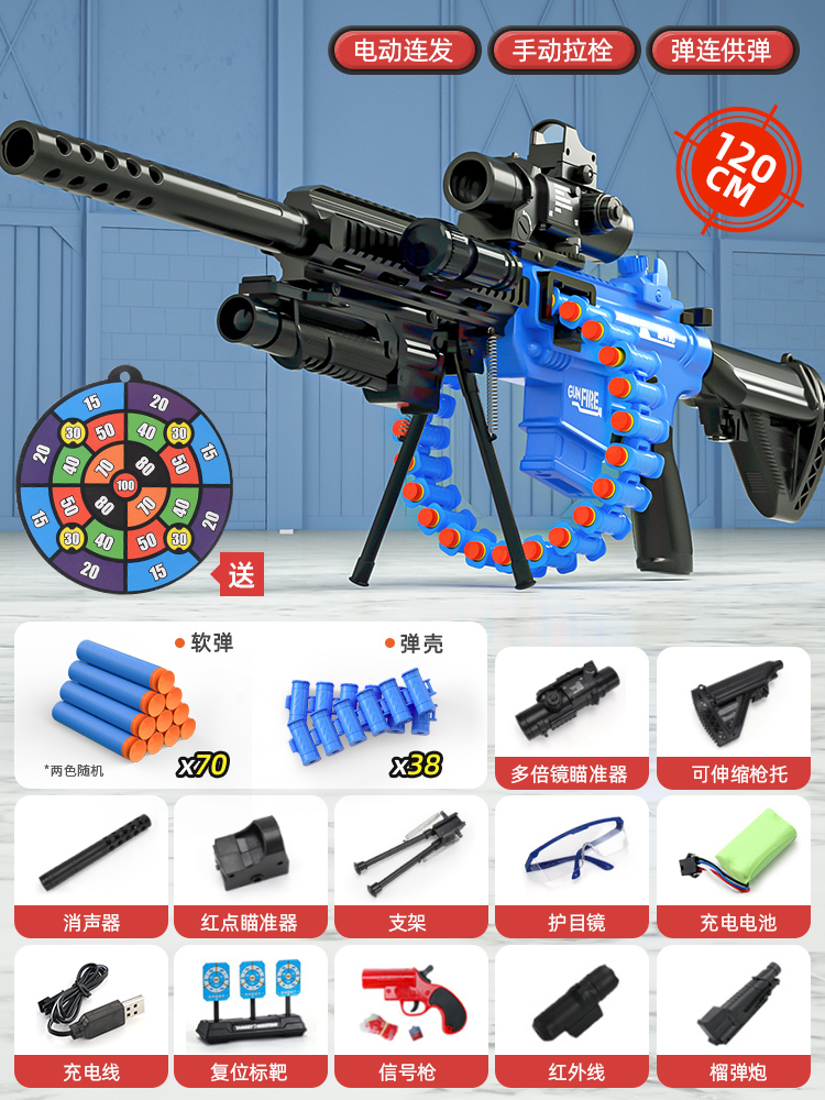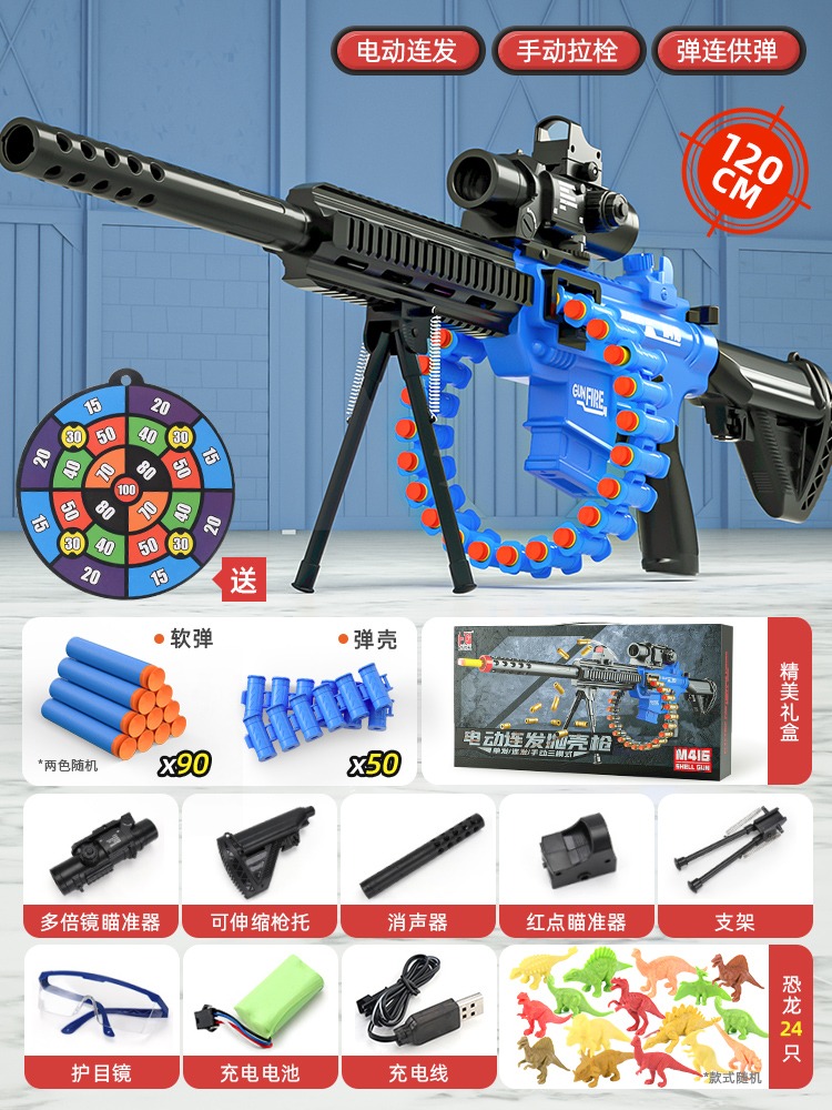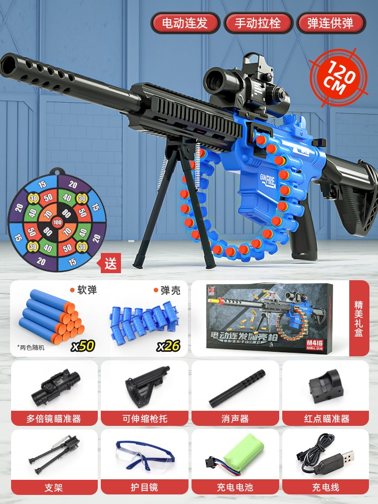 어린이 장난감 부드러운 총알 총 소년 1 세 시뮬레이션 전기 연속 기관총 소년 저격 소총