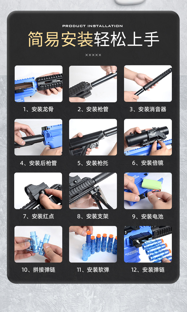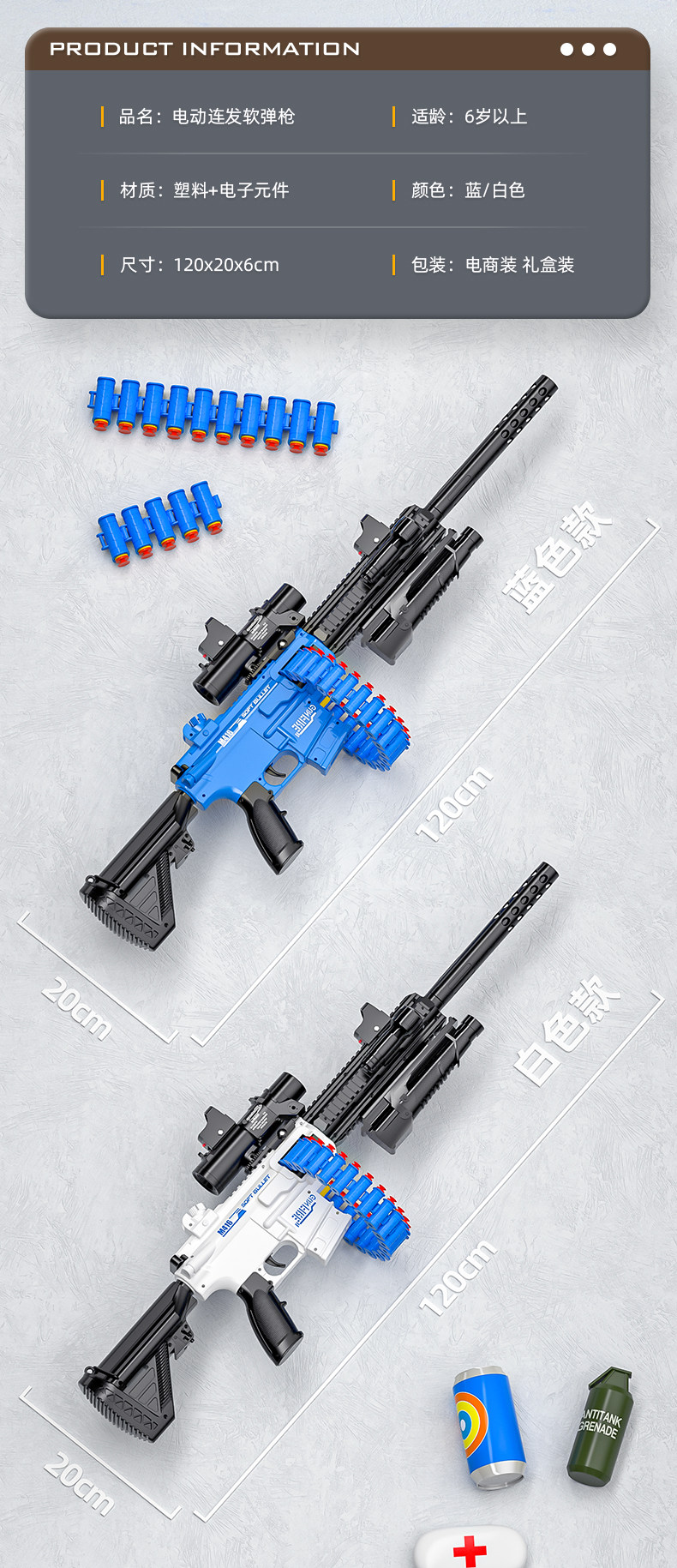 • 전동 듀얼 모드·선물 상자 모델 [폭탄 50개 + 총알 26개] 블루