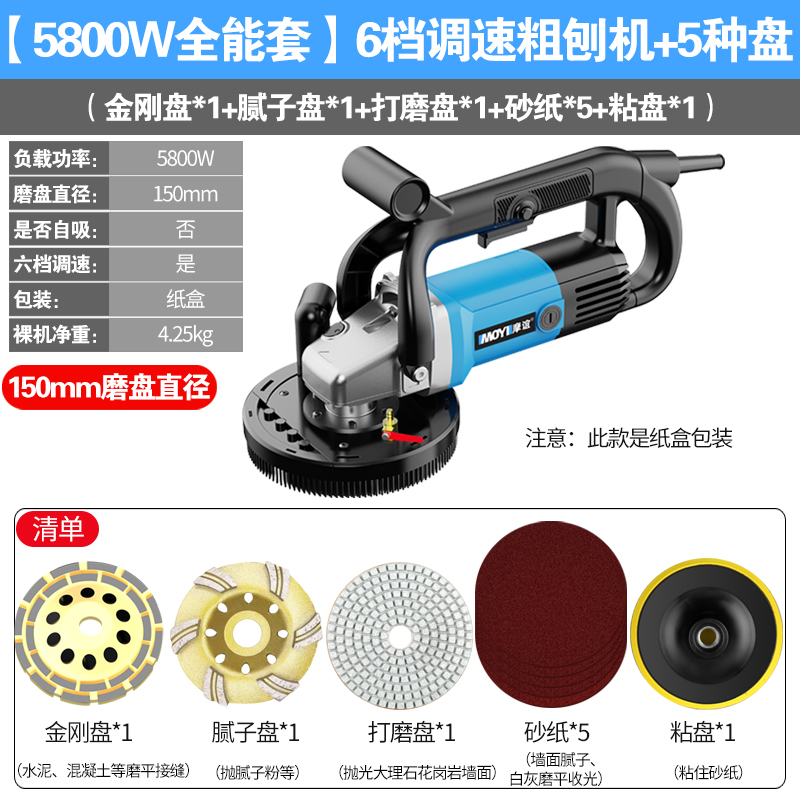 • [5800w 시멘트 슬리브] 6단 속도 조절 거친 대패 + 다이아몬드 디스크