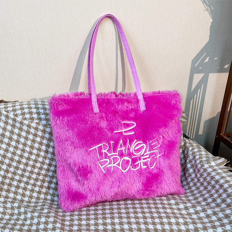 2024 가을 유럽 및 미국 패션 핸드백 핑크 자수 플러시 크로스백 대형 가방스토어 가기