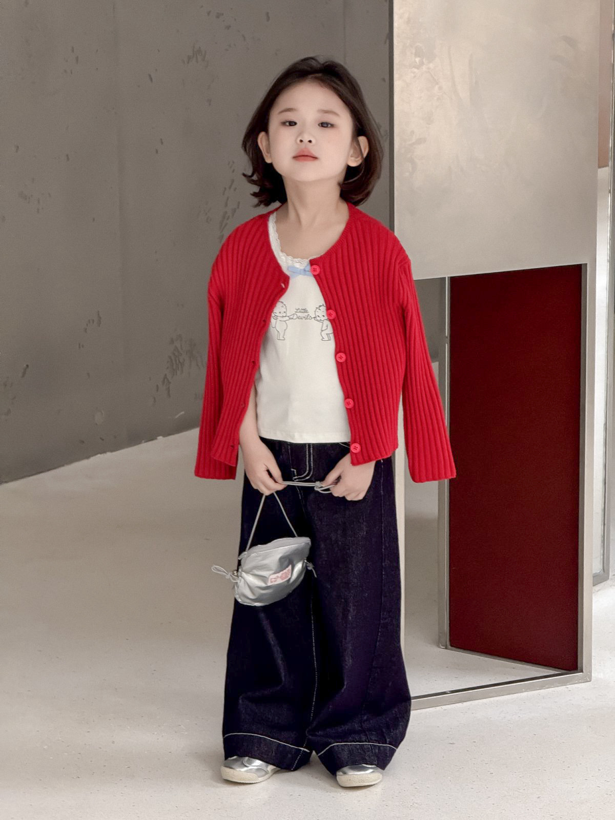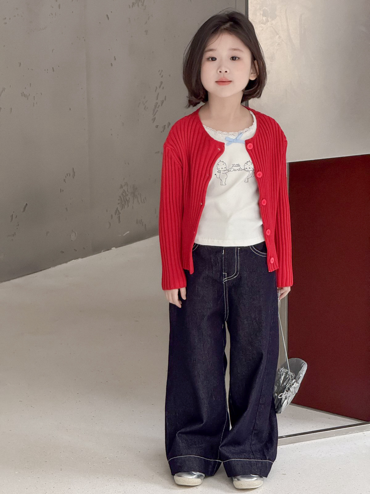 여아용 청바지 2025 봄 신상 하이웨이스트 단색 스트레이트 팬츠 아동용 패셔너블하고 다재다능한 와이드 팬츠 롱 팬츠 트렌디스토어 가기