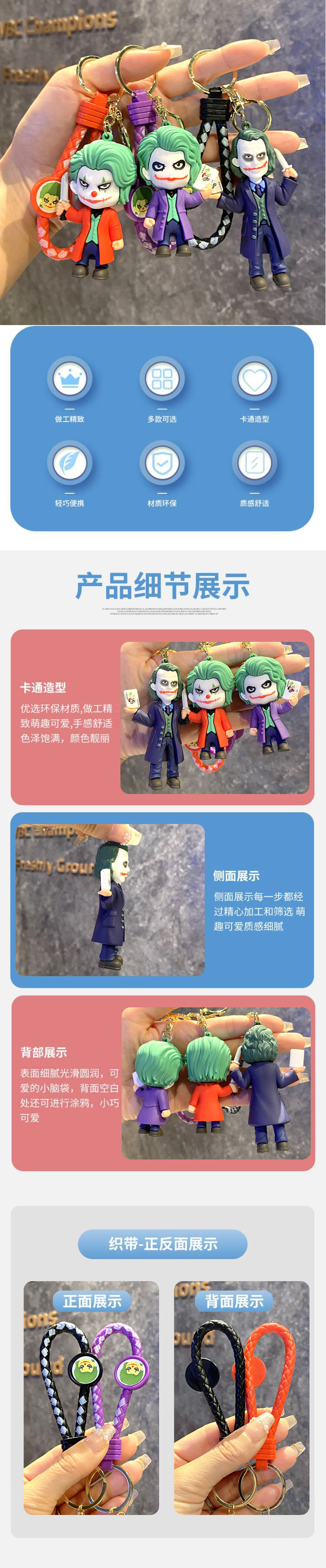 국경 간 조커 배트맨 키 체인 펜던트 PVC 인형 키 체인 귀여운 만화 액세서리 자동차 가방 여성스토어 가기