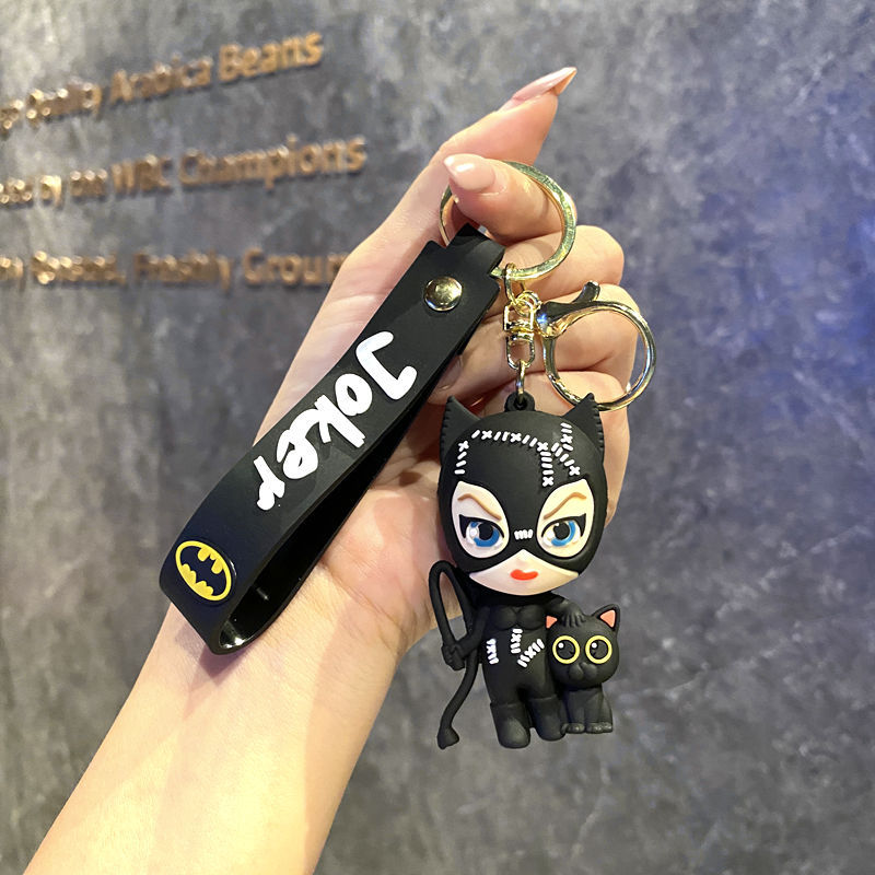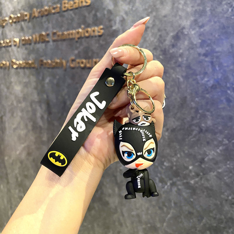 국경 간 조커 배트맨 키 체인 펜던트 PVC 인형 키 체인 귀여운 만화 액세서리 자동차 가방 여성